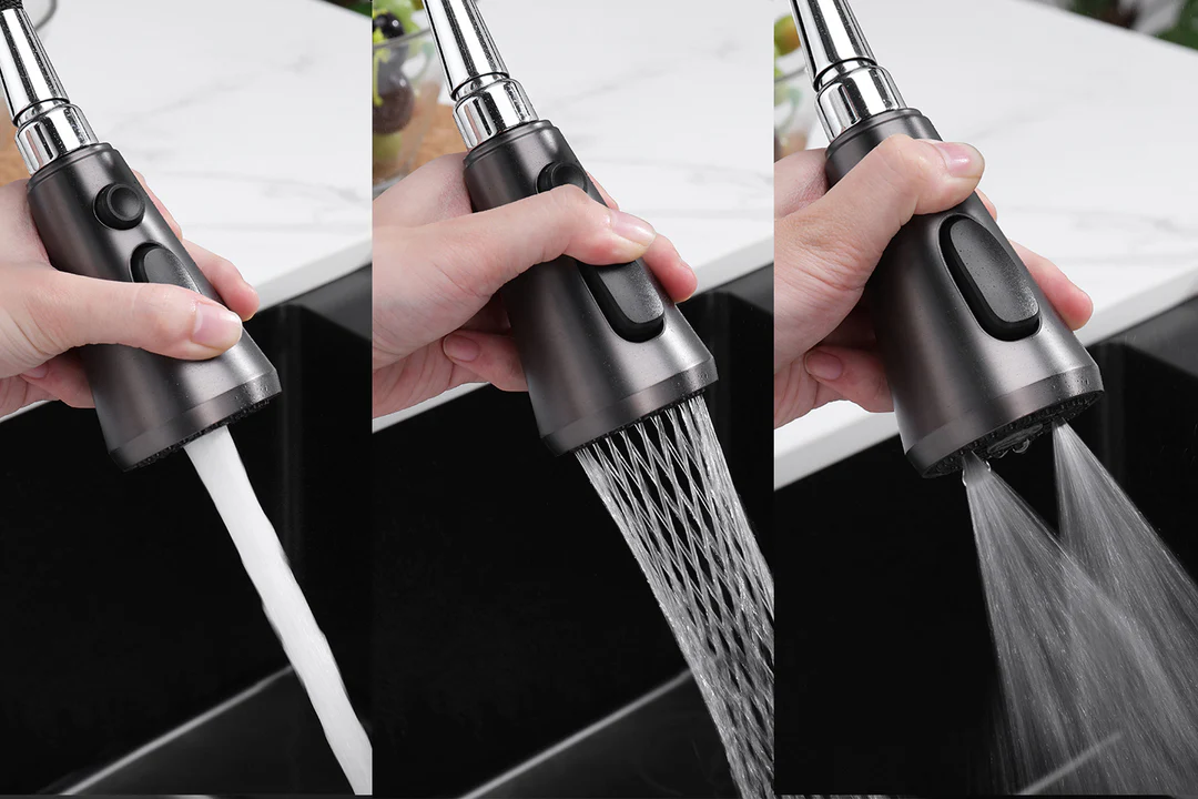 The versatile pull-out faucet boasts an array of water outlet modes, catering to diverse kitchen scenarios. This not only elevates the faucet’s functionality but also enhances cleaning efficiency.