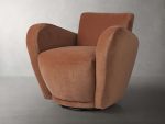 Featuring sweeping curves with a thick seat, our Amelia Swivel Chair cradles you in its soft, velvety upholstery. Artisan-crafted Amelia’s sculptural frame and 360-degree swivel rotation adds whimsical comfort to any space.