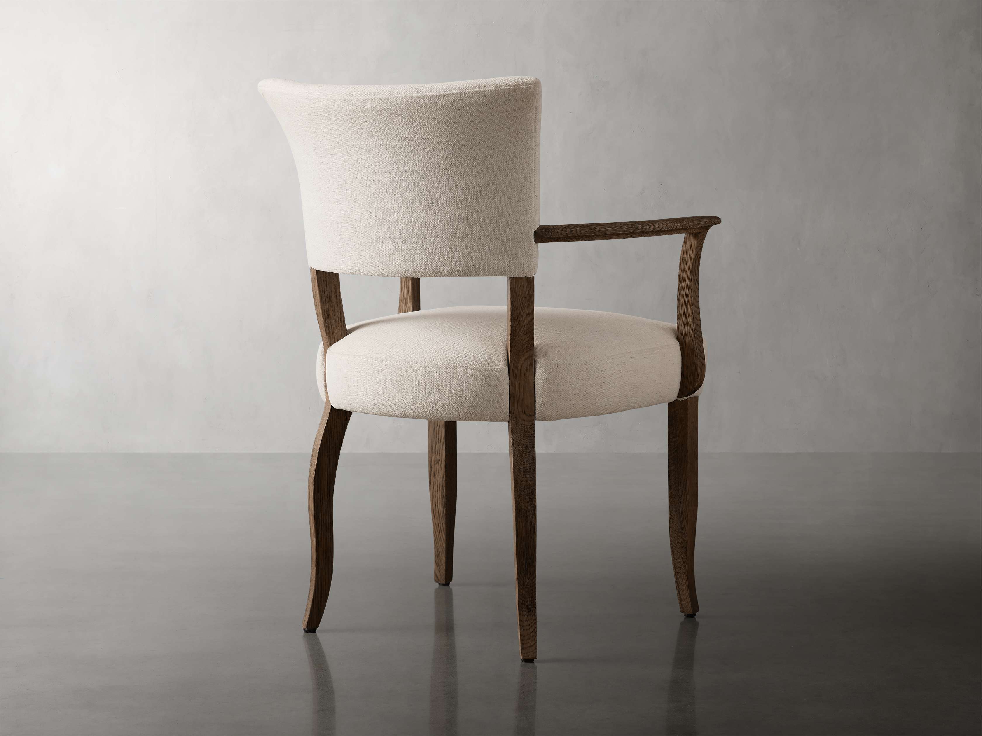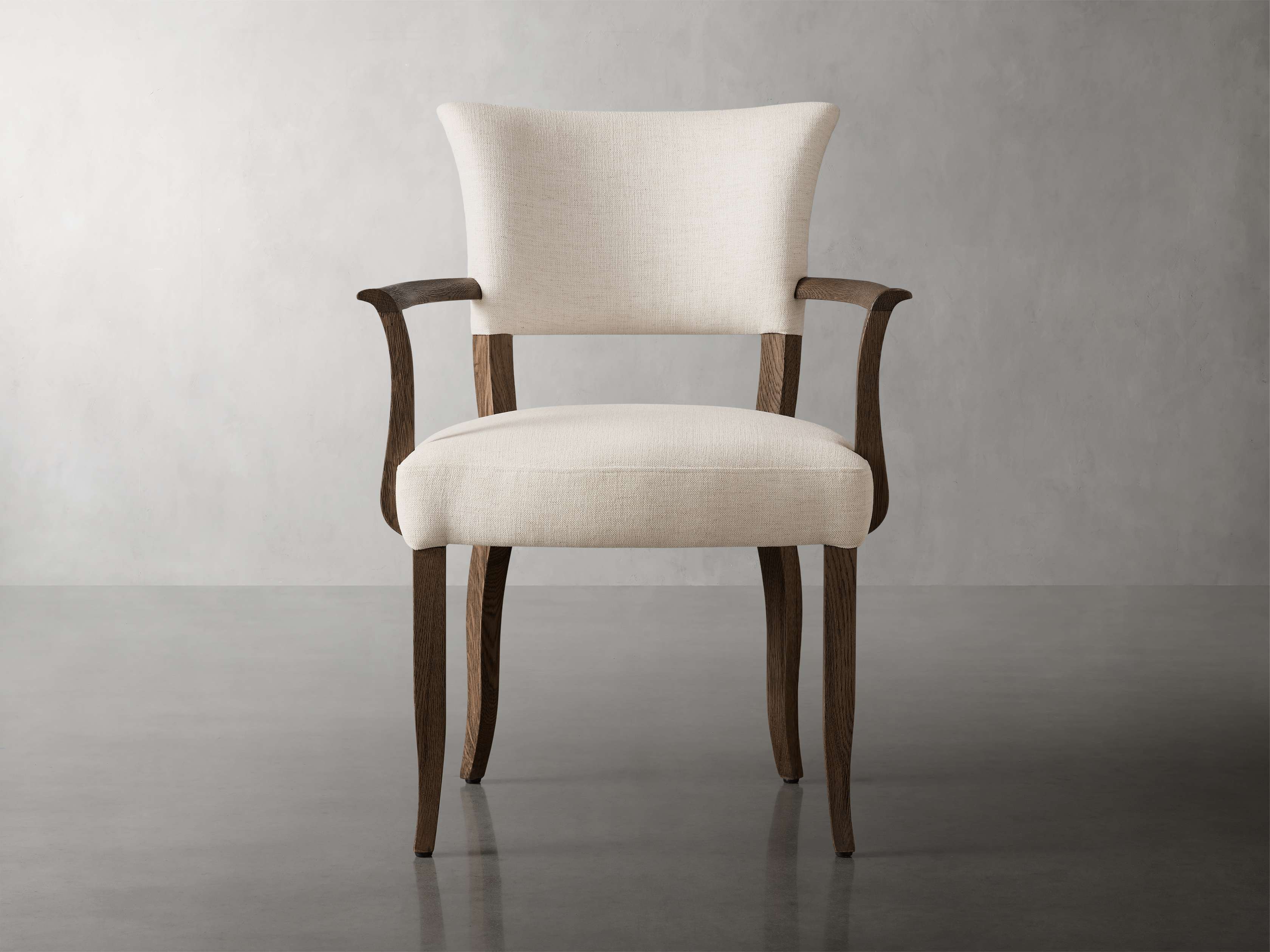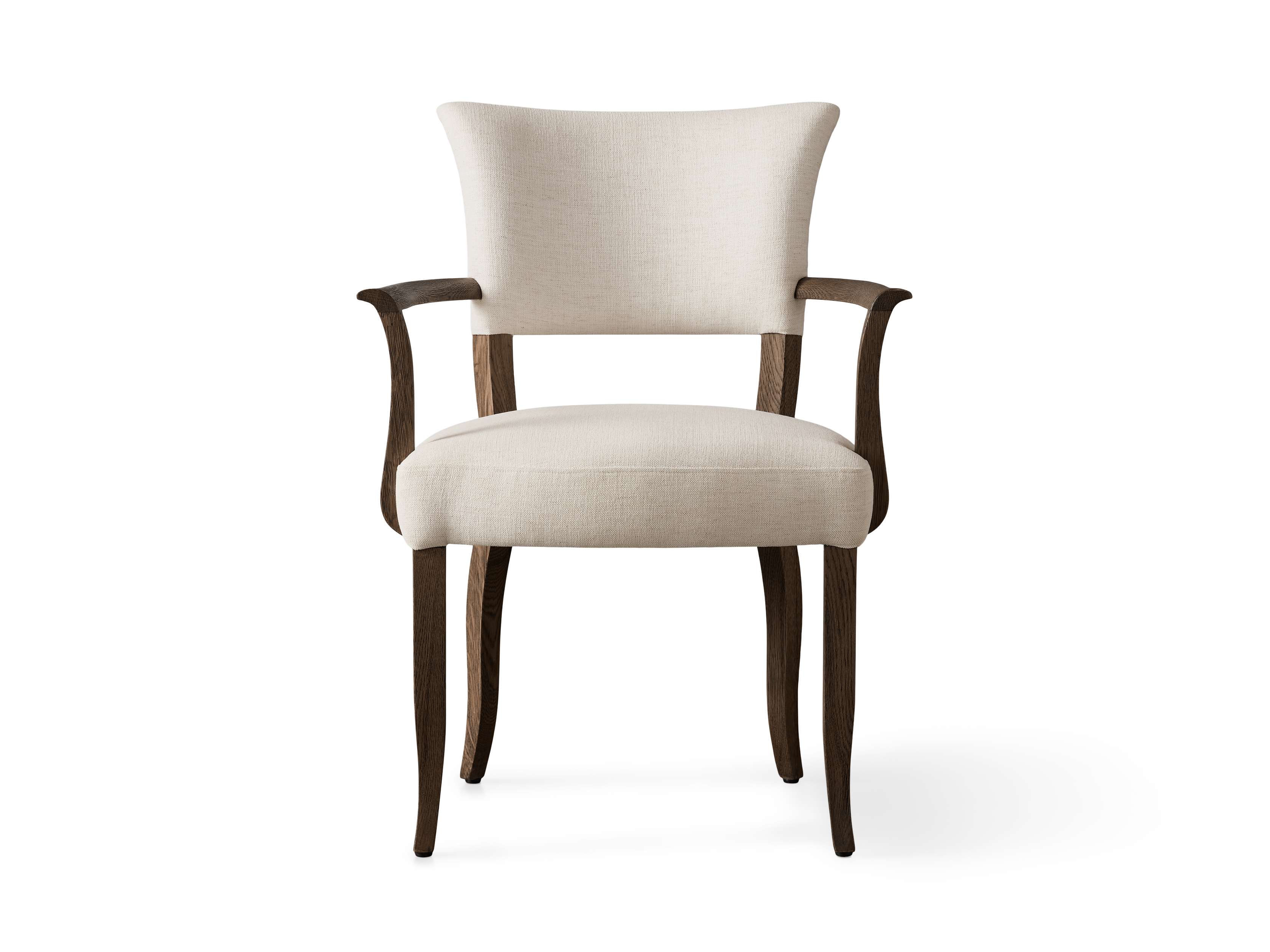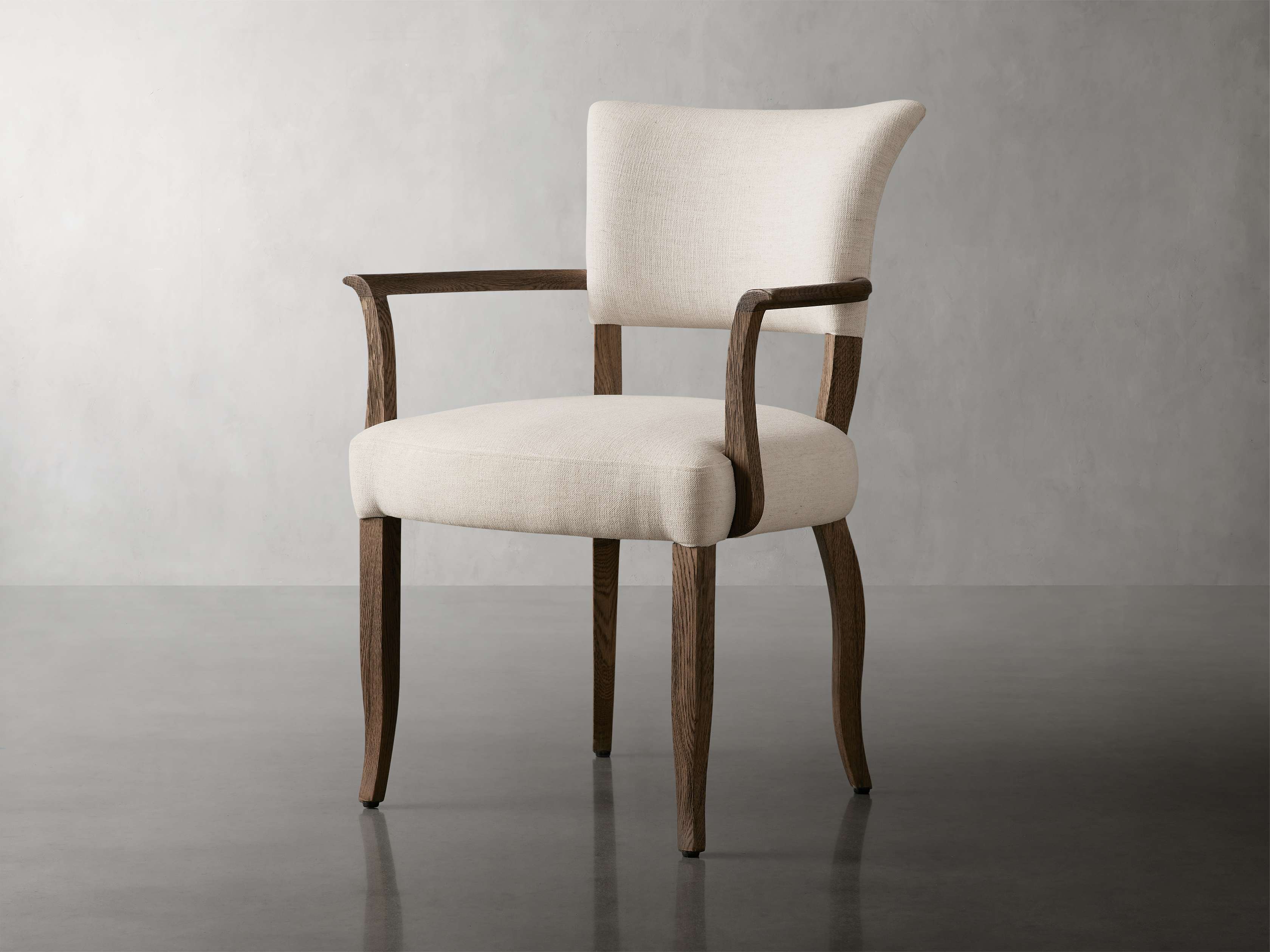 Inspired by a French antique chair, the silhouette of our Birgette Dining Chair features feminine curves and tapered legs. The juxtaposition of solid wood combined with upholstered seating elevates your dining space with traditional elegance.