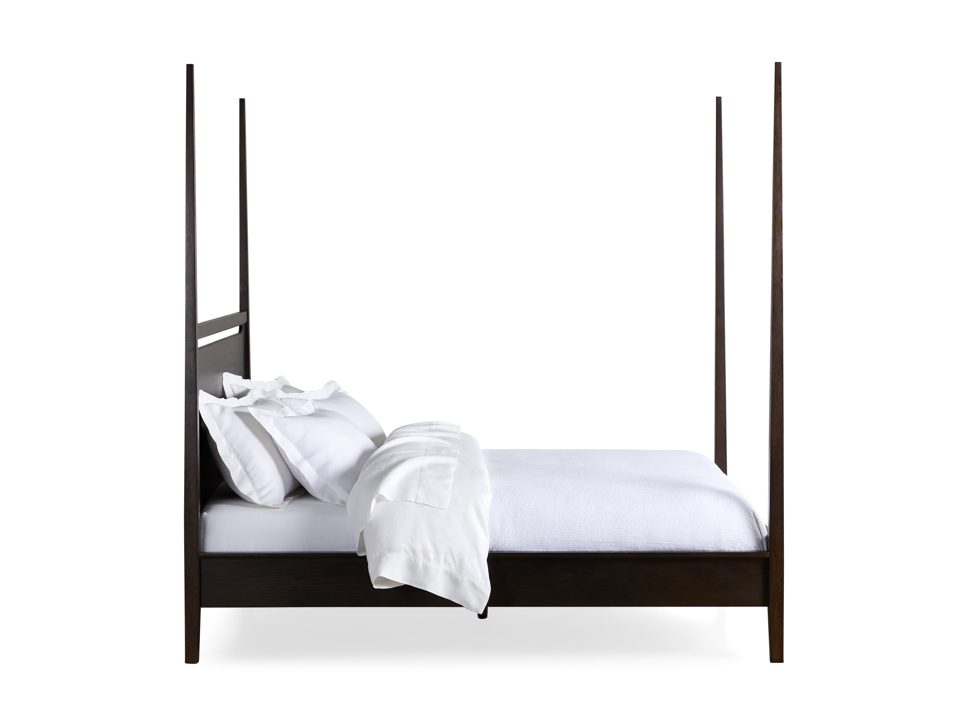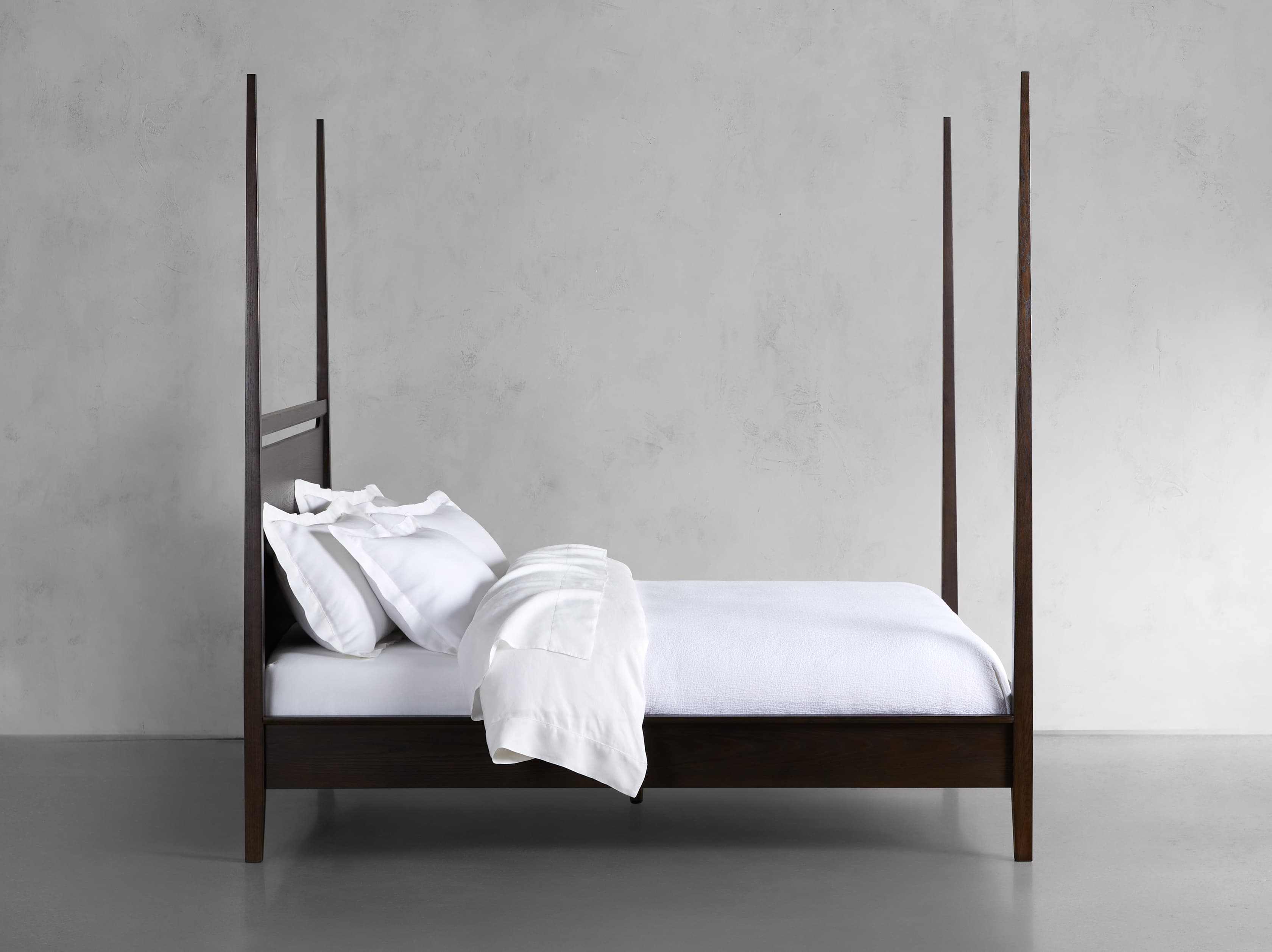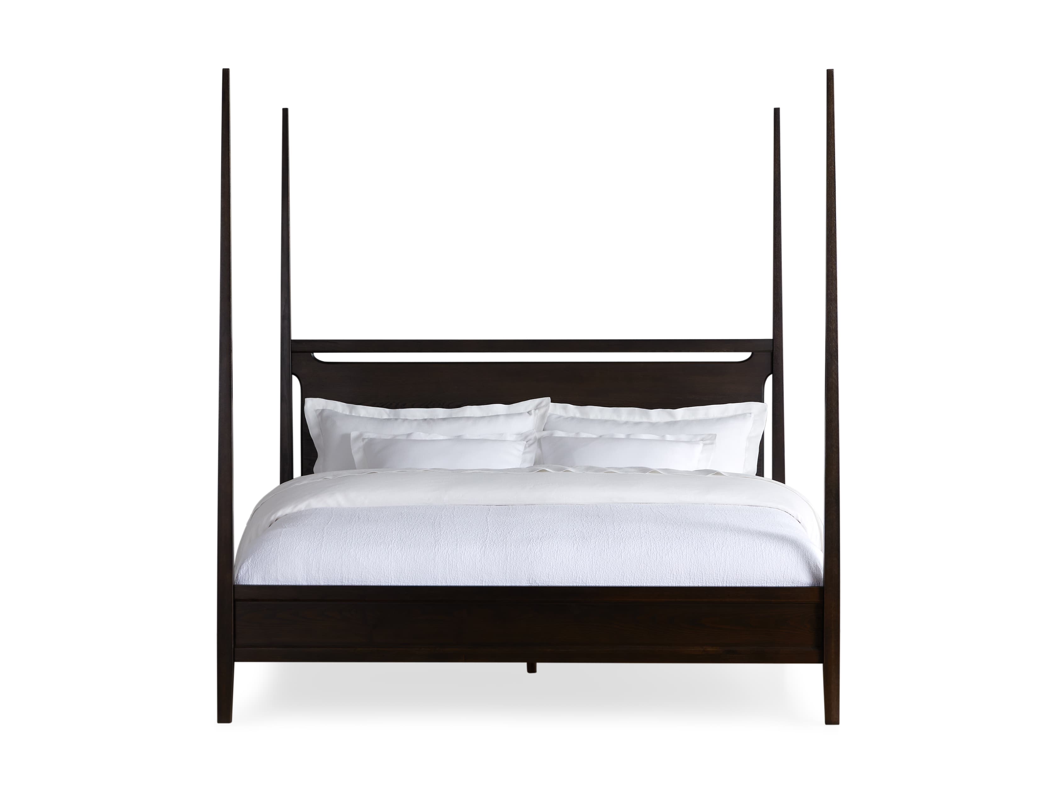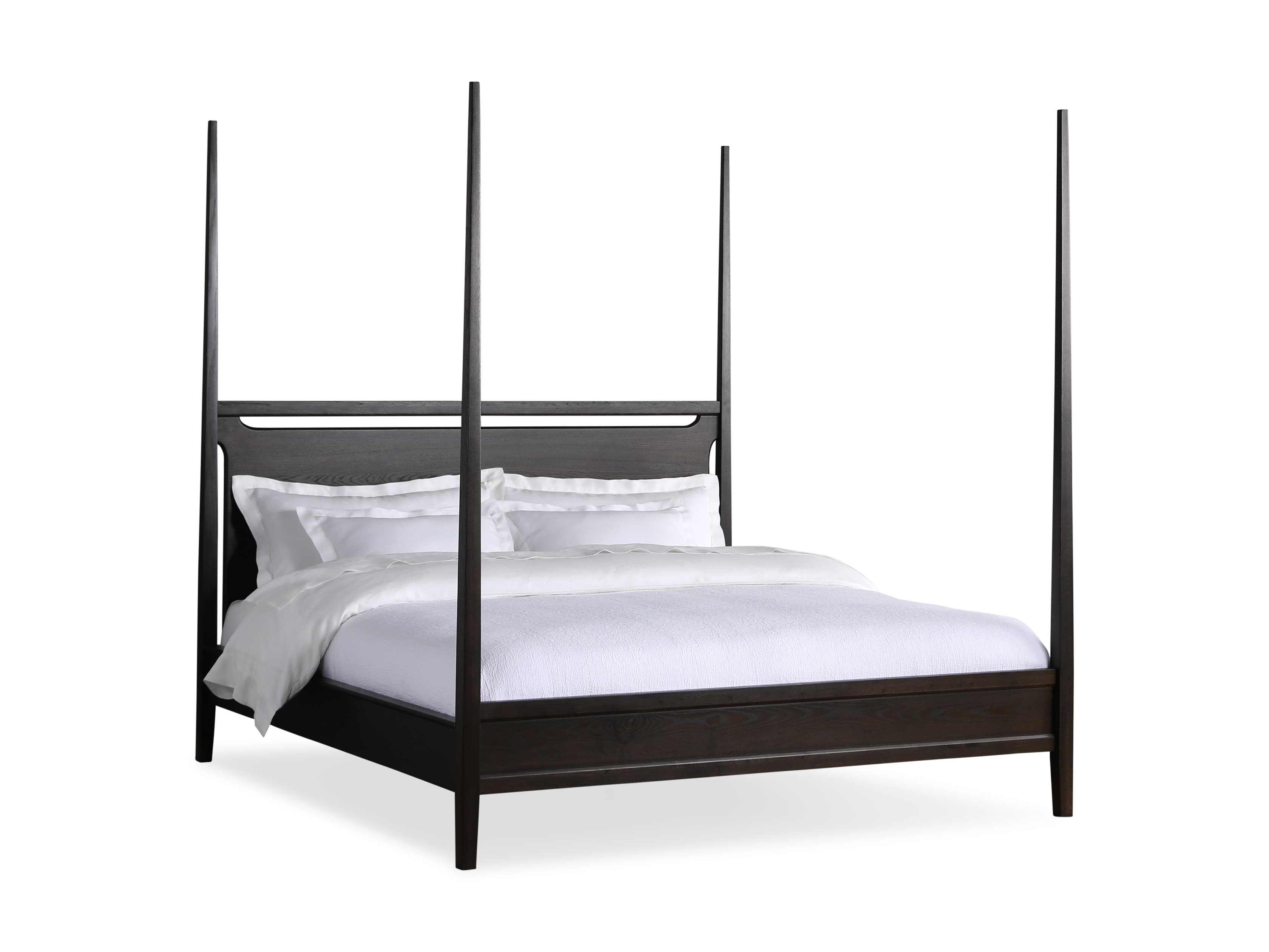 A modern classic, our Brock Bedroom Collection’s understated aesthetic features sleek silhouettes defined by clean lines and deep, hand-stained finishes. Elegant tapered posts and bold headboard cutouts elevate our Brock Poster Bed’s midcentury style.