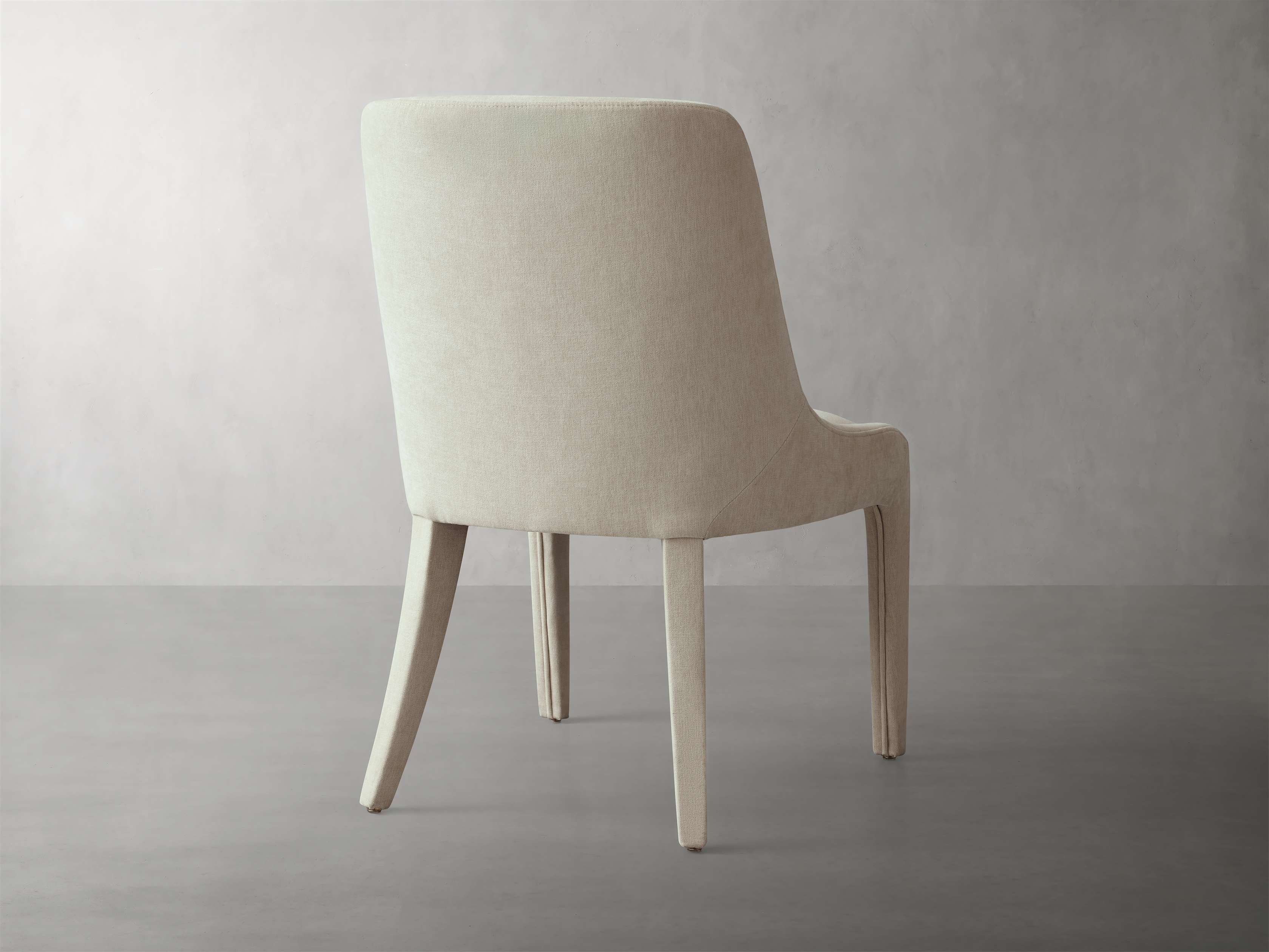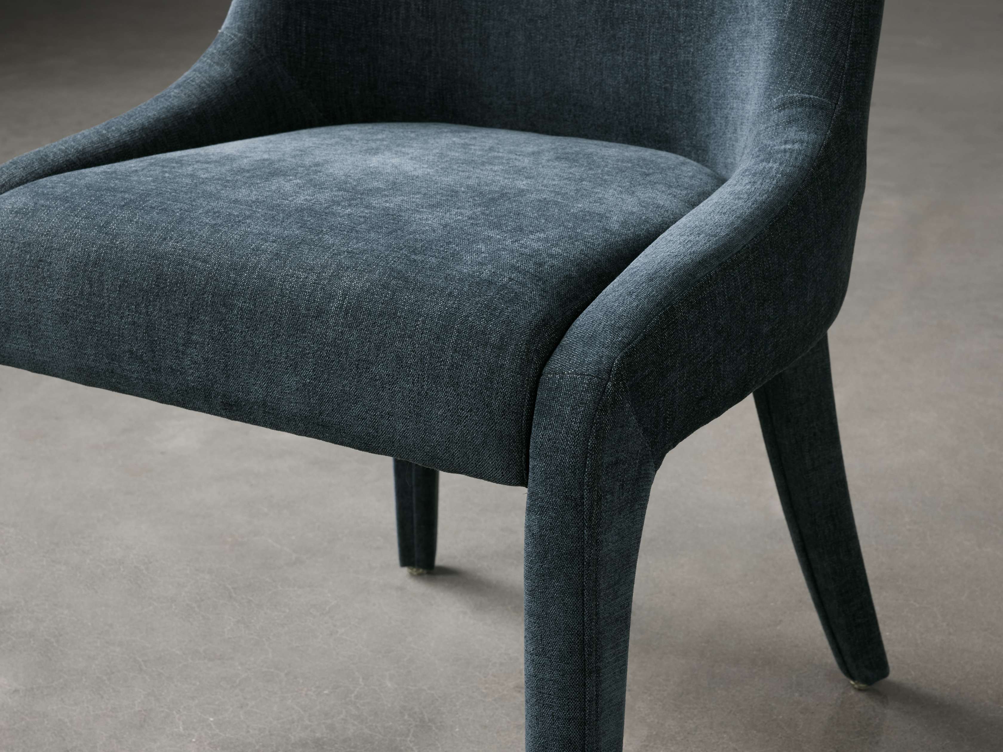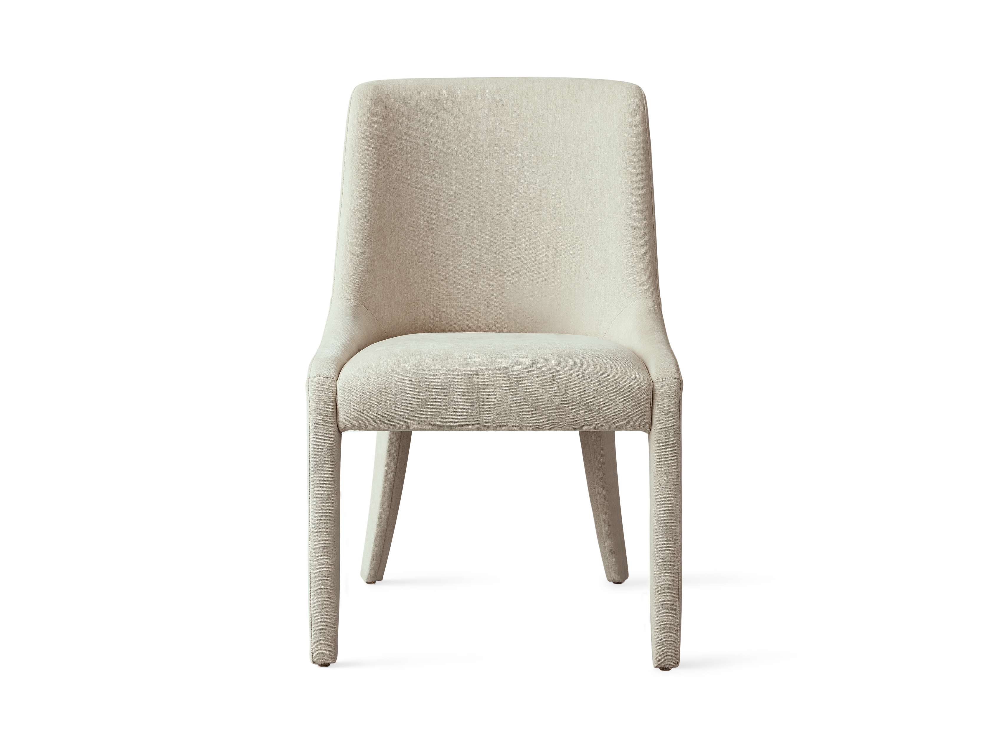 A pared-down, fluid profile gives our Burns Dining Collection its sleek, modern appeal. Crafted with gentle curves and firm cushioning for hours of comfortable lingering around the table. Fully upholstered in plush fabric down to its legs, Burns lends a tailored look to your dining table.