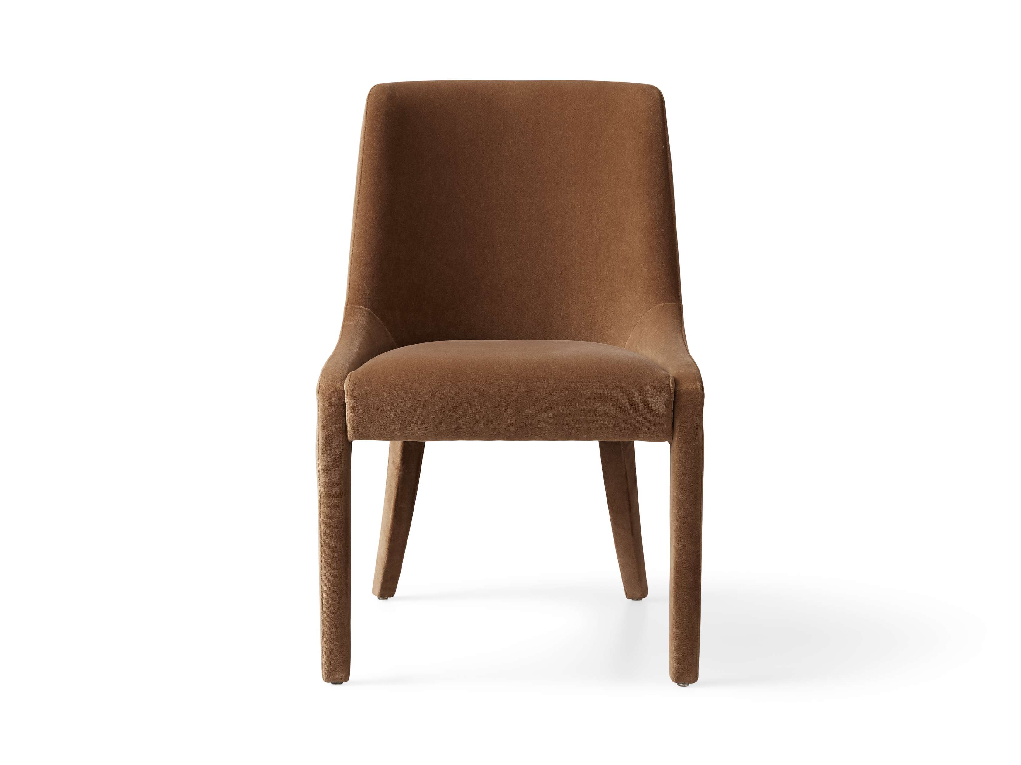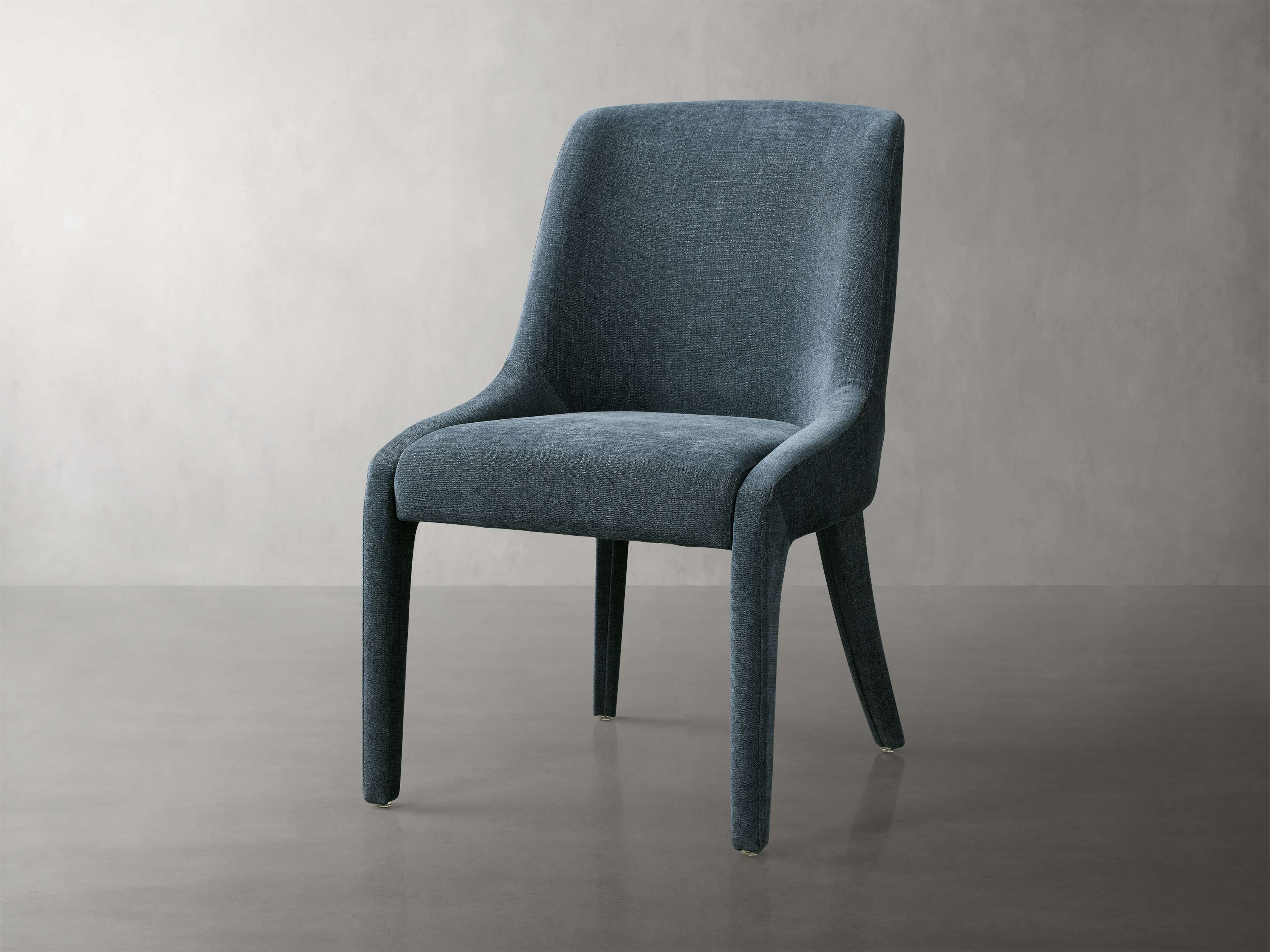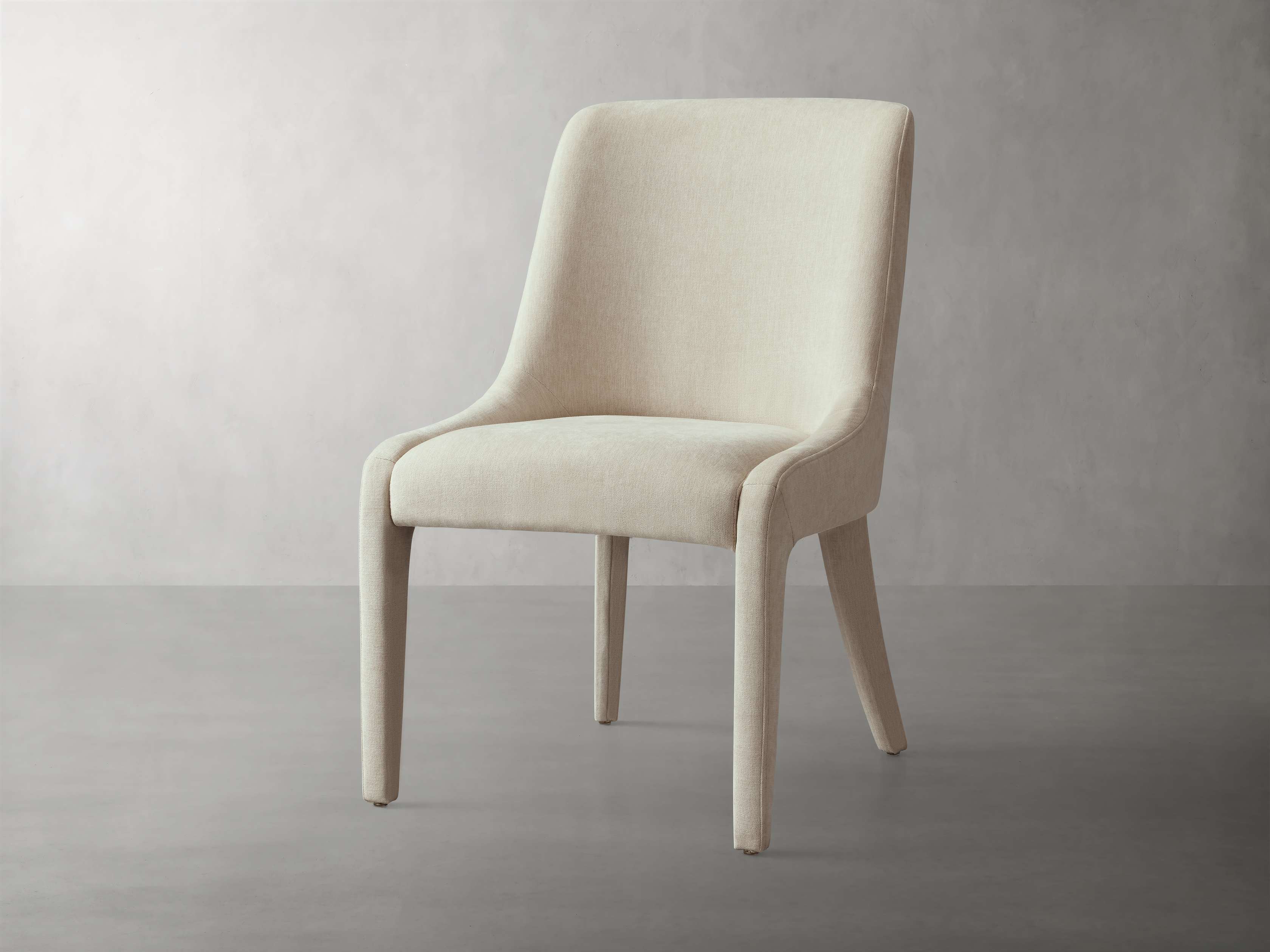 A pared-down, fluid profile gives our Burns Dining Collection its sleek, modern appeal. Crafted with gentle curves and firm cushioning for hours of comfortable lingering around the table. Fully upholstered in plush fabric down to its legs, Burns lends a tailored look to your dining table.