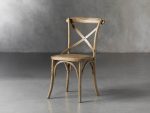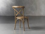 • Side chairs finished in Natural Weathered, Dark Brown, and Stone Vintage feature matching wood stretchers and natural, hand-stained finishes.