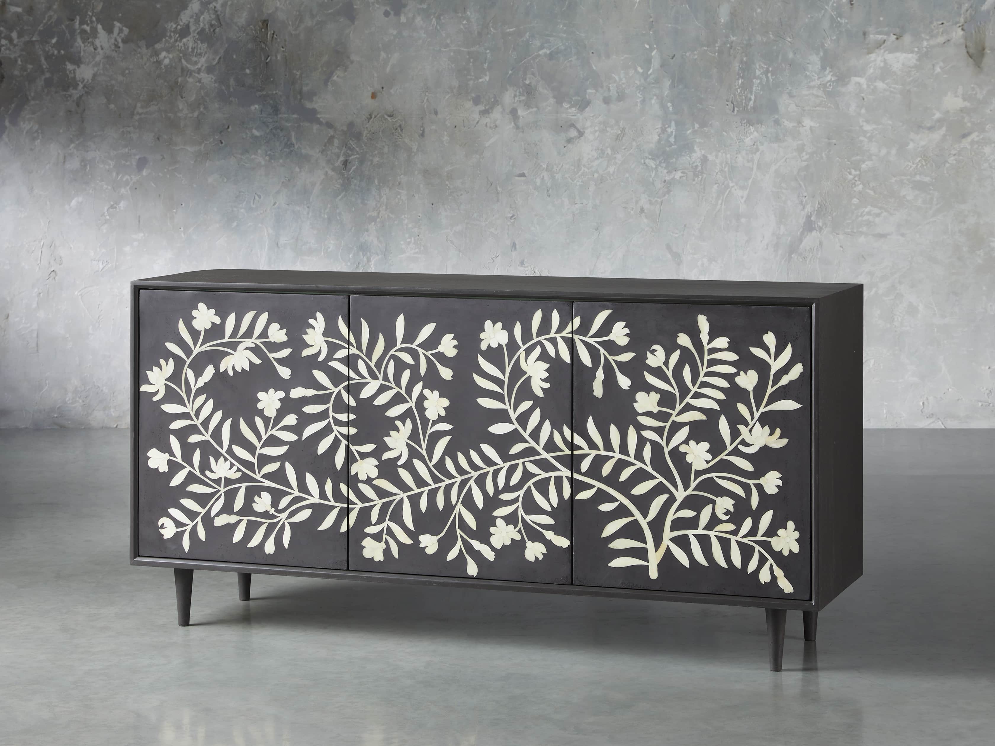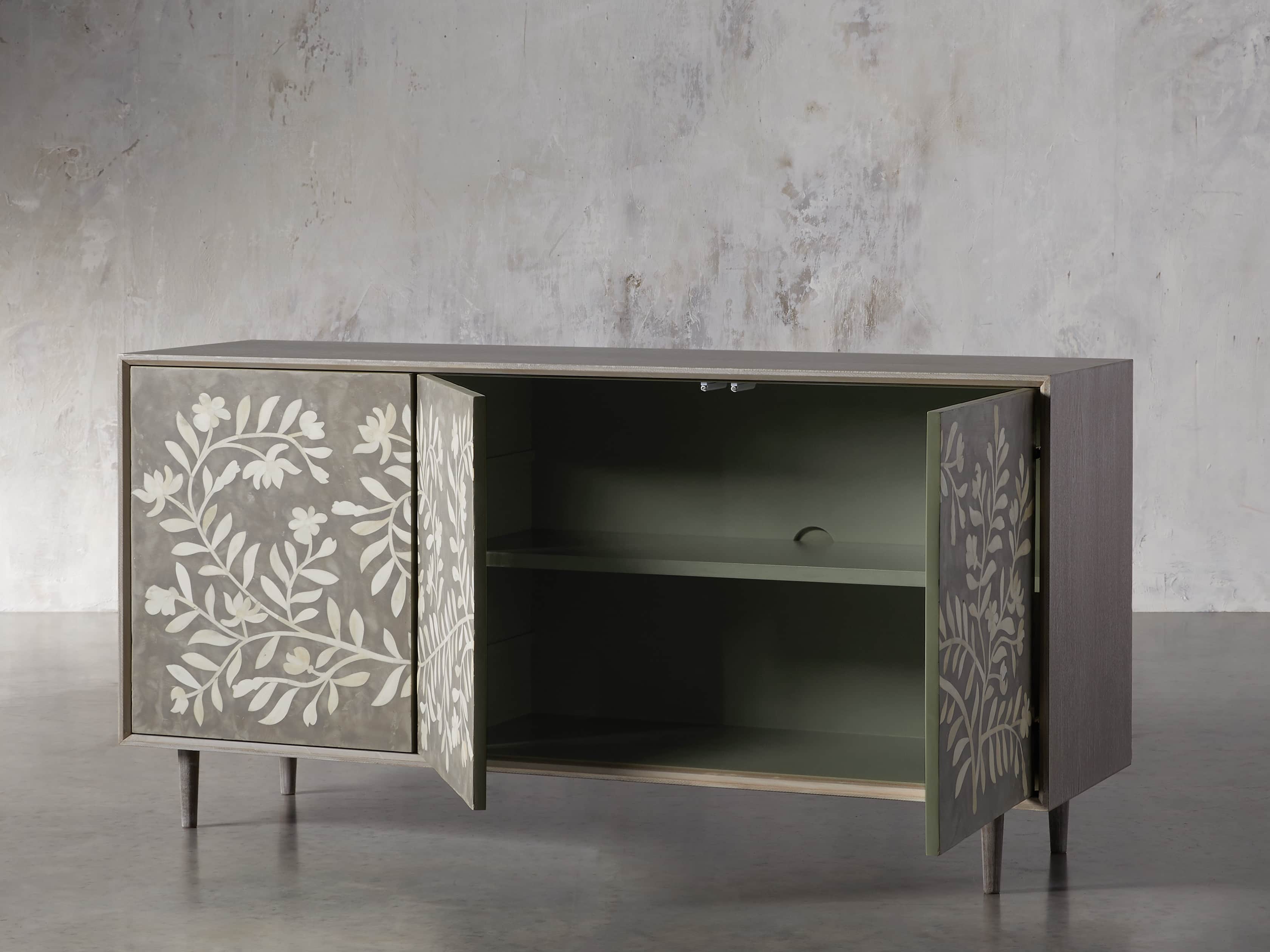 - Due their hand-crafted nature, each cabinet door features a unique combination of inlay shapes. While their overall design remains consistent, no two sideboards will appear exactly the same.