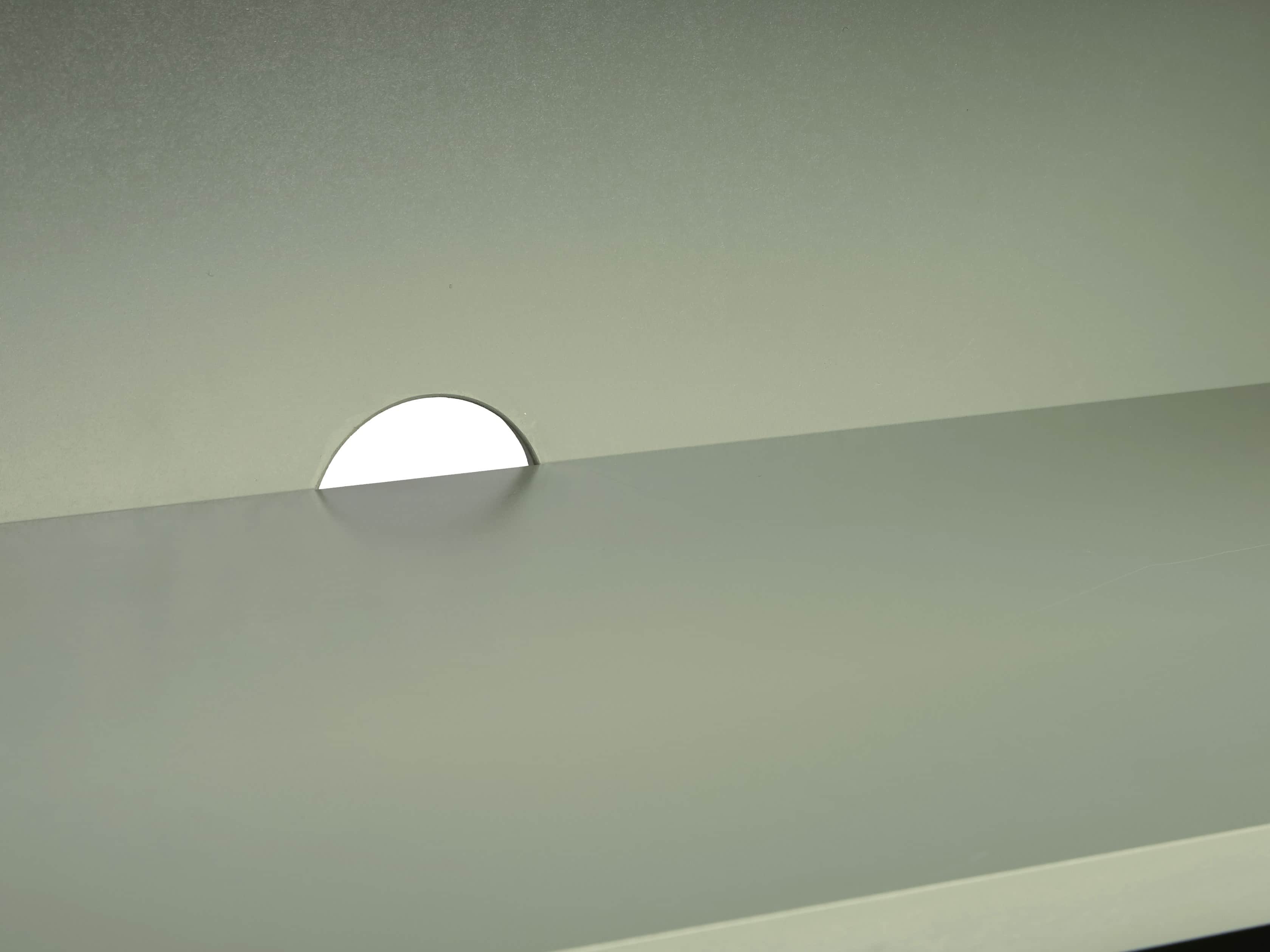 - Cord management holes accommodate electronics and bar appliances.