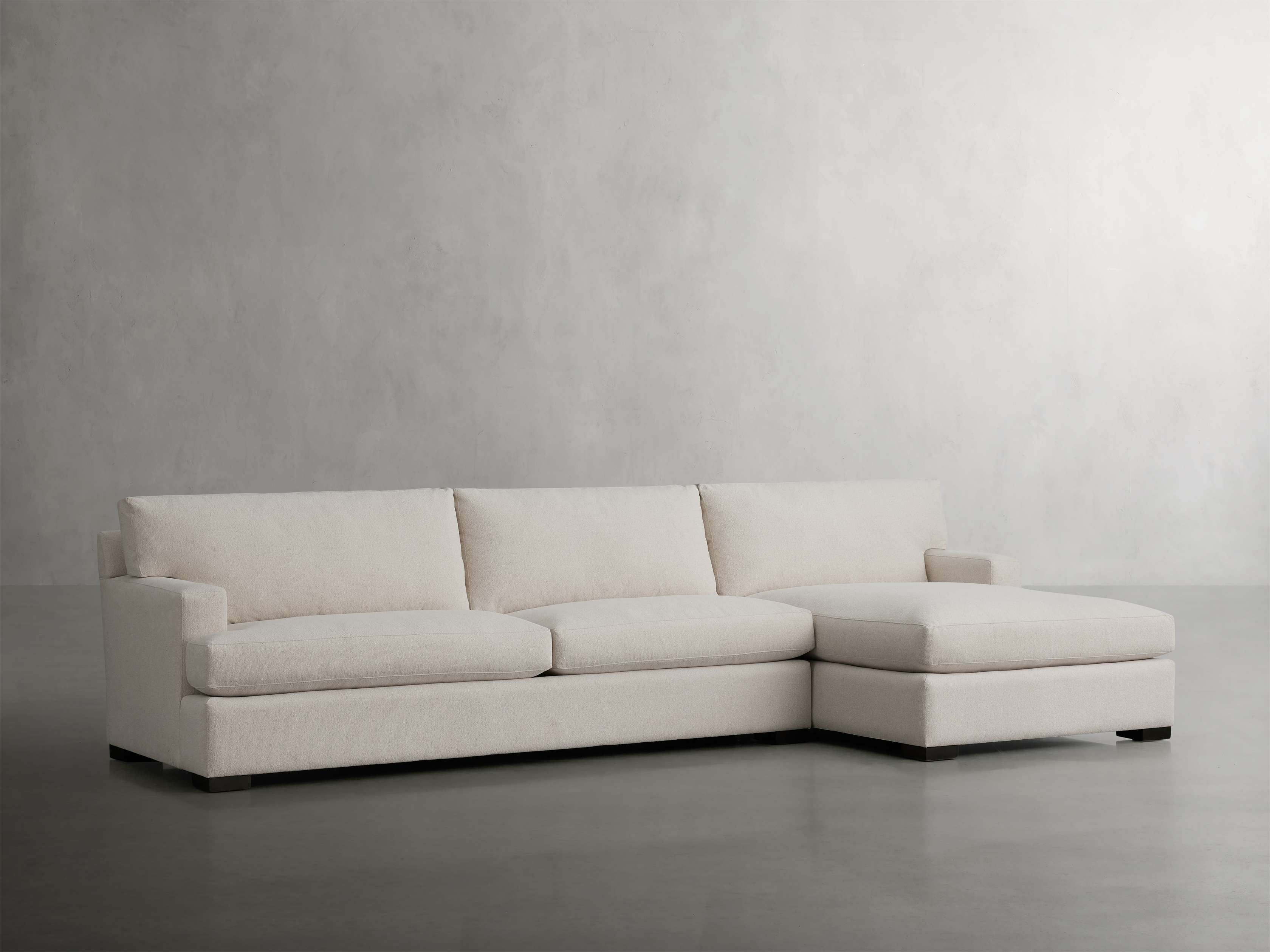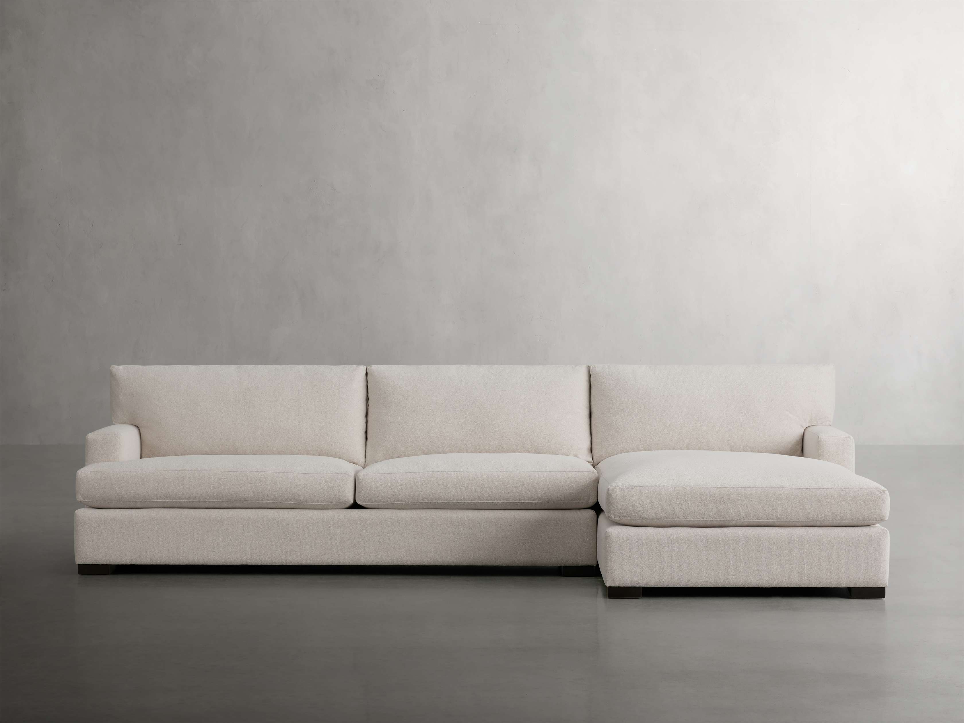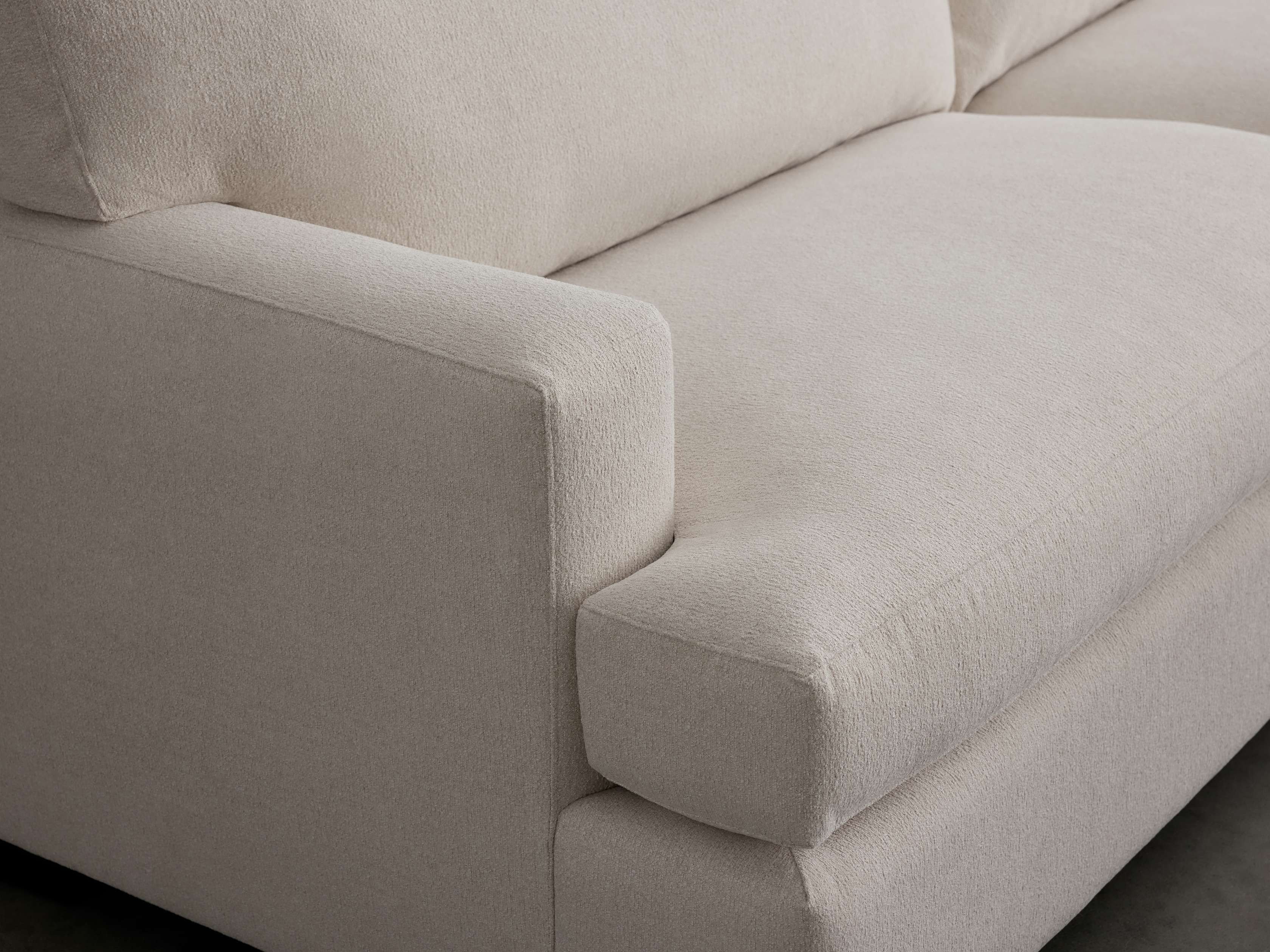 Warm and inviting, our Dune Collection creates a comfortable space for everyday living. A clean-lined silhouette with wide arms is crafted by upholstery artisans, featuring generously padded cushions covered in soft-yet-durable Performance Fabric.