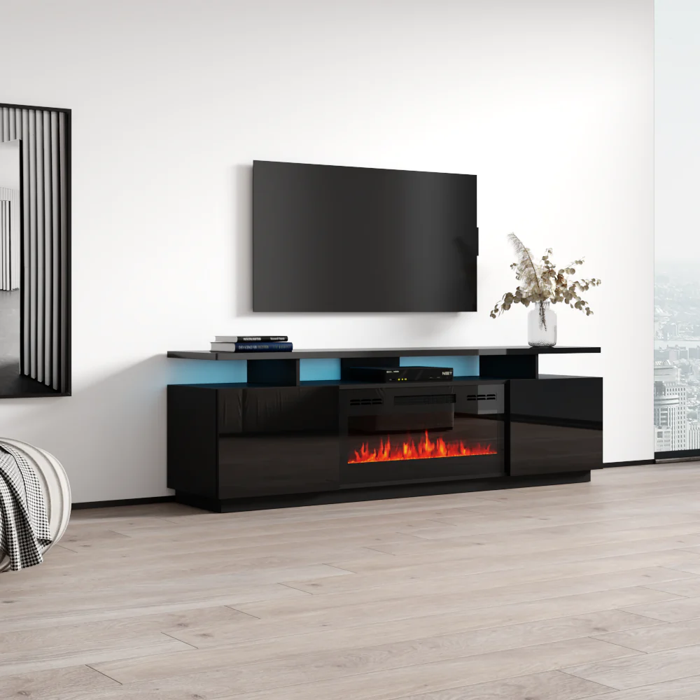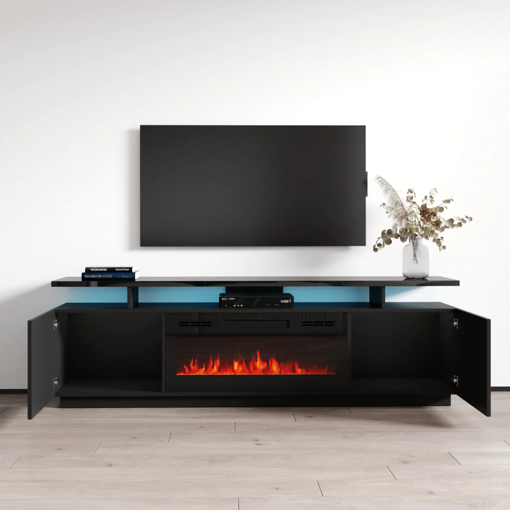 Eva-KBL Elektrokamin 71″ TV-Ständer – Moderner TV-Ständer / TV-Konsole / TV-Schrank / zentrales Unterhaltungszentrum