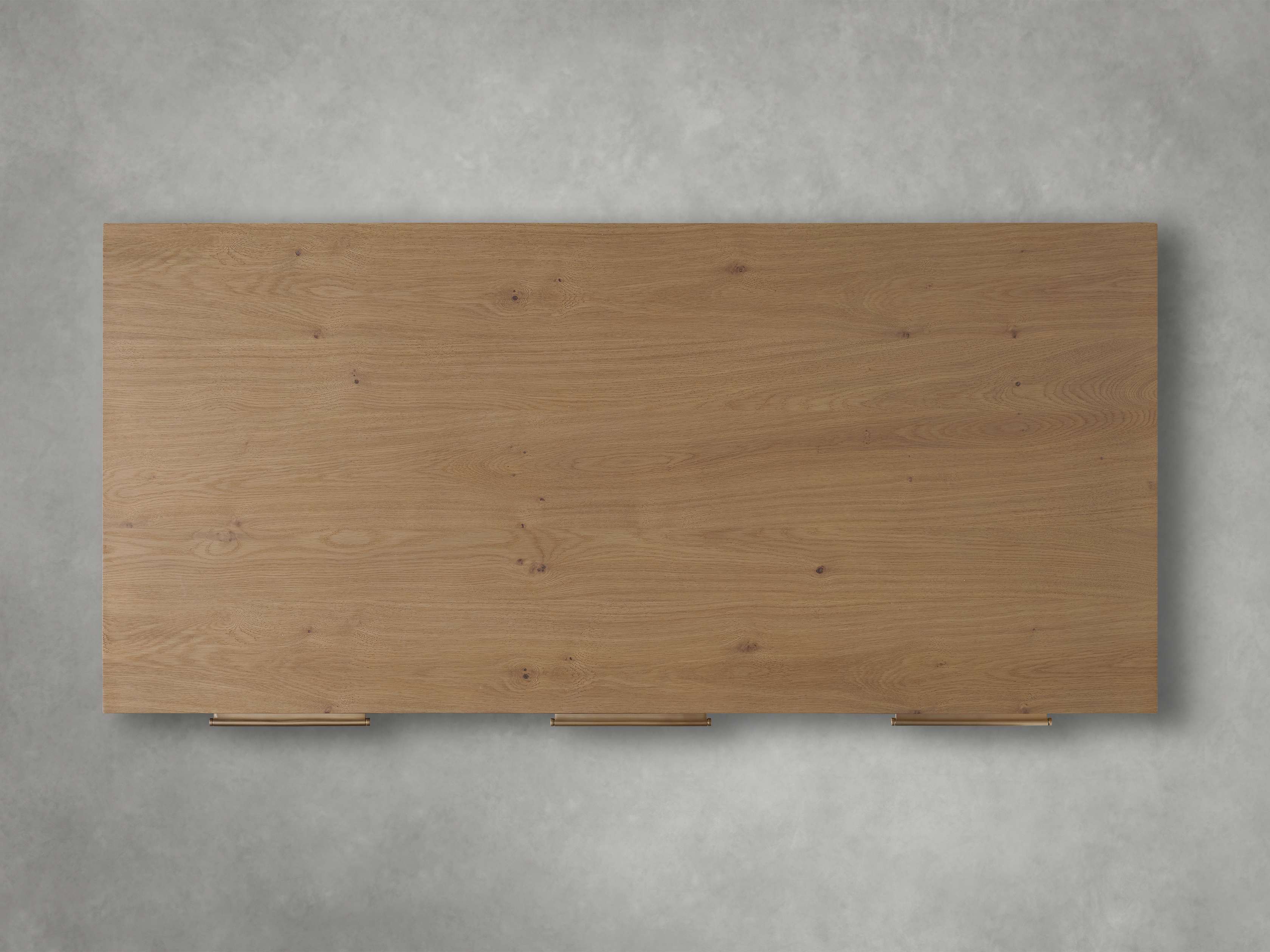 • Crafted from solid oak wood, oak veneers, and engineered hardwood accented with metal drawer pulls.