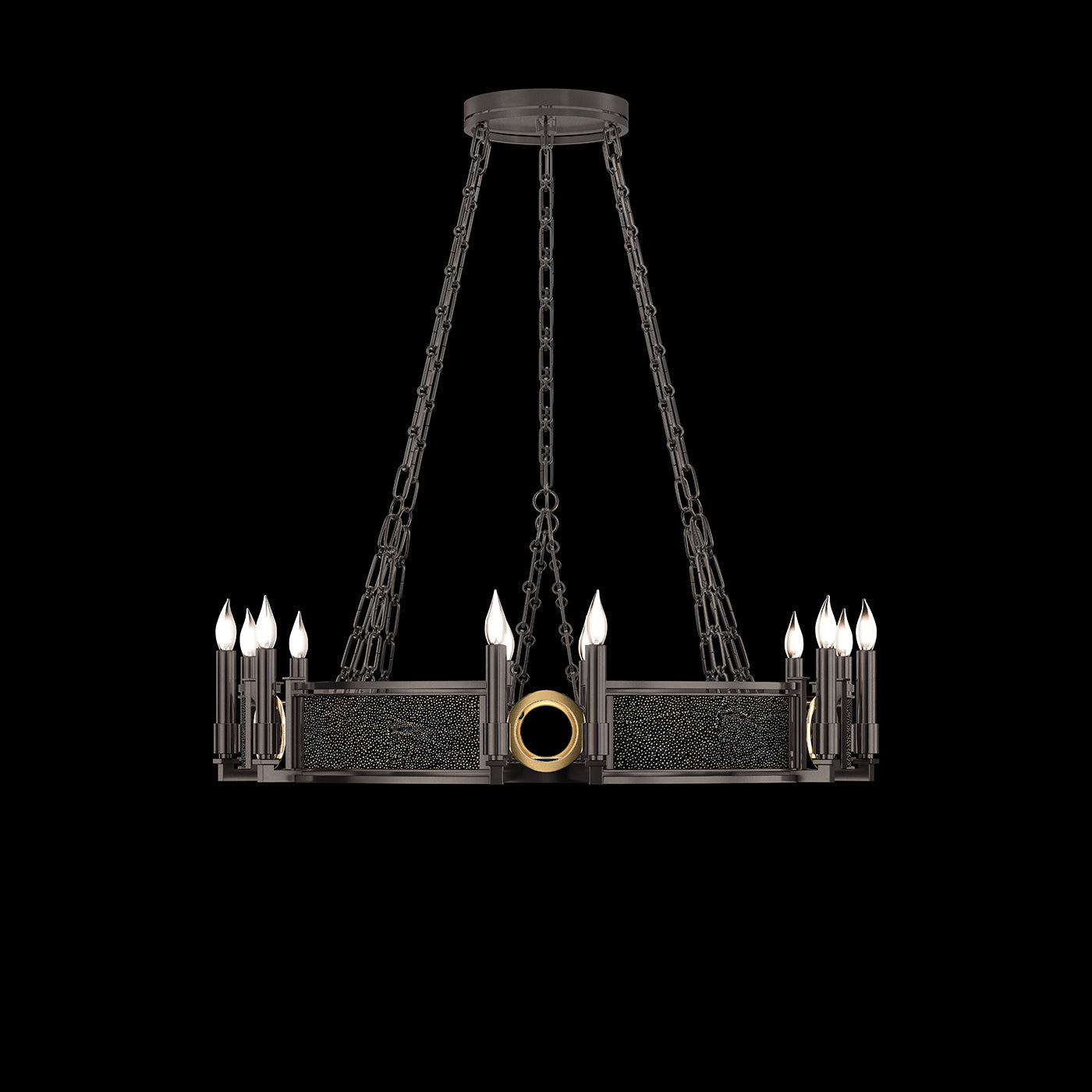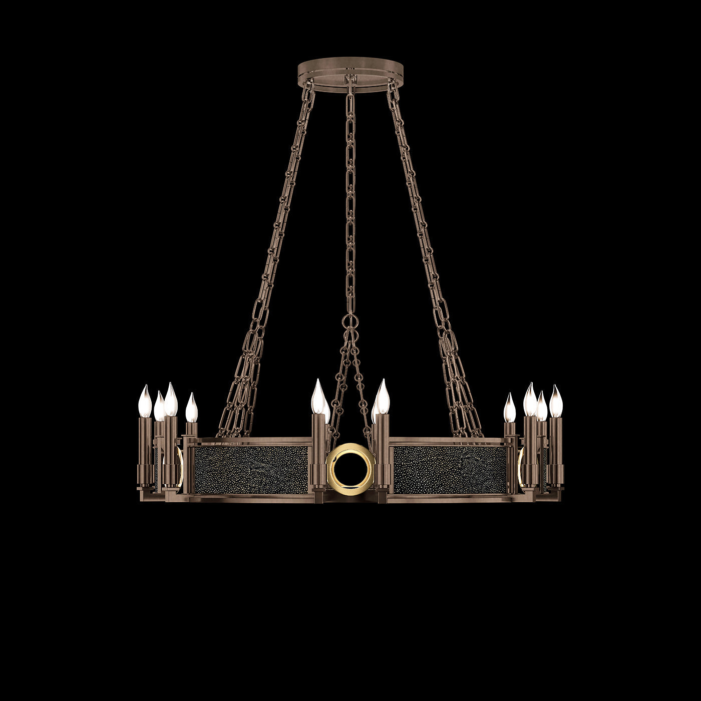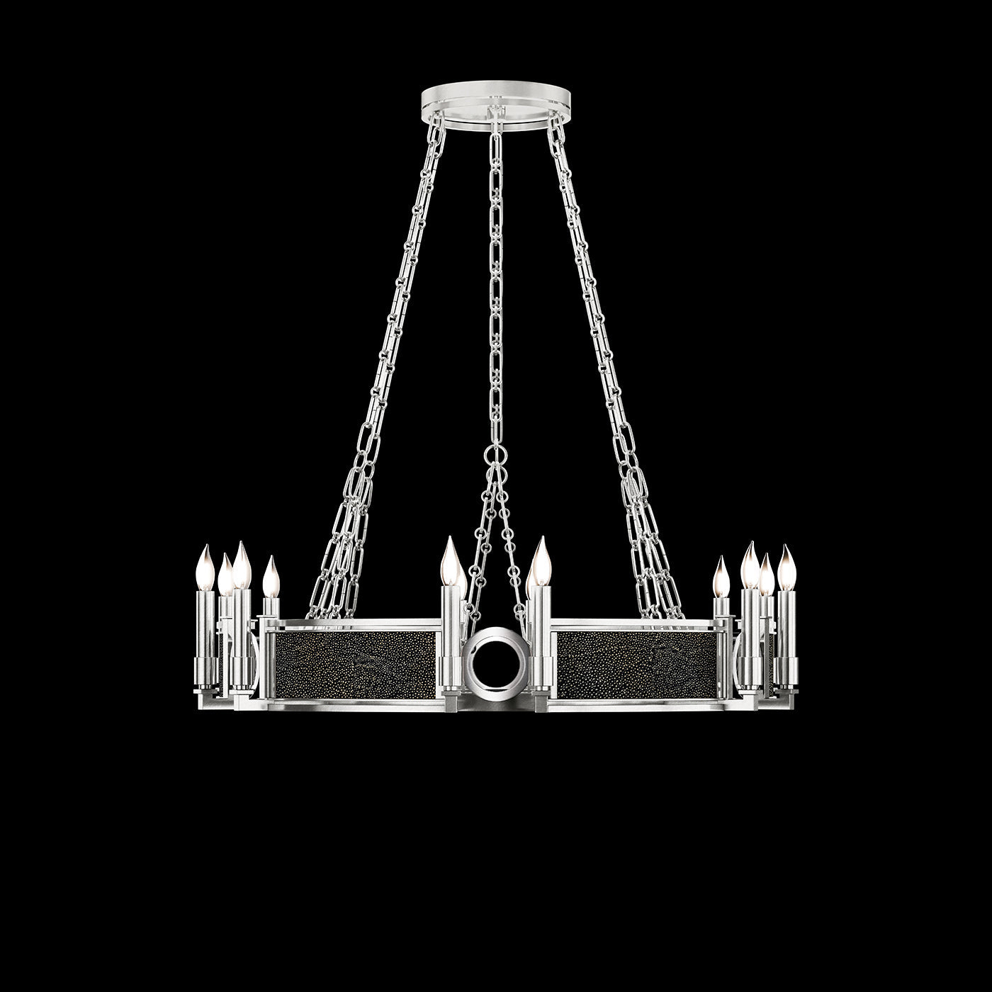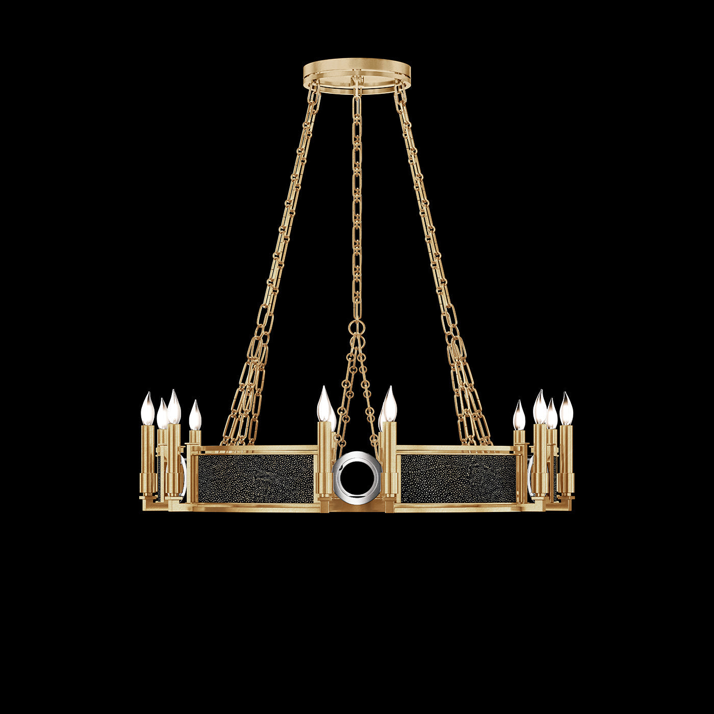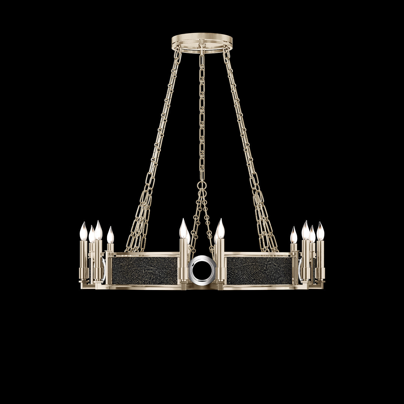 • Available in Champagne (gold), Midnight Steel (black) and our five Standard Finishes with choice of satin brass or nickel accents and three upcycled shagreen options: Pebble, Coco or Black Knight.