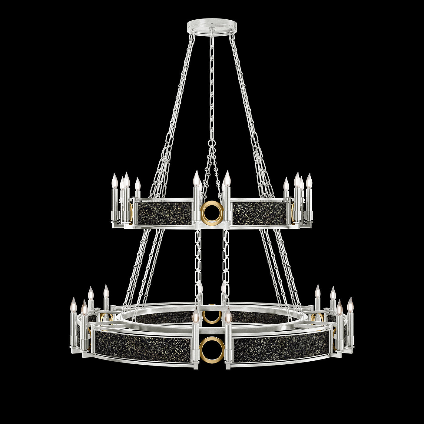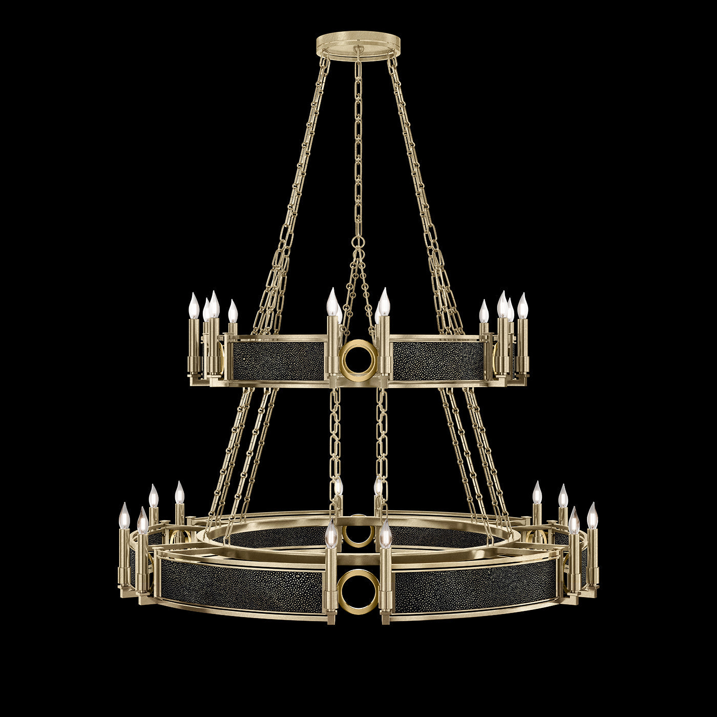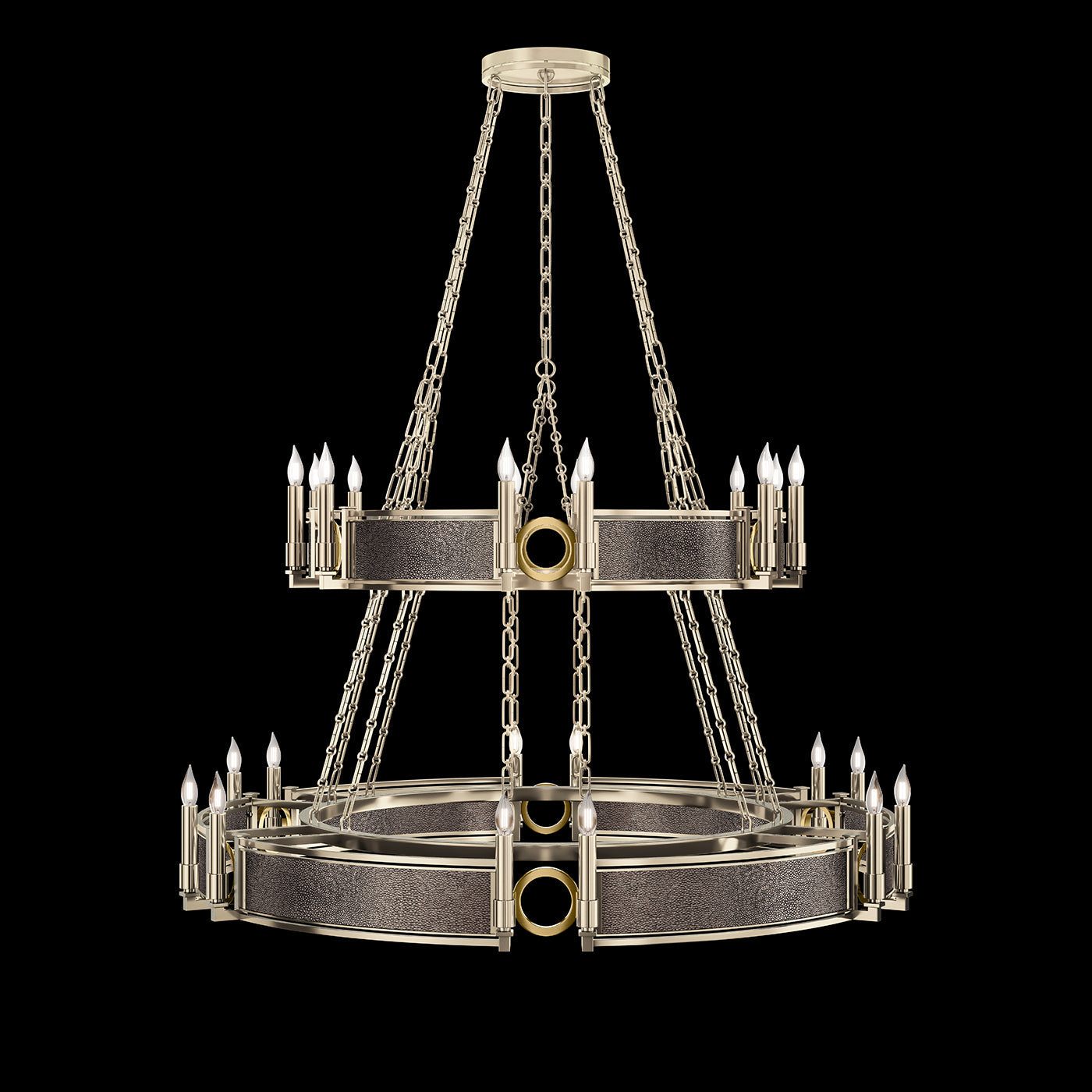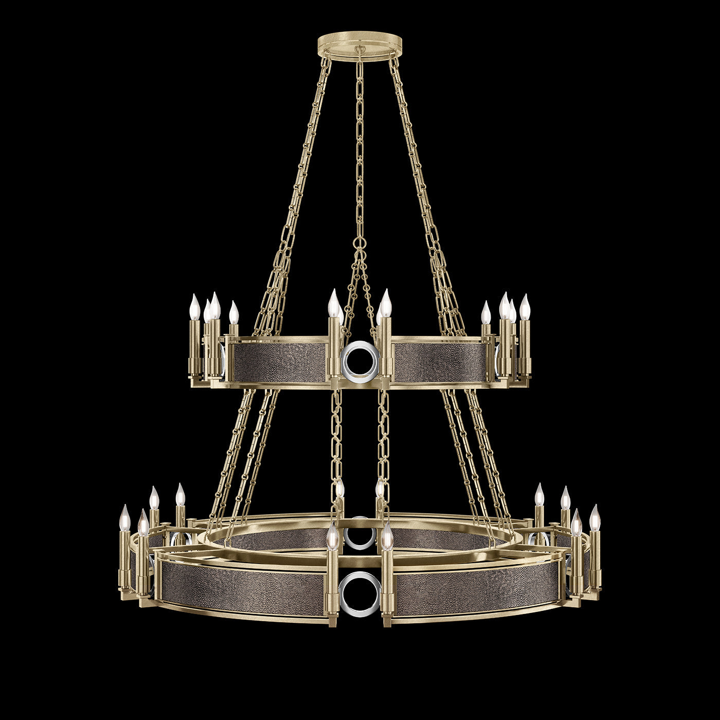 - Available in Champagne (gold), Midnight Steel (black) and our five Standard Finishes with choice of satin brass or nickel accents and three upcycled shagreen options: Pebble, Coco or Black Knight.