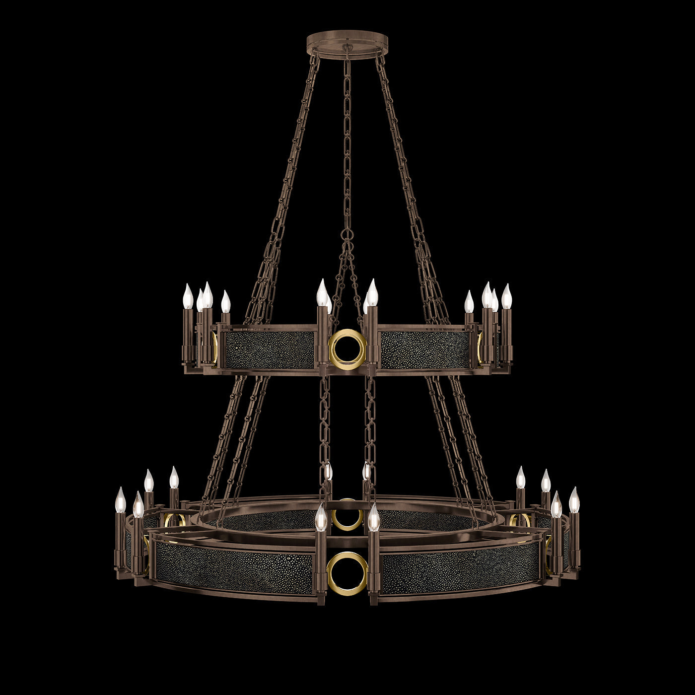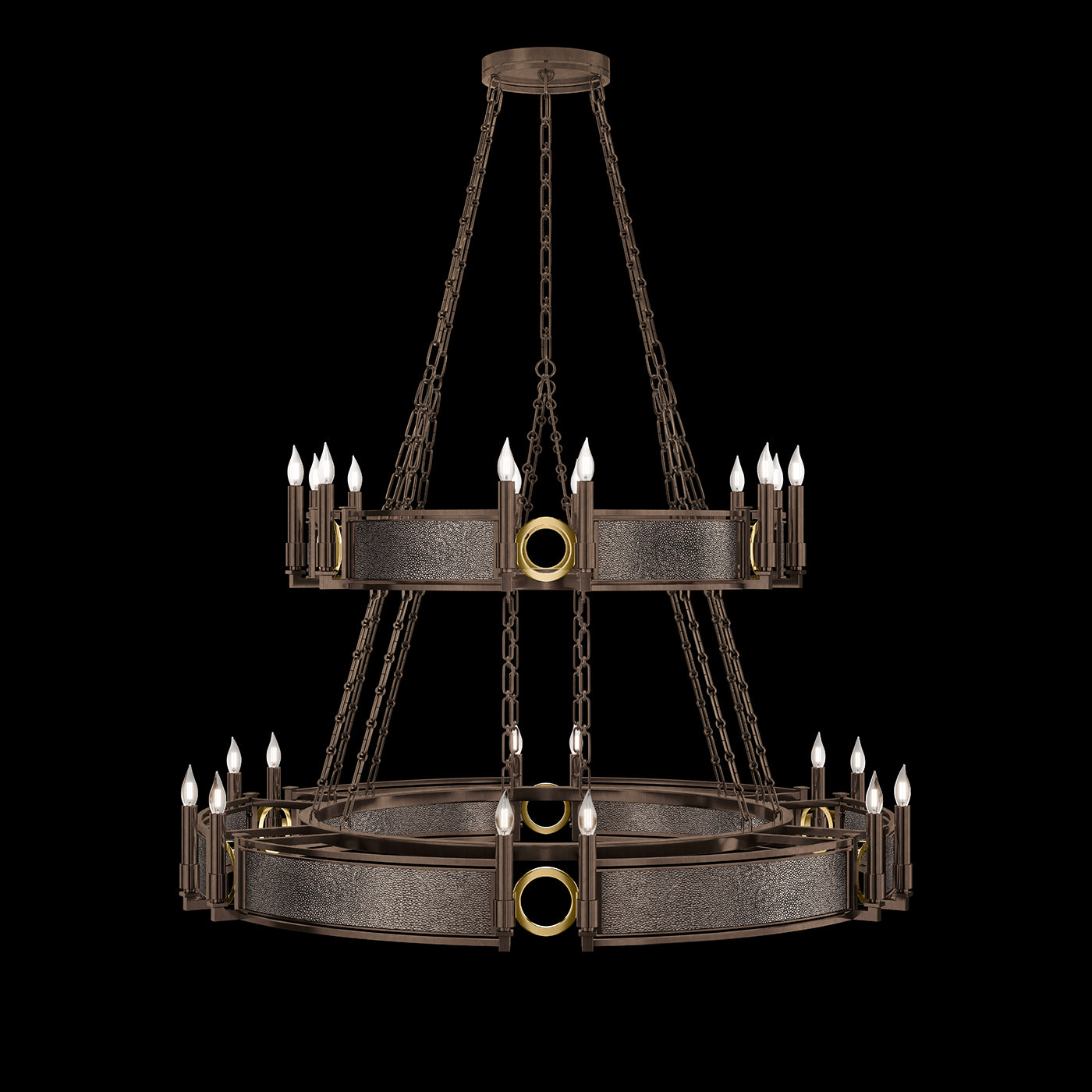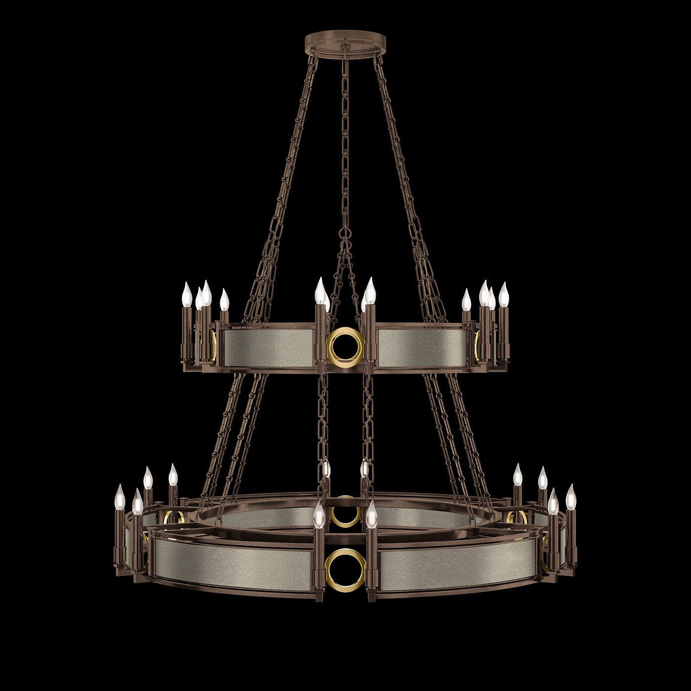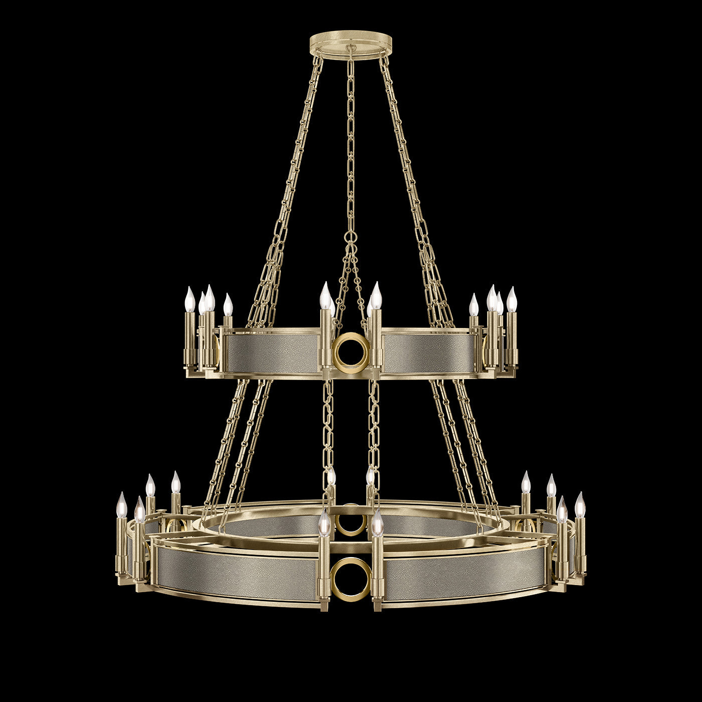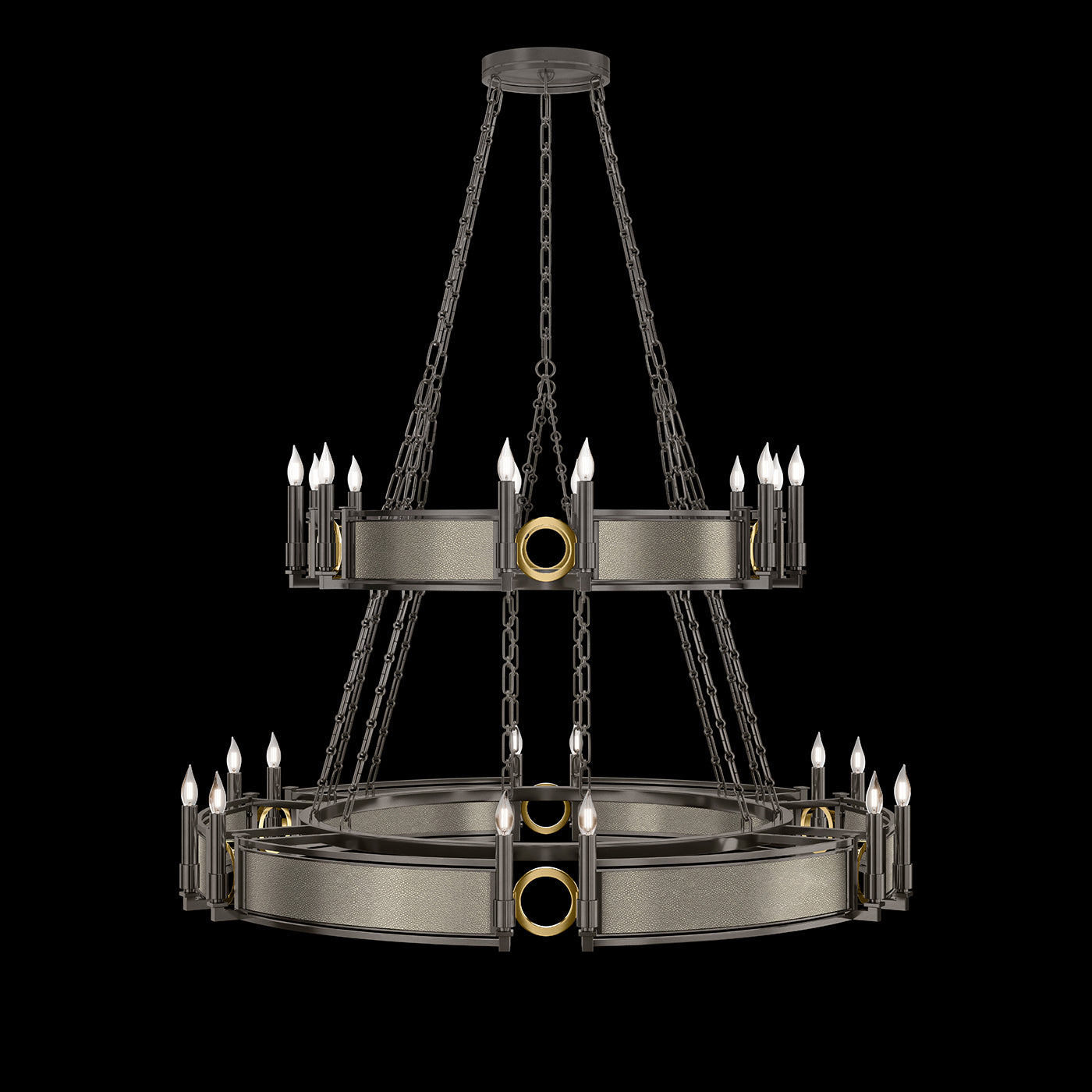 - Available in Champagne (gold), Midnight Steel (black) and our five Standard Finishes with choice of satin brass or nickel accents and three upcycled shagreen options: Pebble, Coco or Black Knight.