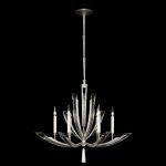 - Chandelier featuring graceful sweeps of tapered beveled crystals precisely set in metal wings in an airy platinized silver leaf finish.