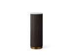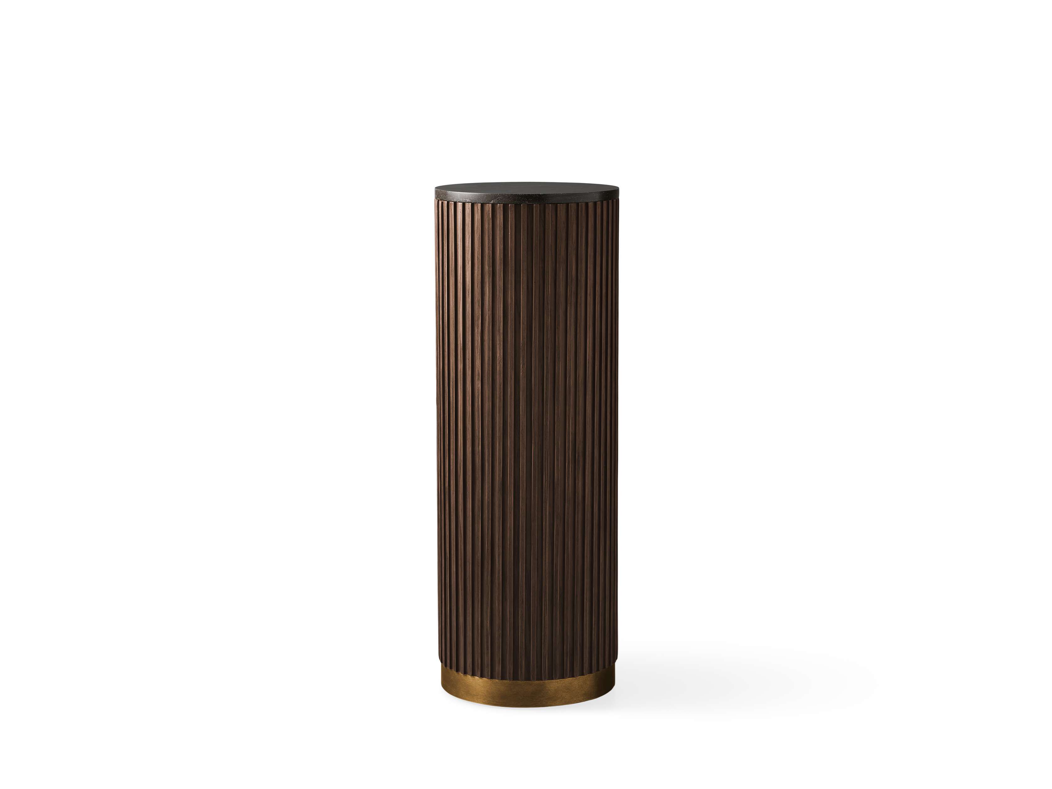 - Zinc-alloy plinth bases feature a brass finish.