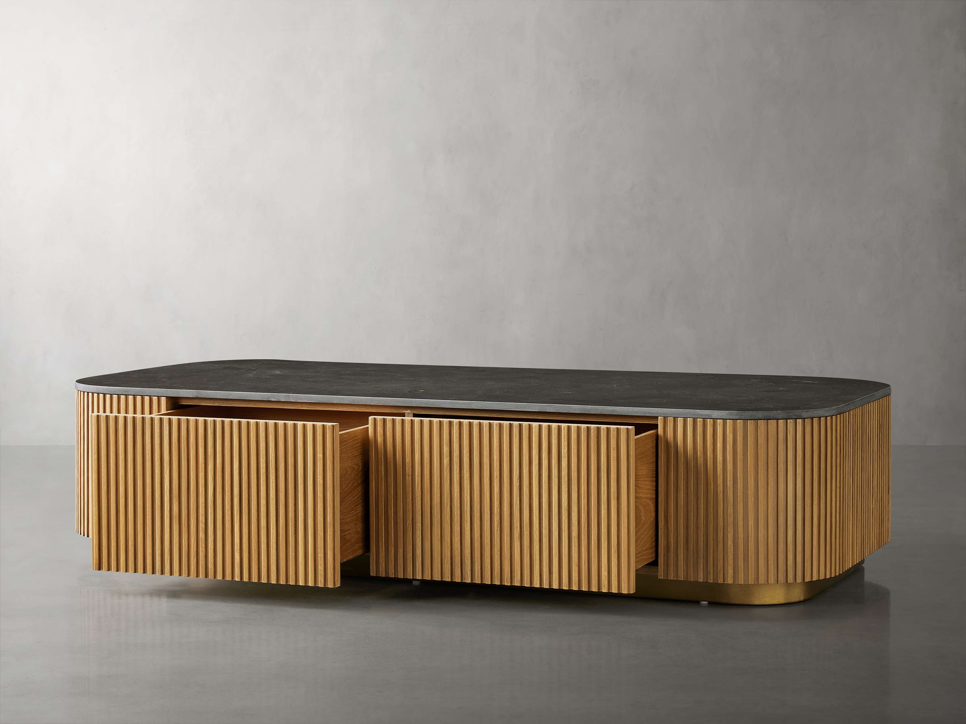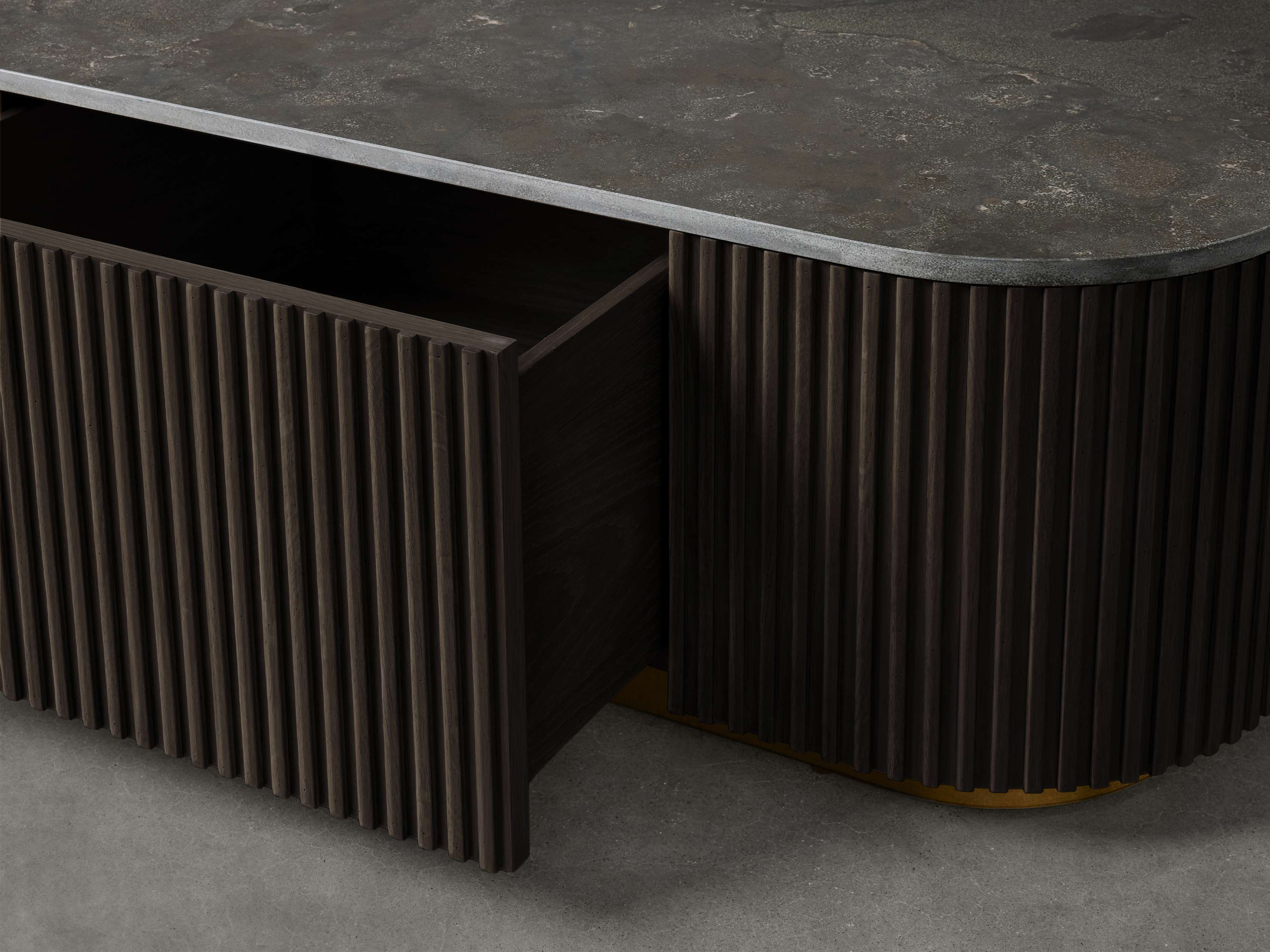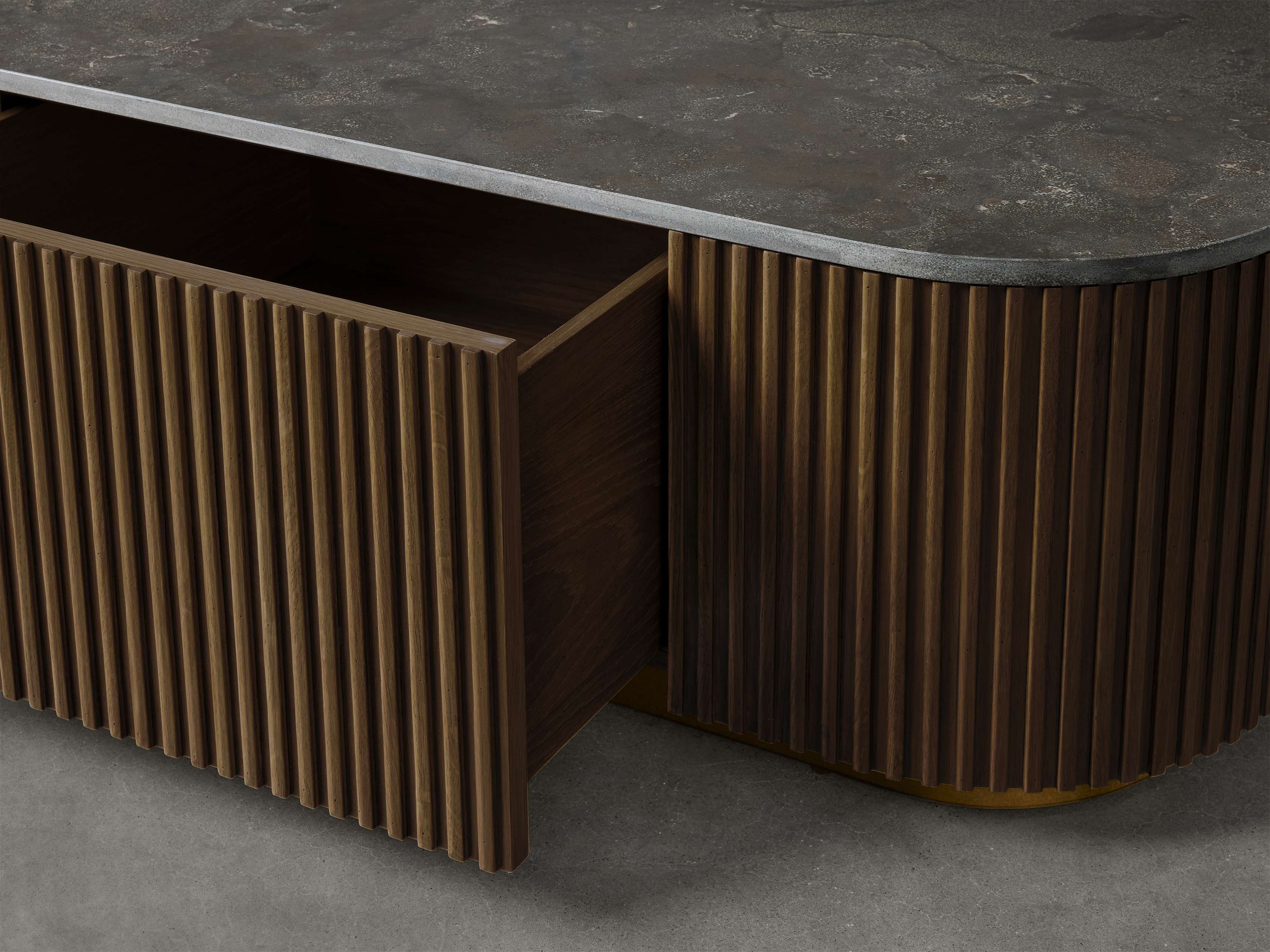 Our Finnley Collection showcases a stunning mixed-material design, inviting elevated style into your home. Hand-finished pine from Finland or white oak wood is luxuriously complemented by stone tops, accented by brass plinth bases and reeded oak detailing. The result is an eclectic-yet-chic collection that adds a touch of nature��s alchemy to any living space.