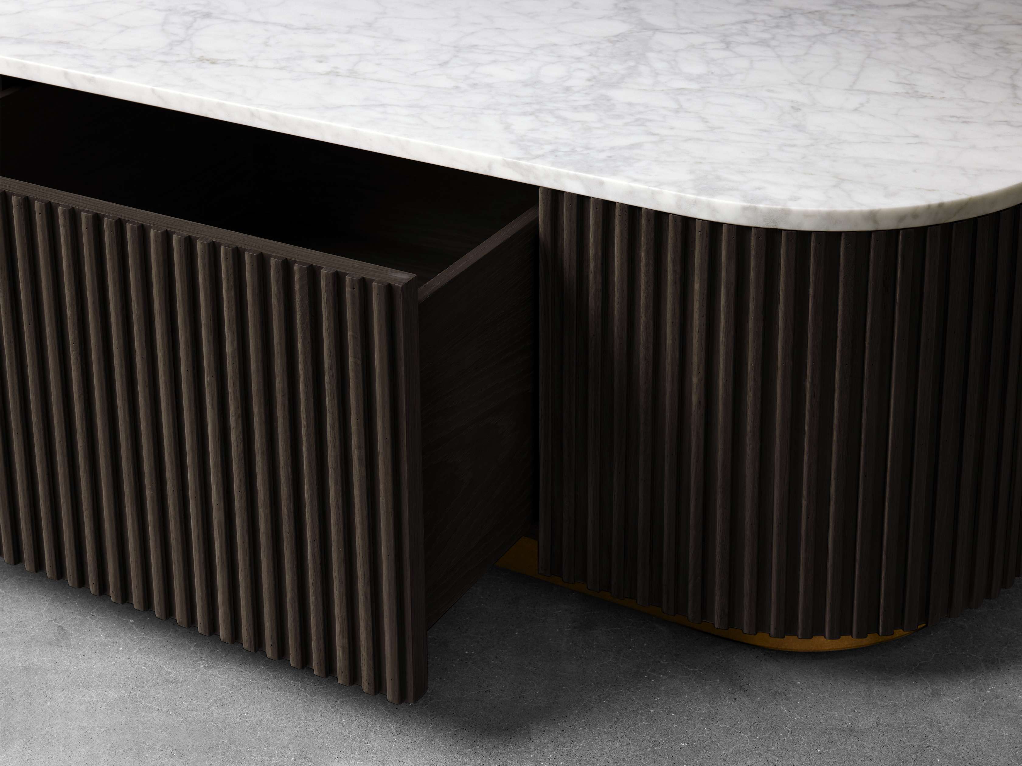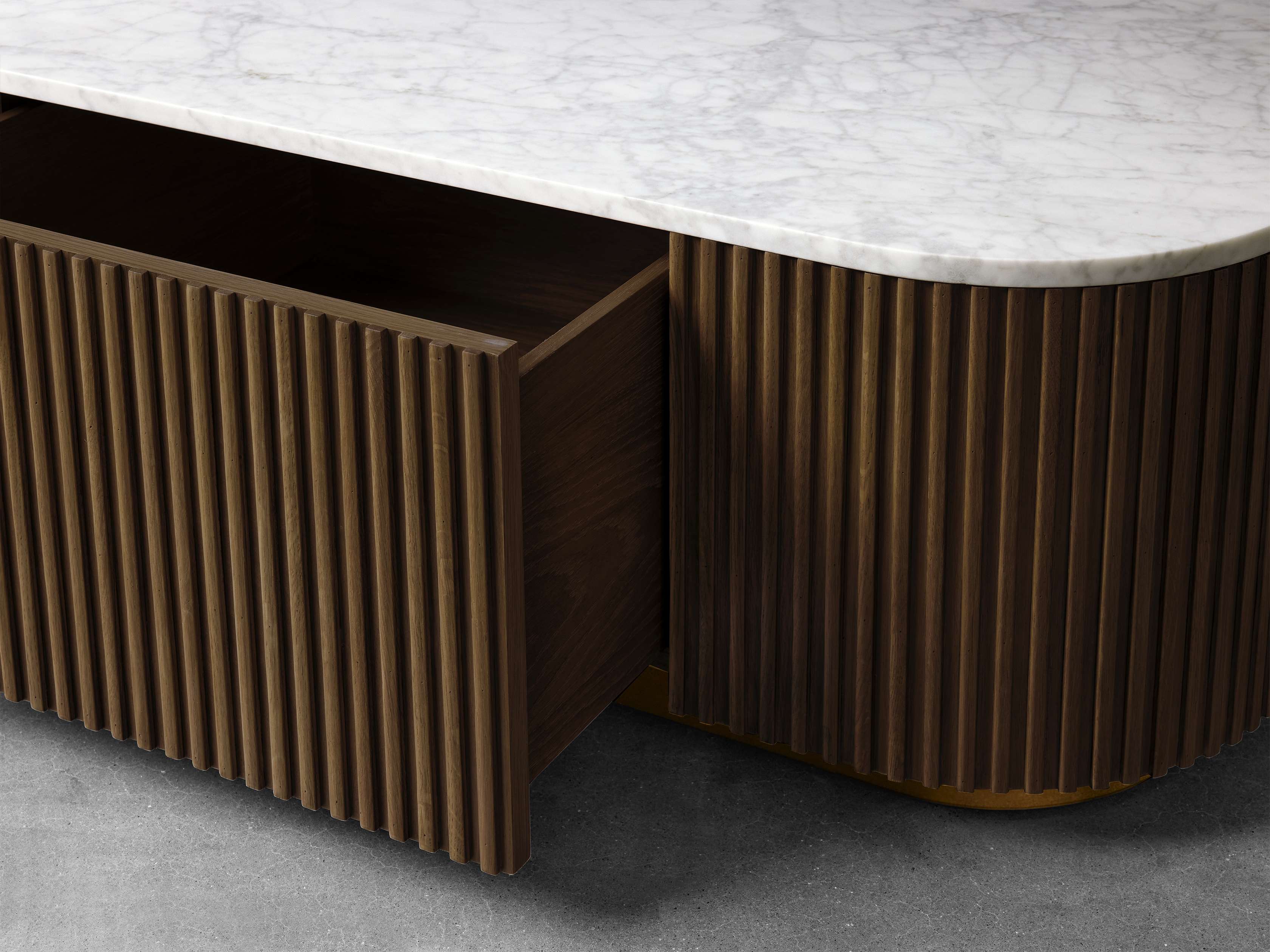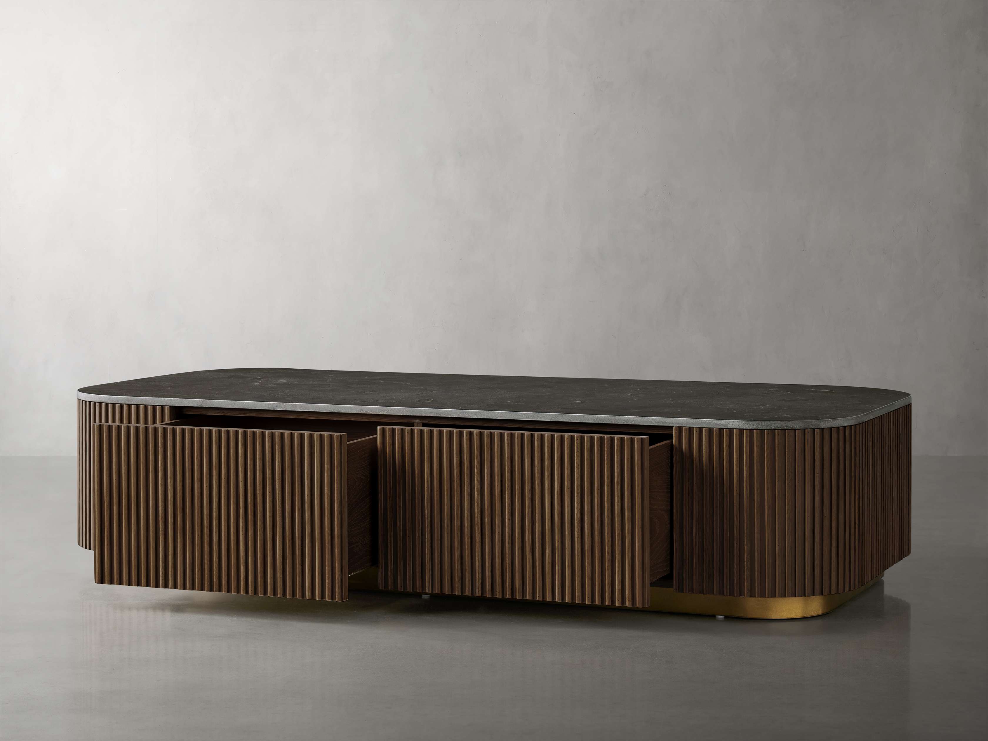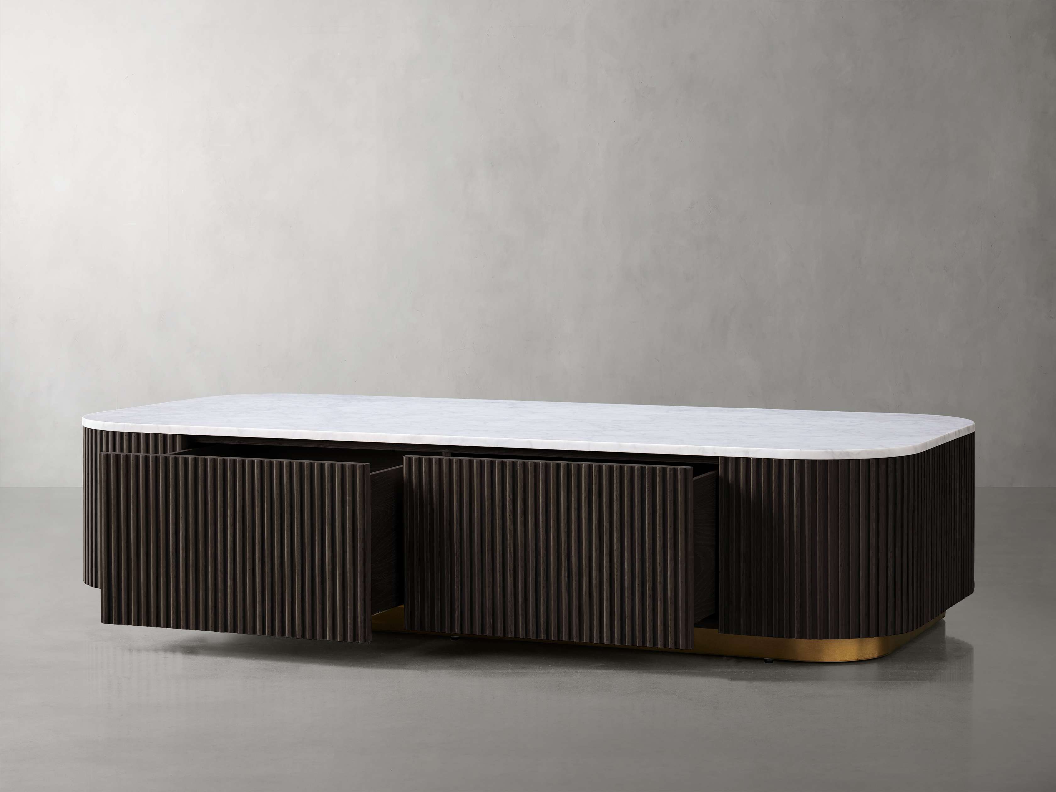 Our Finnley Collection showcases a stunning mixed-material design, inviting elevated style into your home. Hand-finished pine from Finland or white oak wood is luxuriously complemented by stone tops, accented by brass plinth bases and reeded oak detailing. The result is an eclectic-yet-chic collection that adds a touch of nature��s alchemy to any living space.