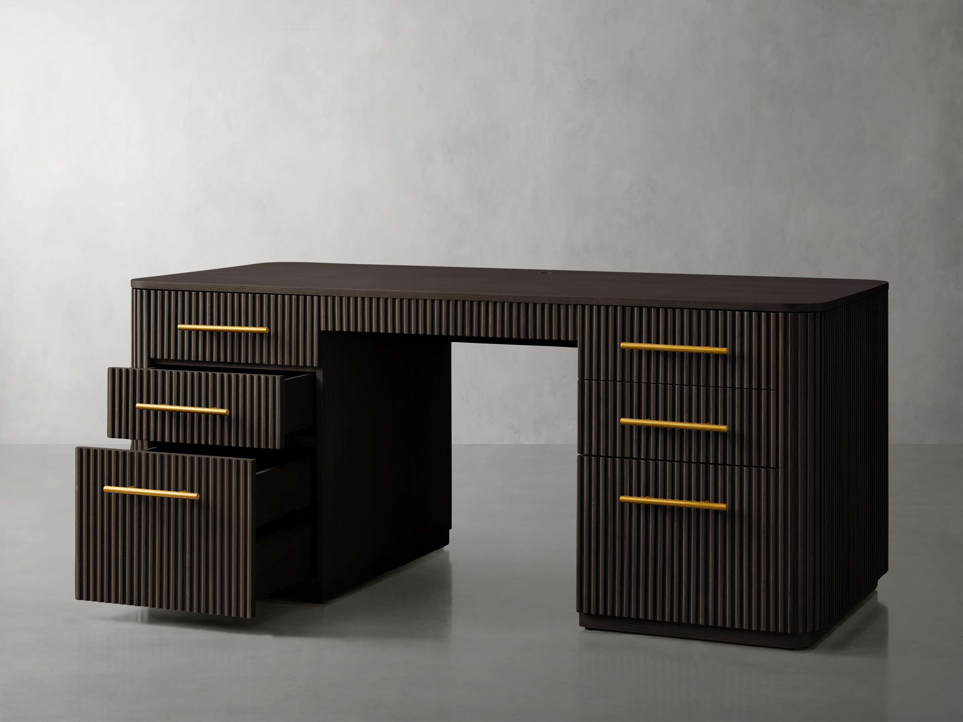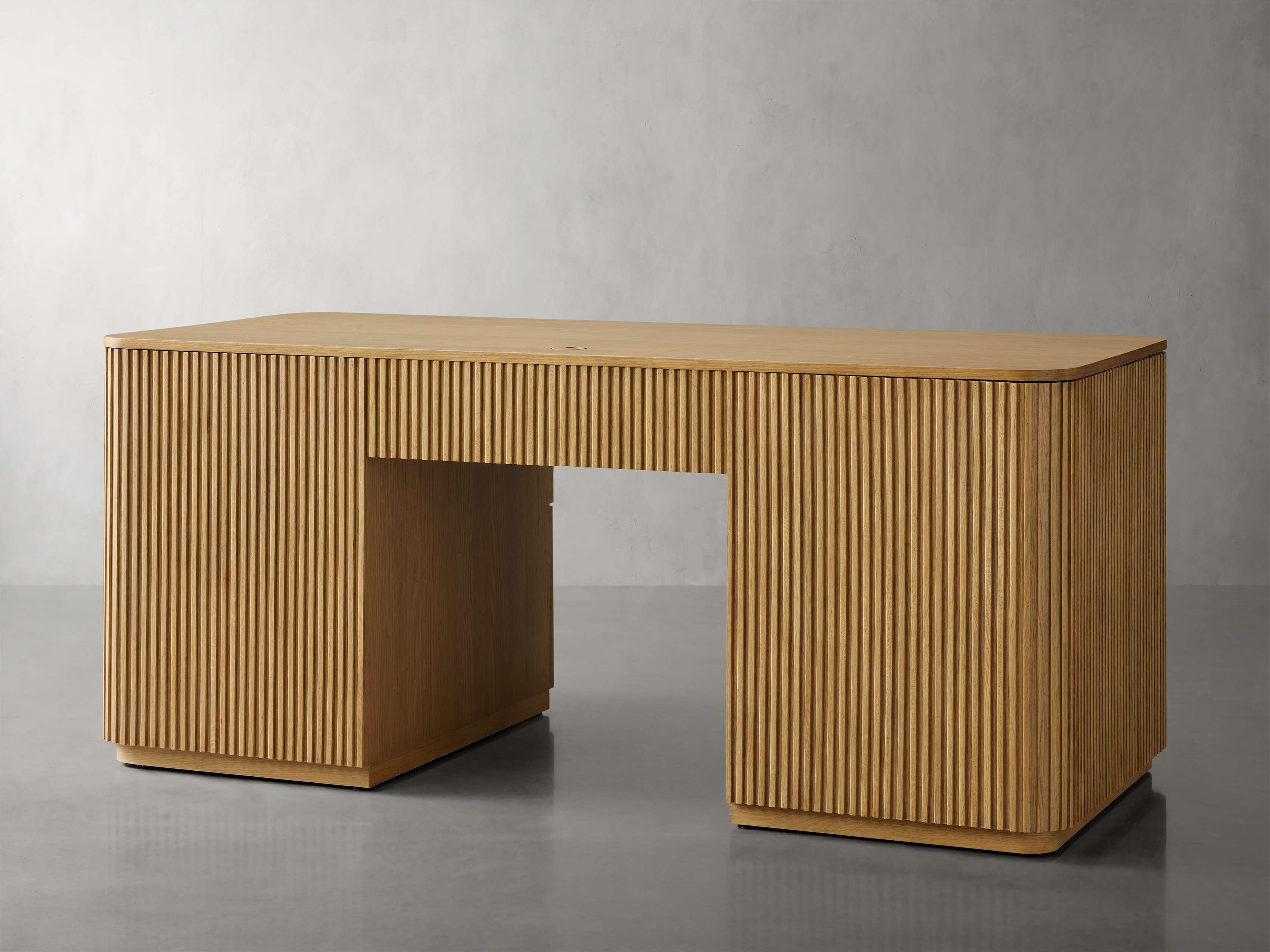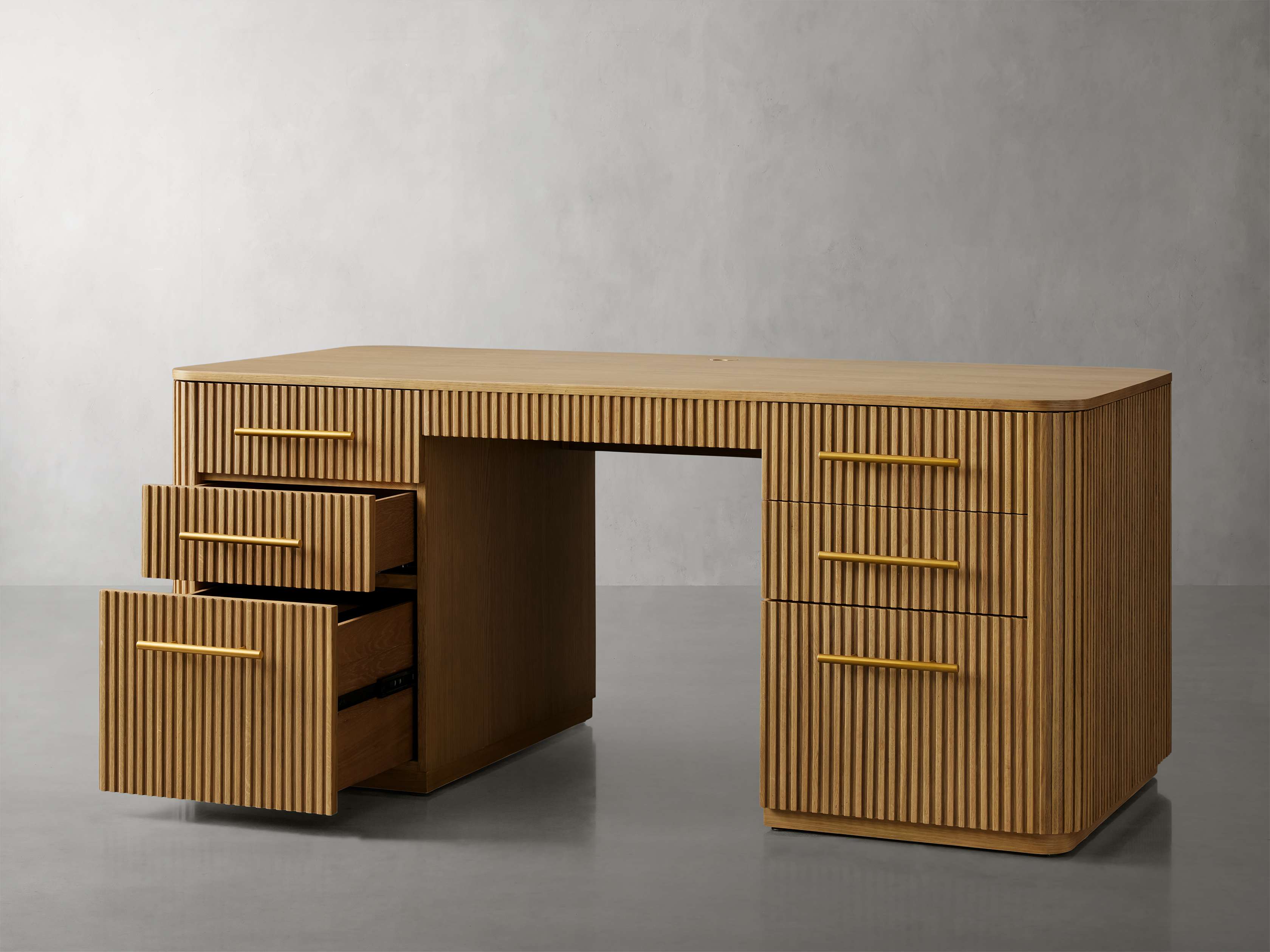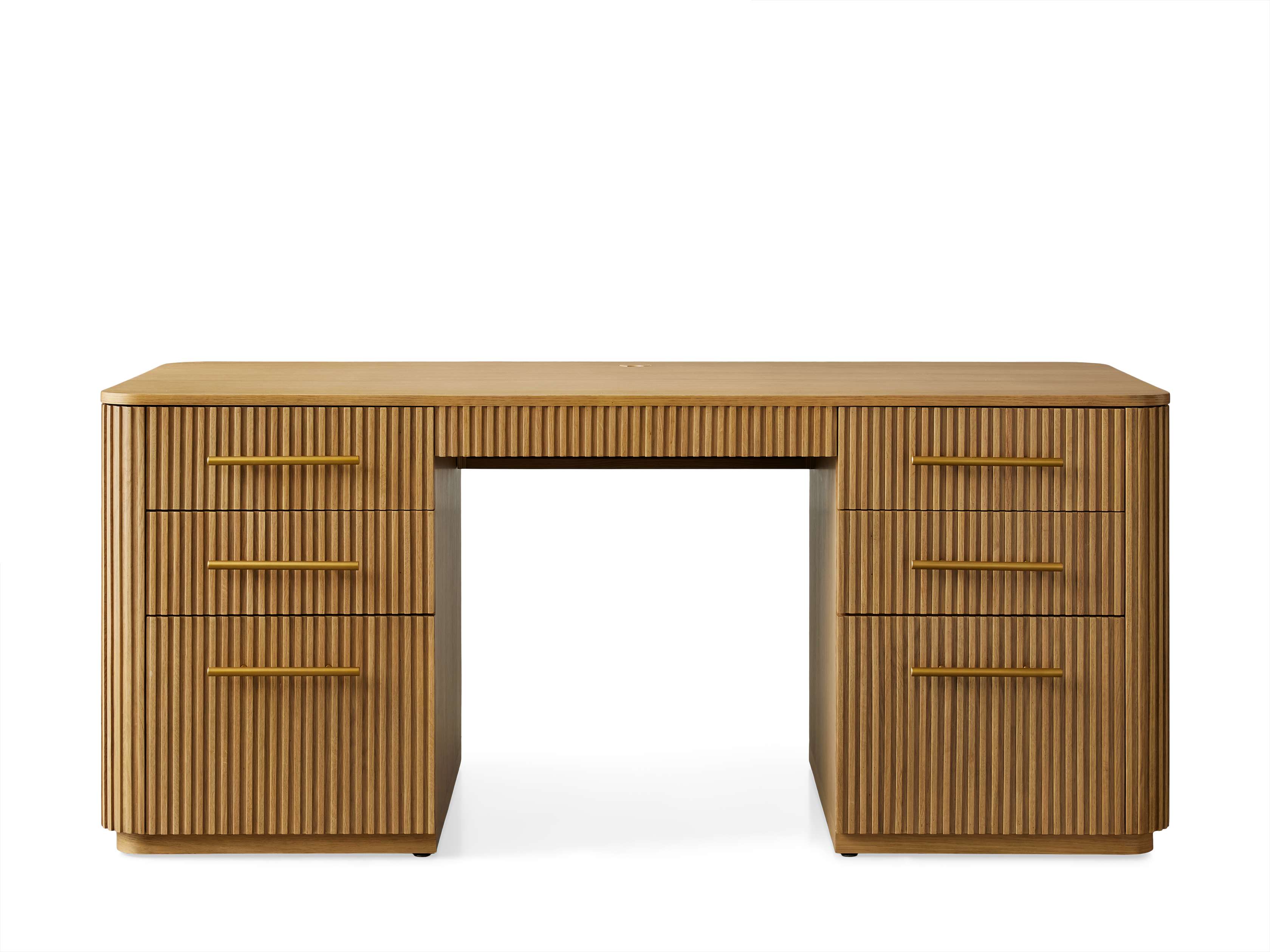 Our Finnley Office Collection showcases a stunning reeded design that invites elevated style into any office space. Craftsman-built from hand-finished pine from Finland or white oak wood, each piece is luxuriously accented by brass hardware. The result is an eclectic-yet-chic office collection that will inspire your most productive days.