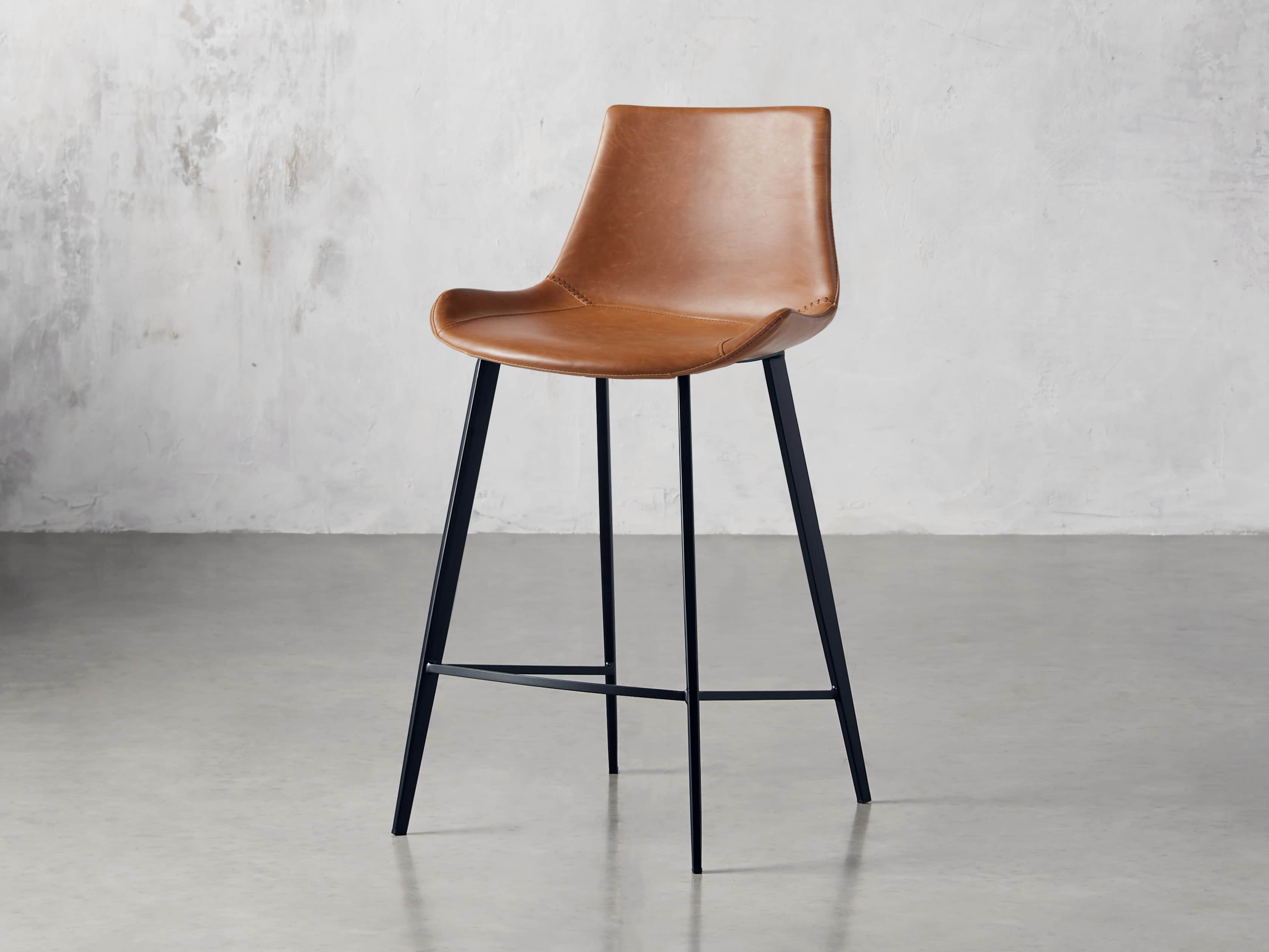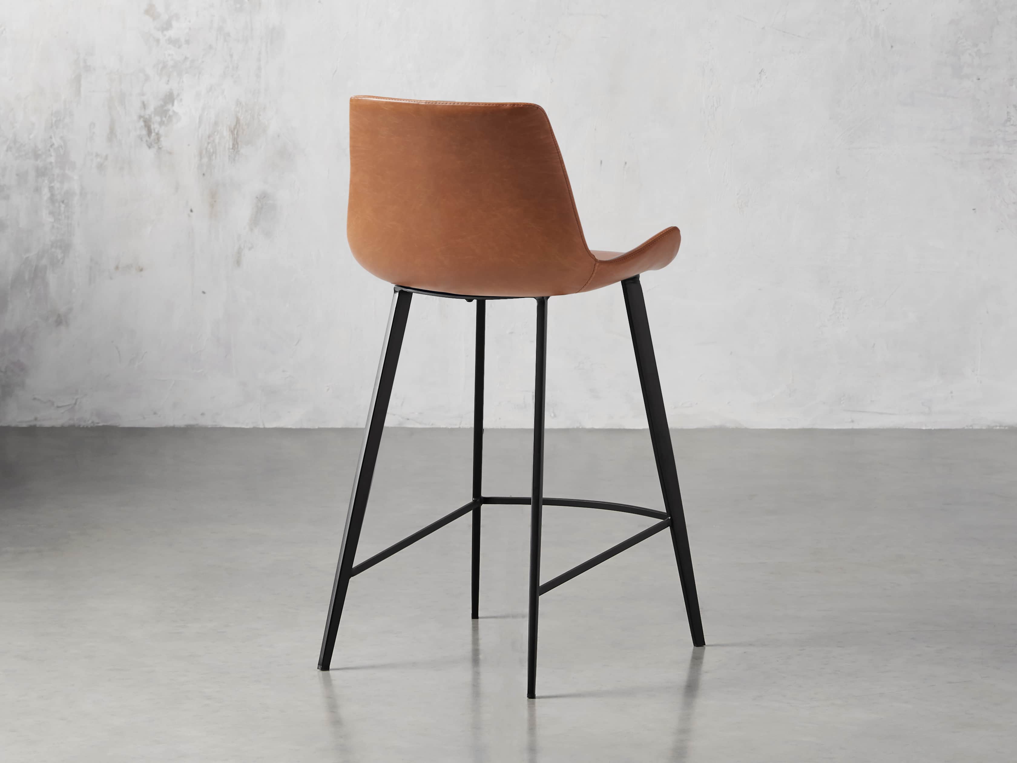 Our Gage Dining Seating Collection features an iconic scoop-seat silhouette accented by baseball-style stitching. Upholstered in faux leather, Gage’s seat is complemented by an iron frame with a uniquely textured, powder-coated finish designed to hold up to everyday wear.