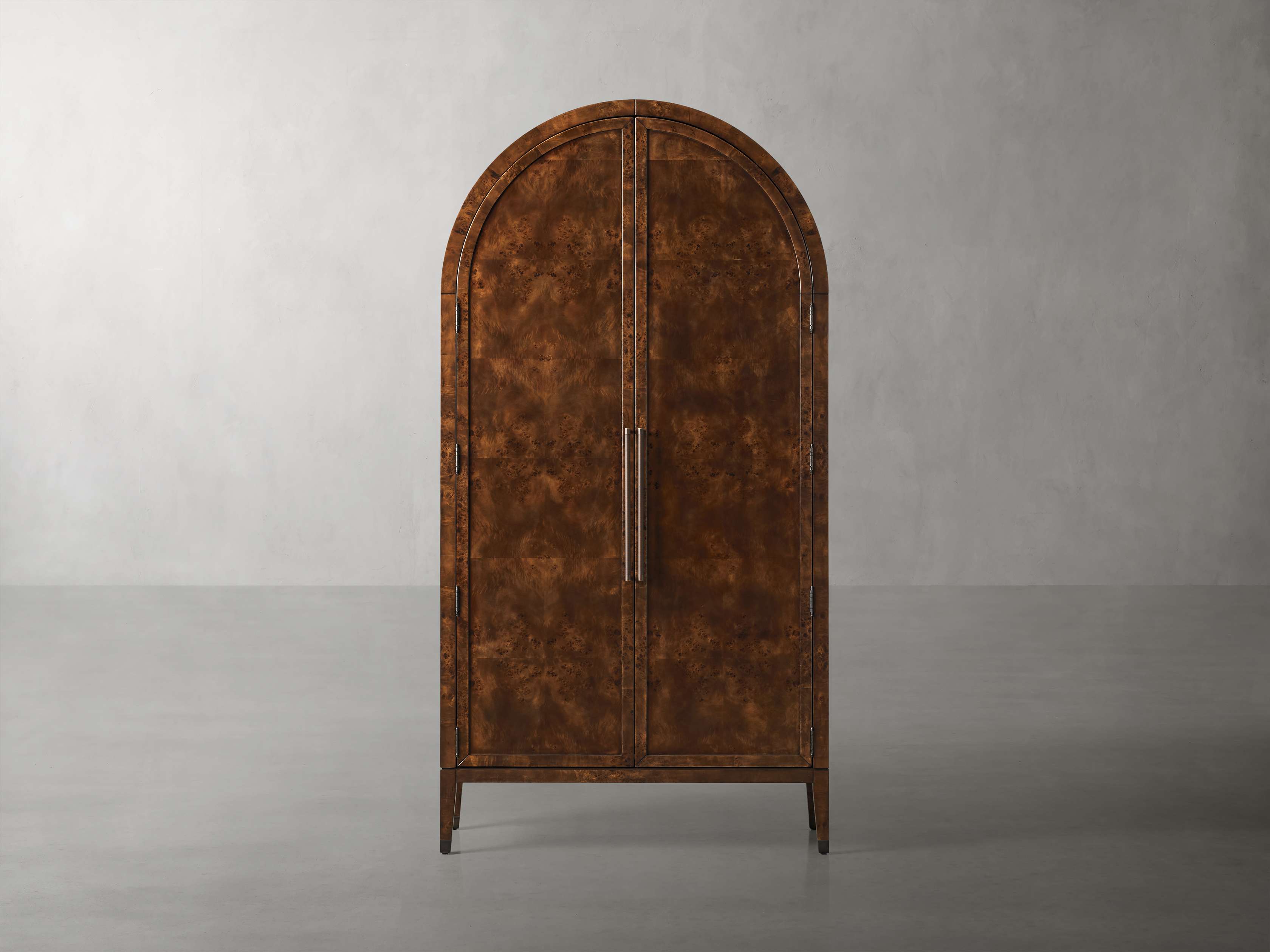 • Crafted from mappa burl wood veneer; swirling burl designs will vary, making your Hattie a one-of-a-kind piece.