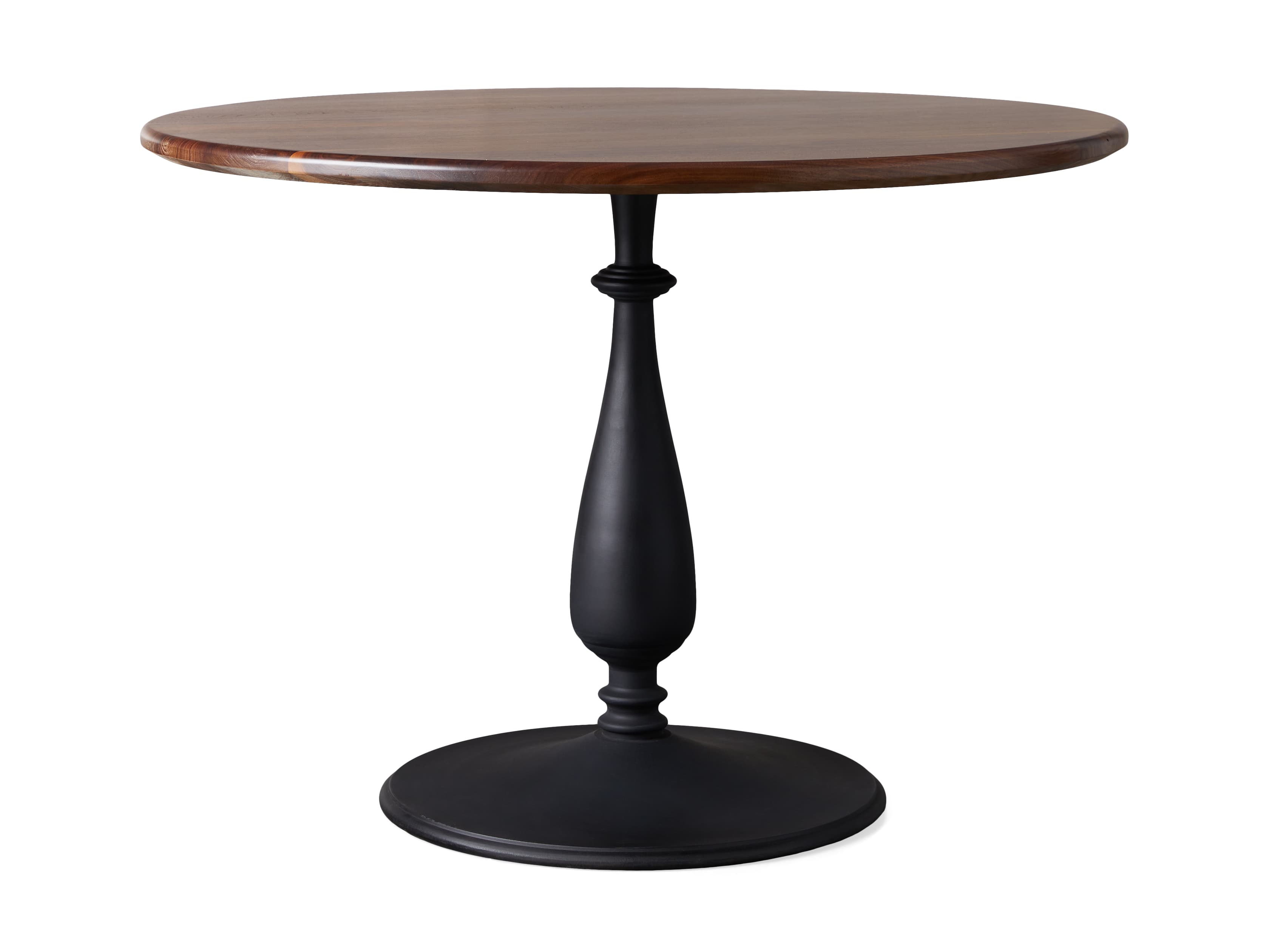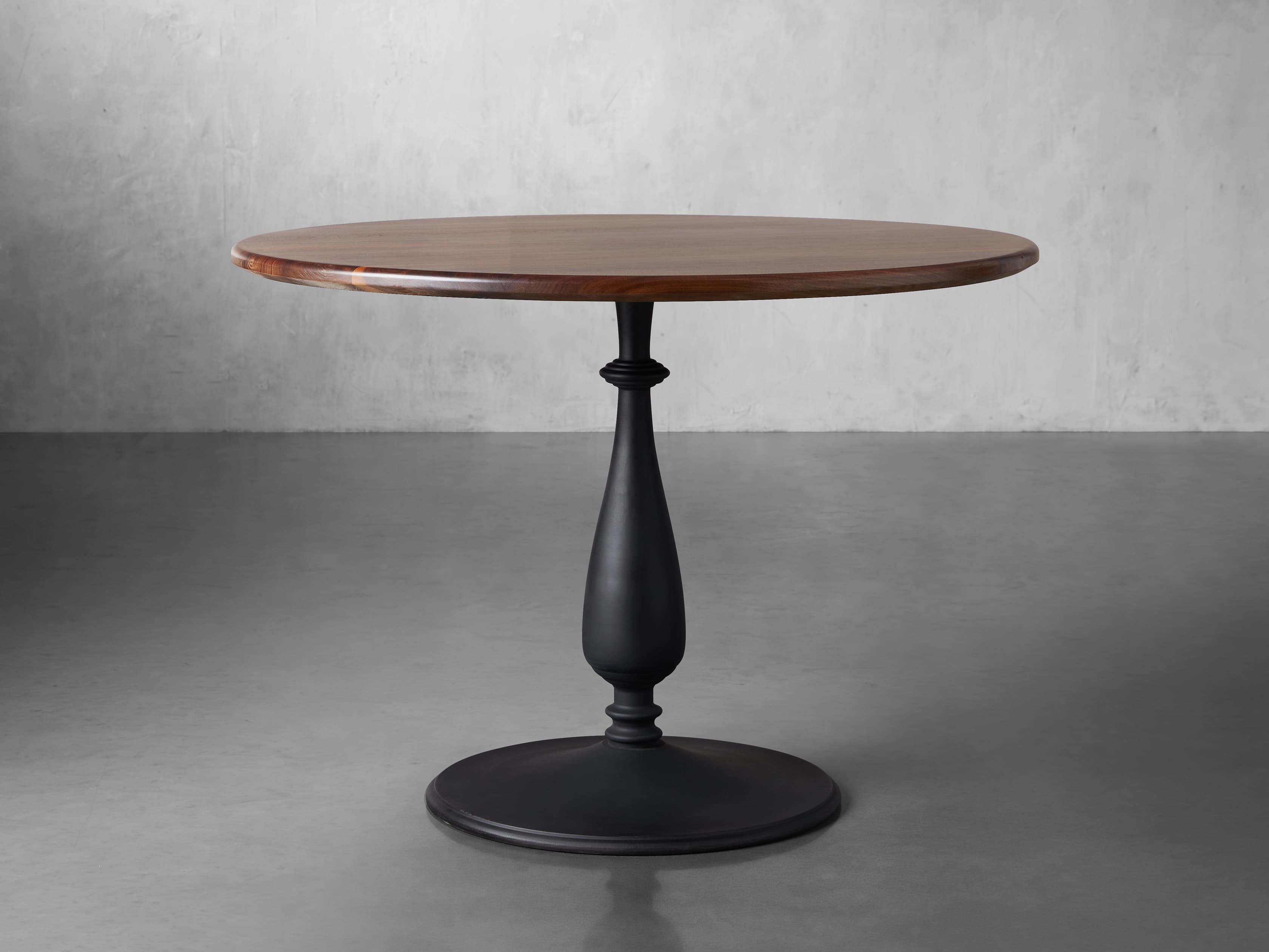 Our Jacob Dining Collection celebrates craftsmanship with sleek and modern style, bringing natural wood into contemporary dining spaces. Tabletops are made from solid oak and walnut, handcrafted in America by a community of Amish artisans. Oils, stains, and varnishes are applied to each tabletop by hand, creating high-gloss finishes that accentuate the wood’s natural beauty. Cleo Table Bases are crafted from iron, featuring a flat black finish to complement the beautiful tones of the wood.