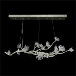 - This oblong chandelier has branches in antique silver leaf with thirteen frosted mouthblown glass magnolia lights and ten decorative frosted mouthblown glass tulips.