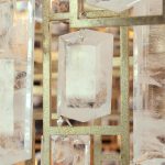 - Gorgeous cuts of occluded crystal, showcasing a beautiful blend of clear and white tones, are arranged into multiple neat rows.