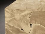 • Typical of natural teak wood, organic shapes, cracks, and patinas will continue to develop over time. Splits, knots, joint lines, and other features add distinct character to each piece without affecting its quality or performance.