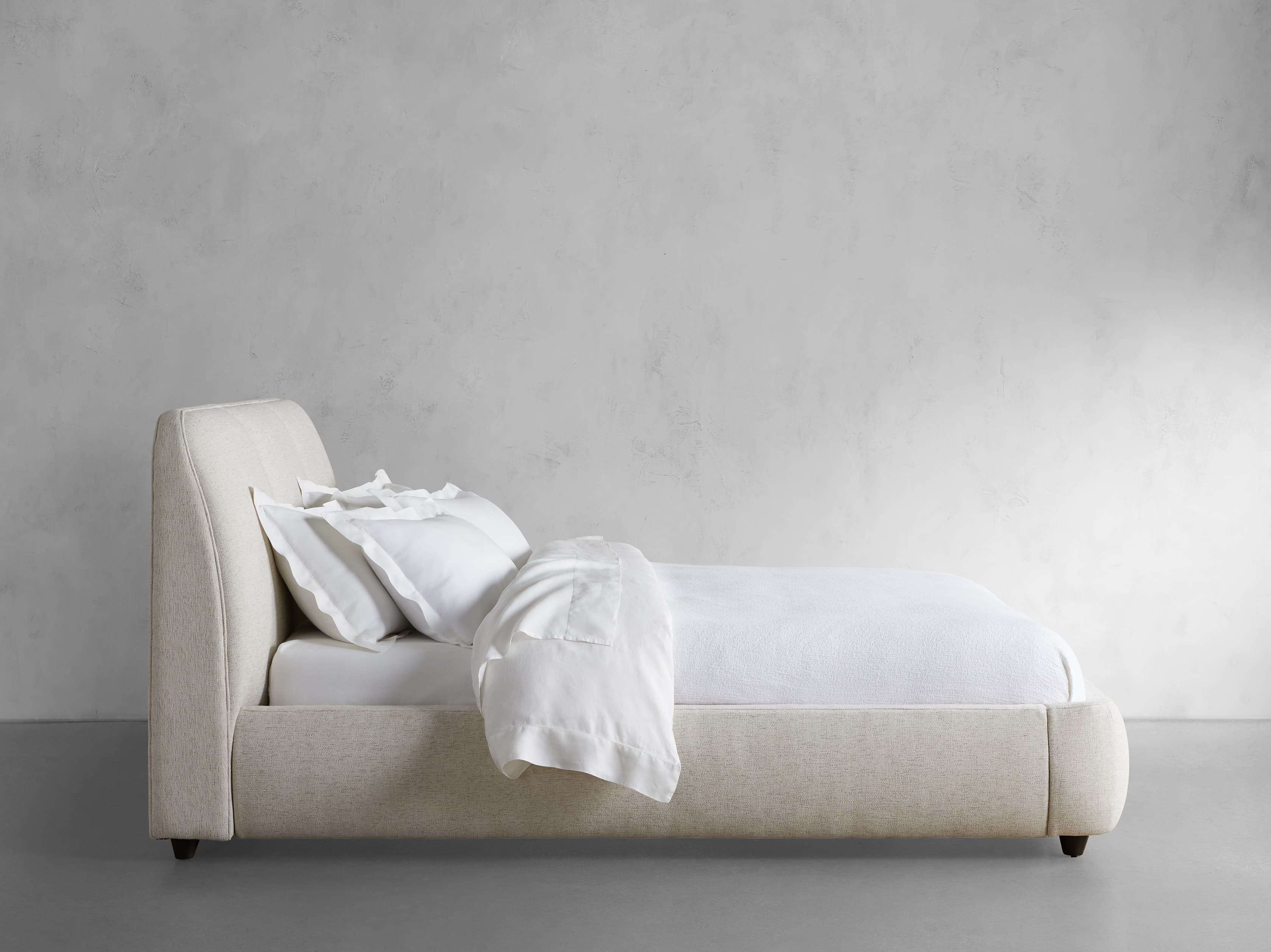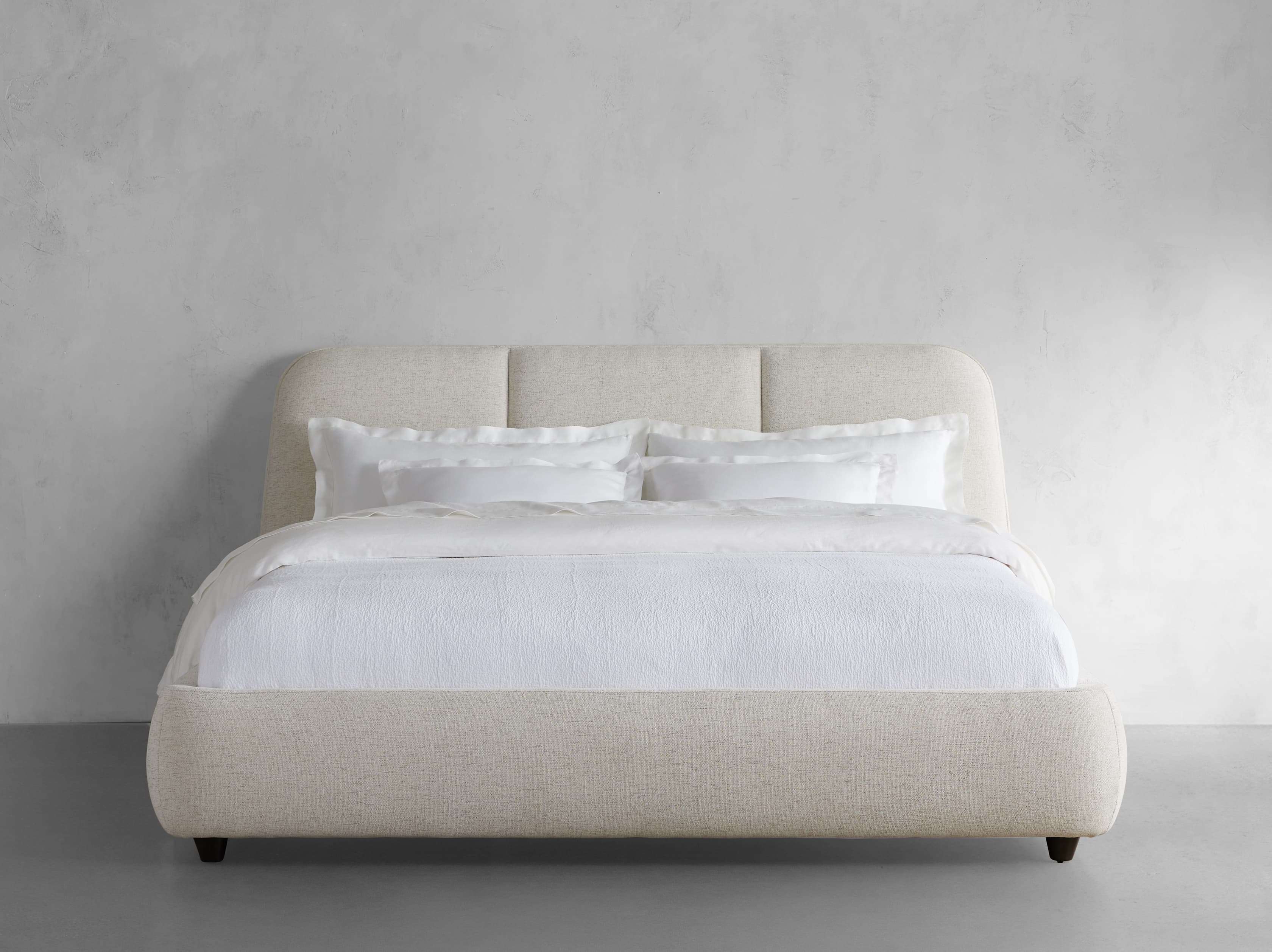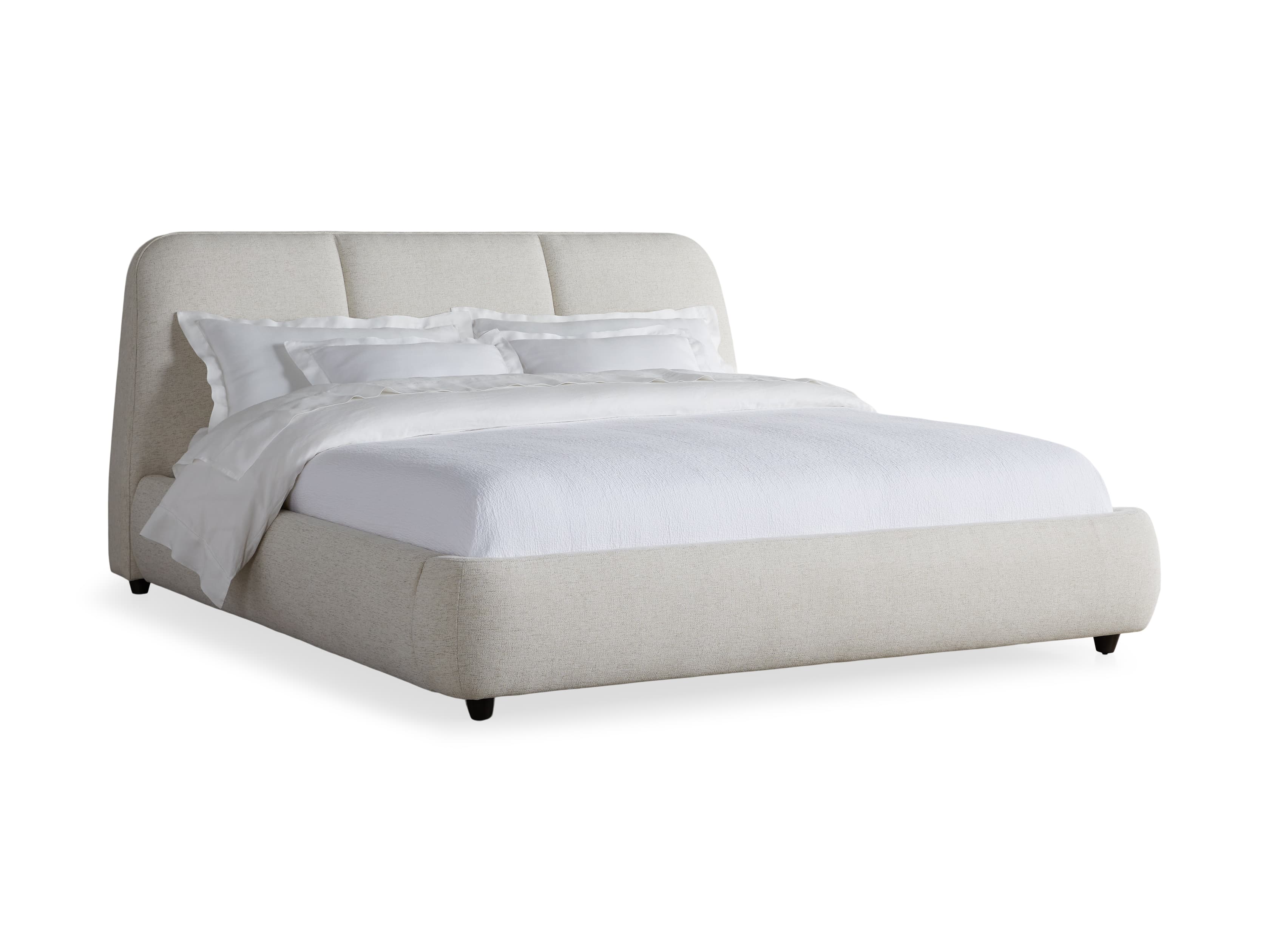 Our Kinnan Bedroom Collection celebrates craftsmanship with a low-slung silhouette, modern style, and expansive comfort. Each handcrafted piece is generously upholstered offering a cozy and plush retreat. With soft curves bordering the frame and three simple channels featured on the headboard, Kinnan will make a minimalist statement in any bedroom.