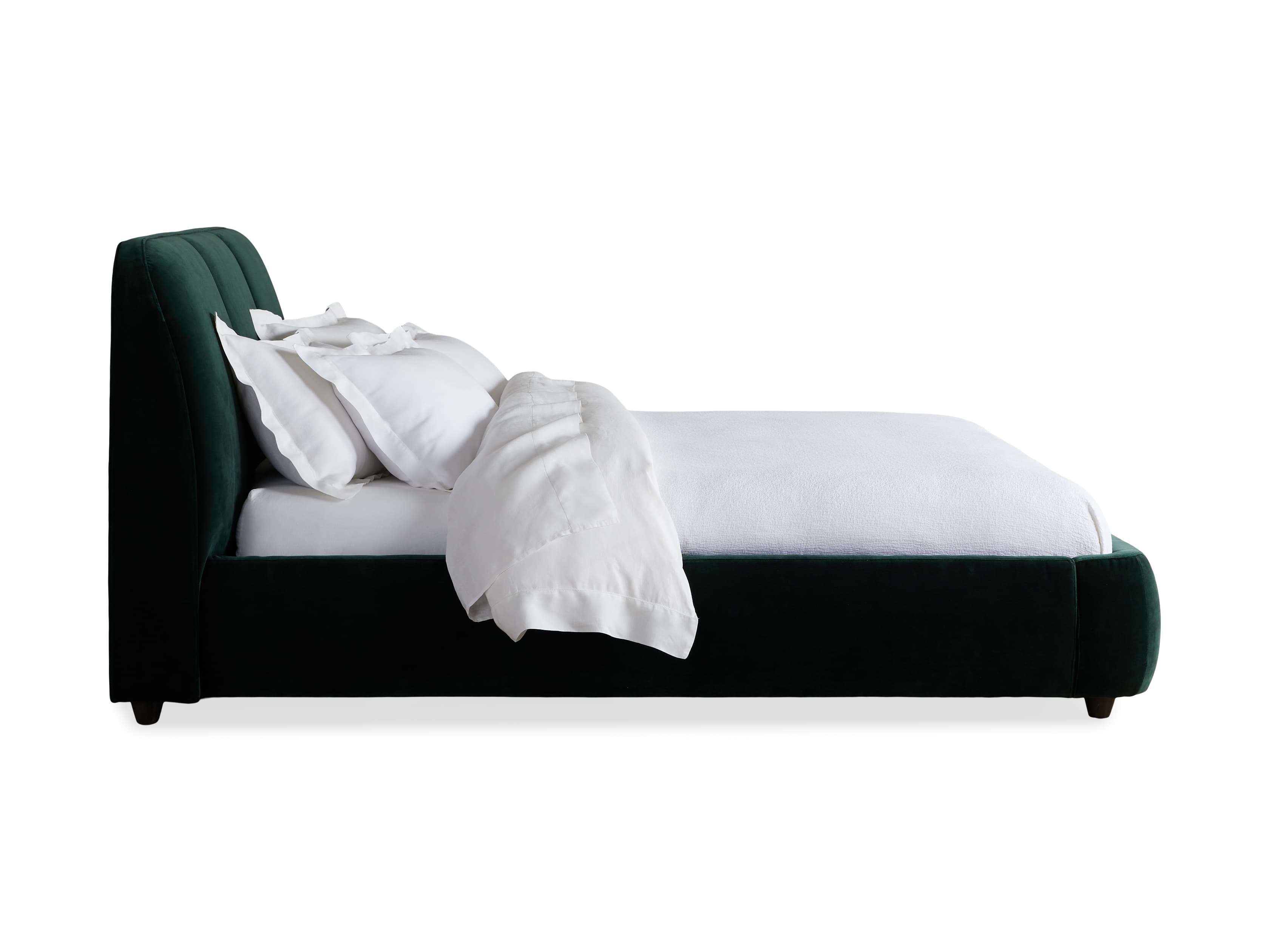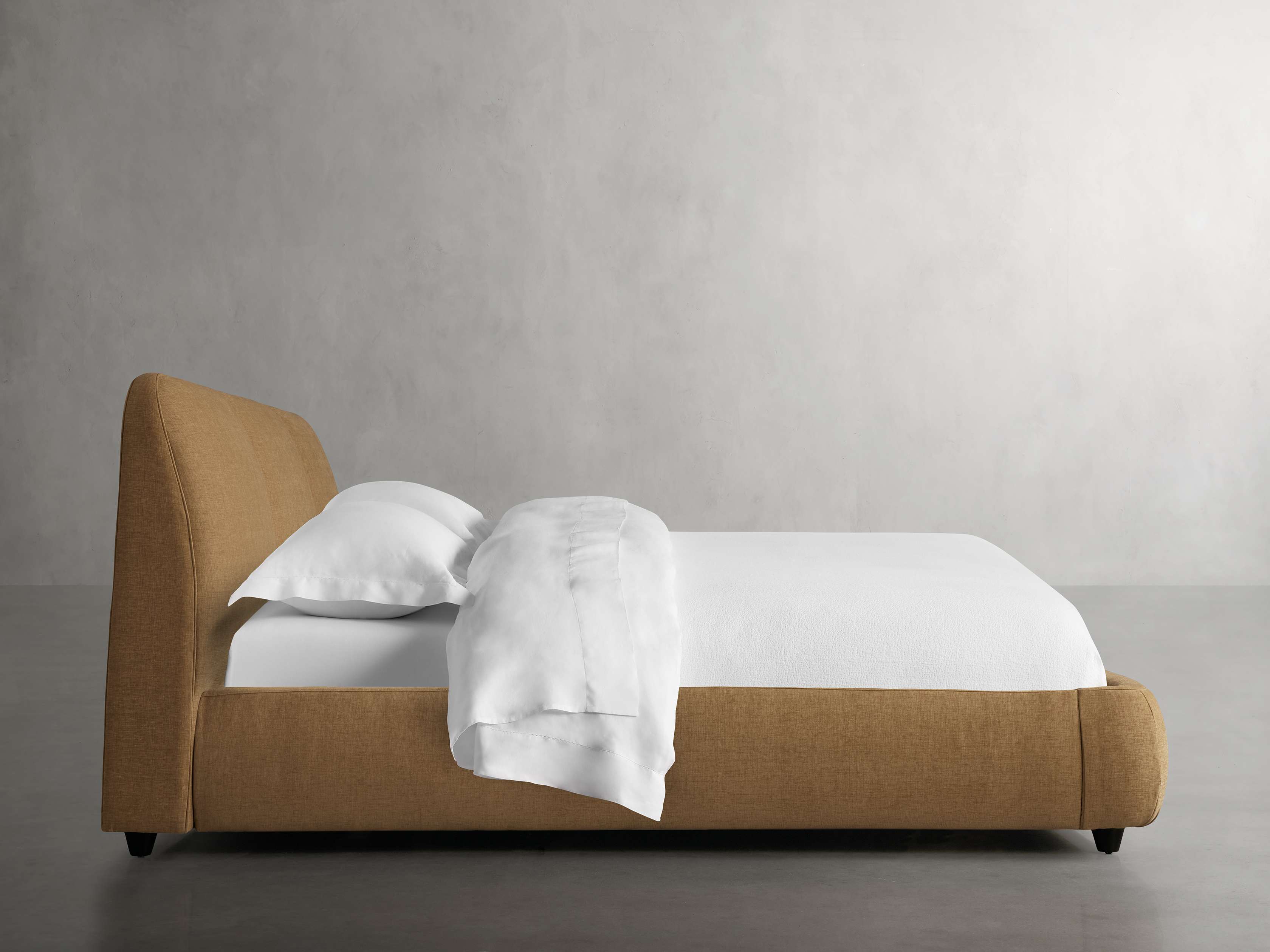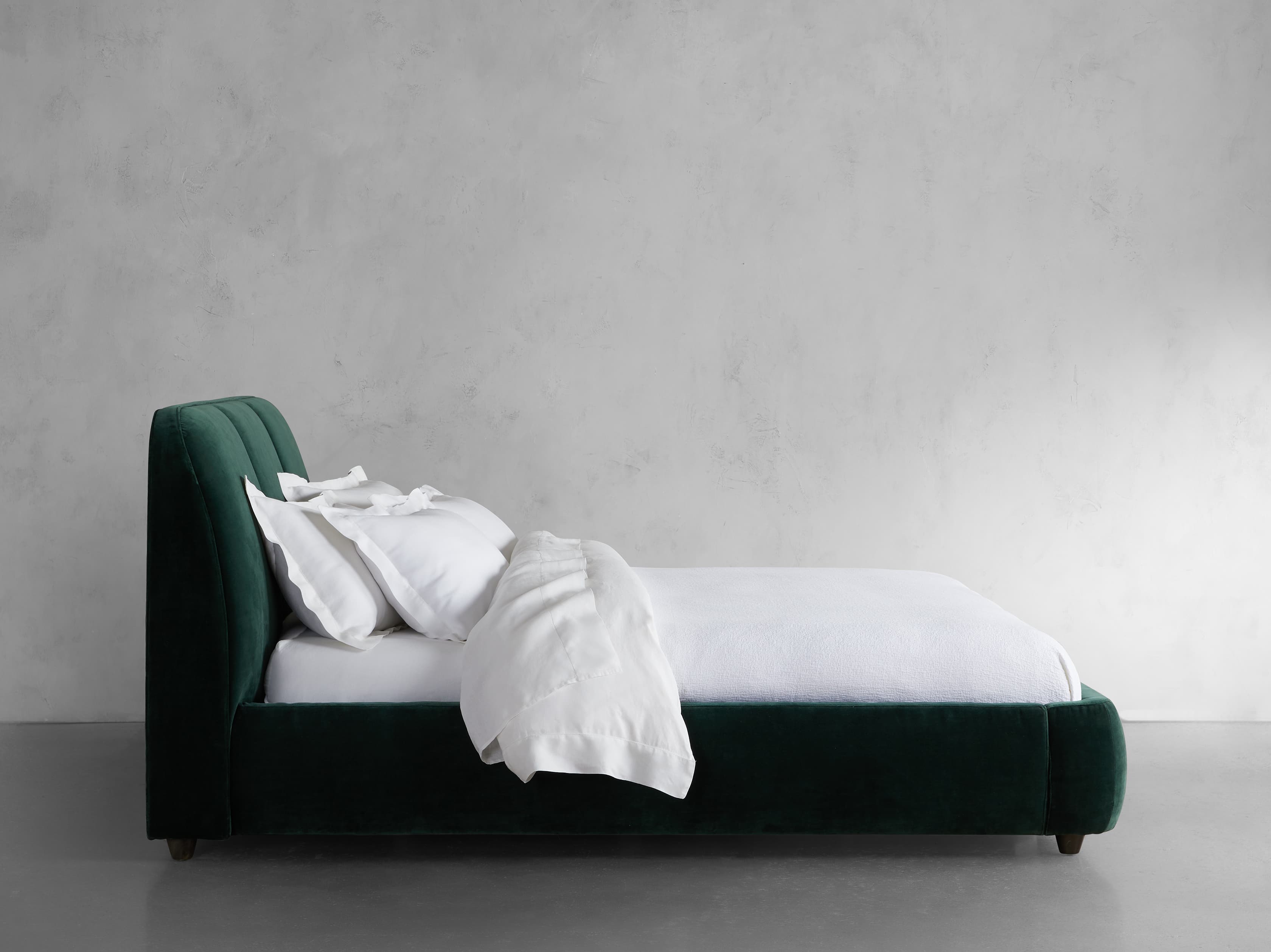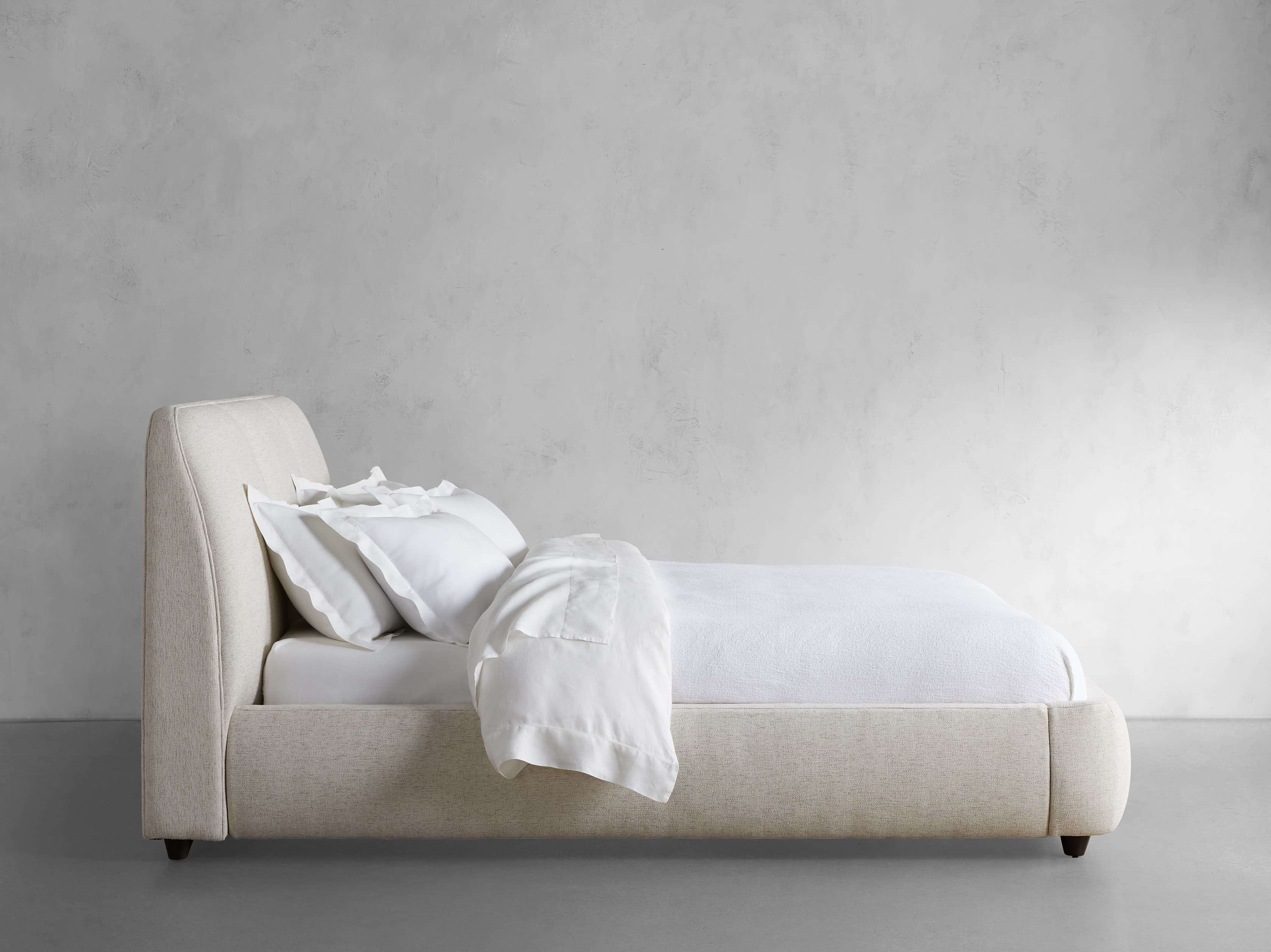 Our Kinnan Bedroom Collection celebrates craftsmanship with a low-slung silhouette, modern style, and expansive comfort. Each handcrafted piece is generously upholstered offering a cozy and plush retreat. With soft curves bordering the frame and three simple channels featured on the headboard, Kinnan will make a minimalist statement in any bedroom.