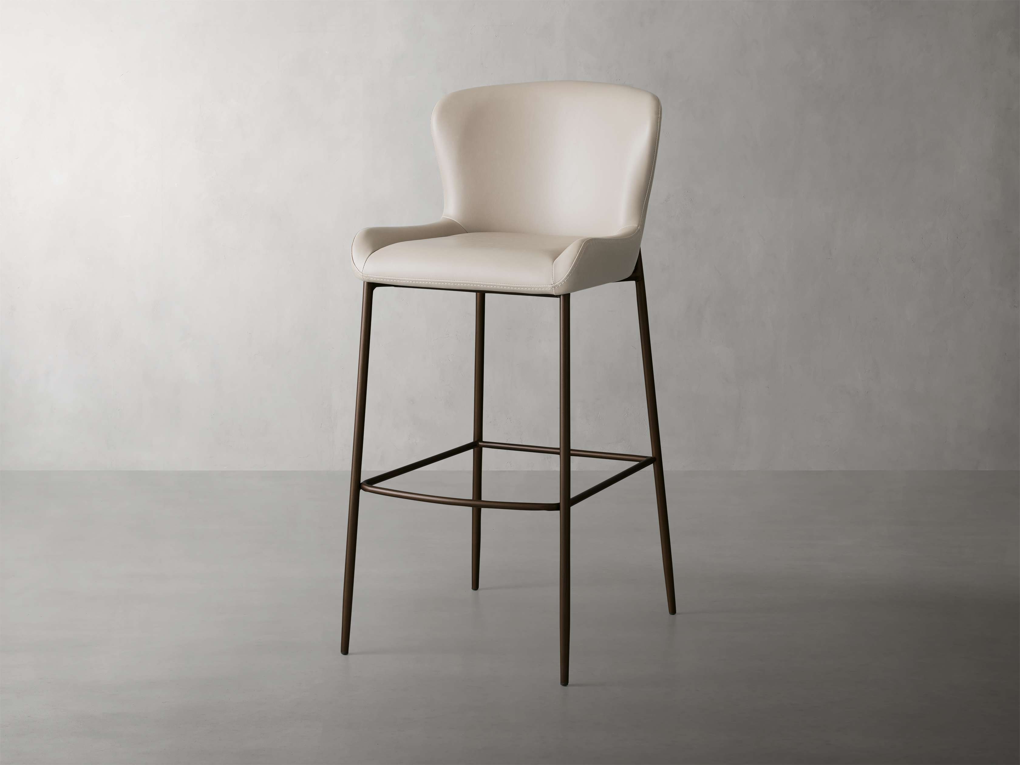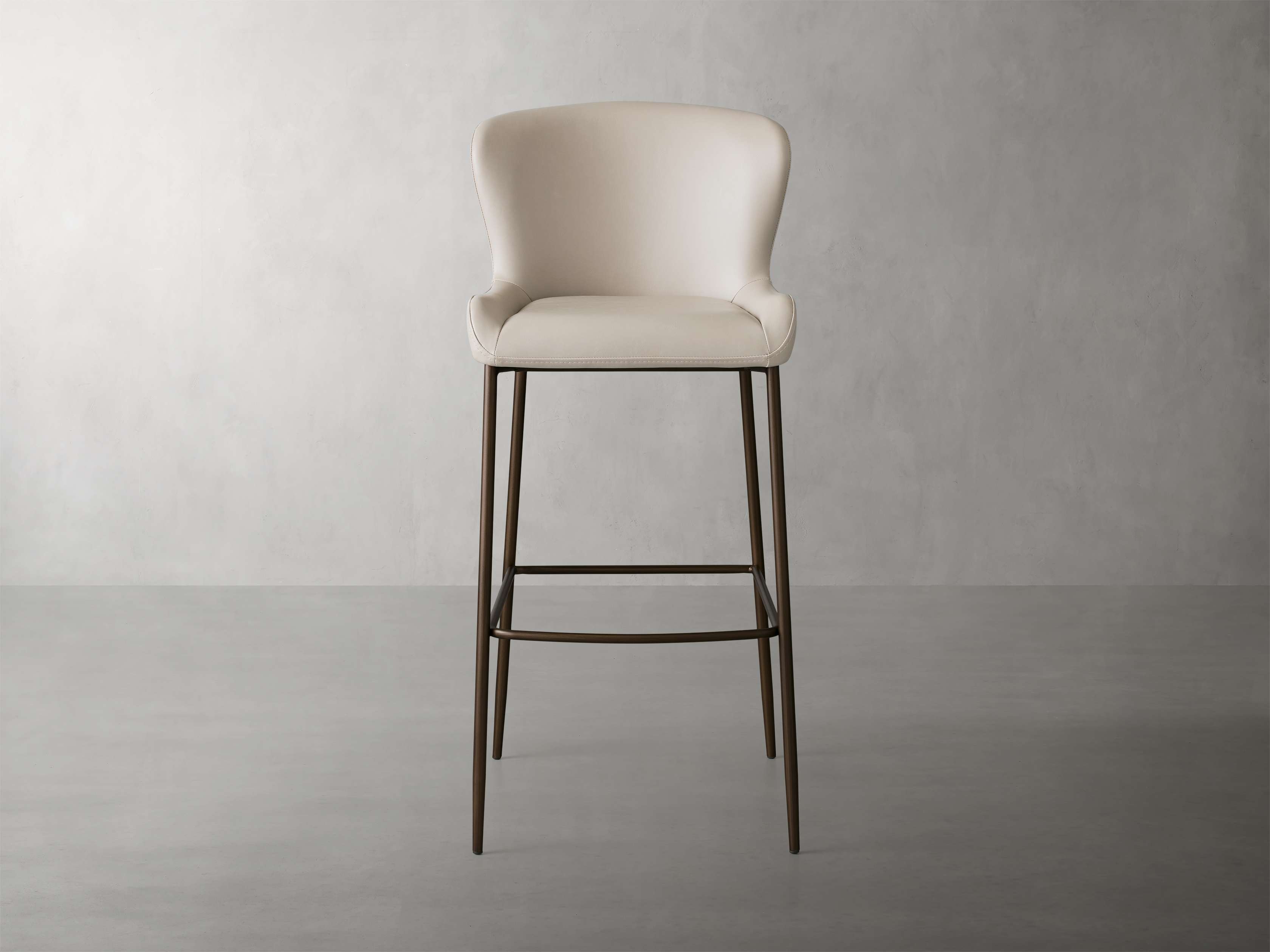 The sculpted silhouette of our Kirsten Dining Seating Collection embraces you with its elegant scoop seat and gently curved backrest. Generously upholstered in a beautiful, durable faux leather, Kirsten’s minimalistic iron frame adds modern comfort to any kitchen or dining space.
