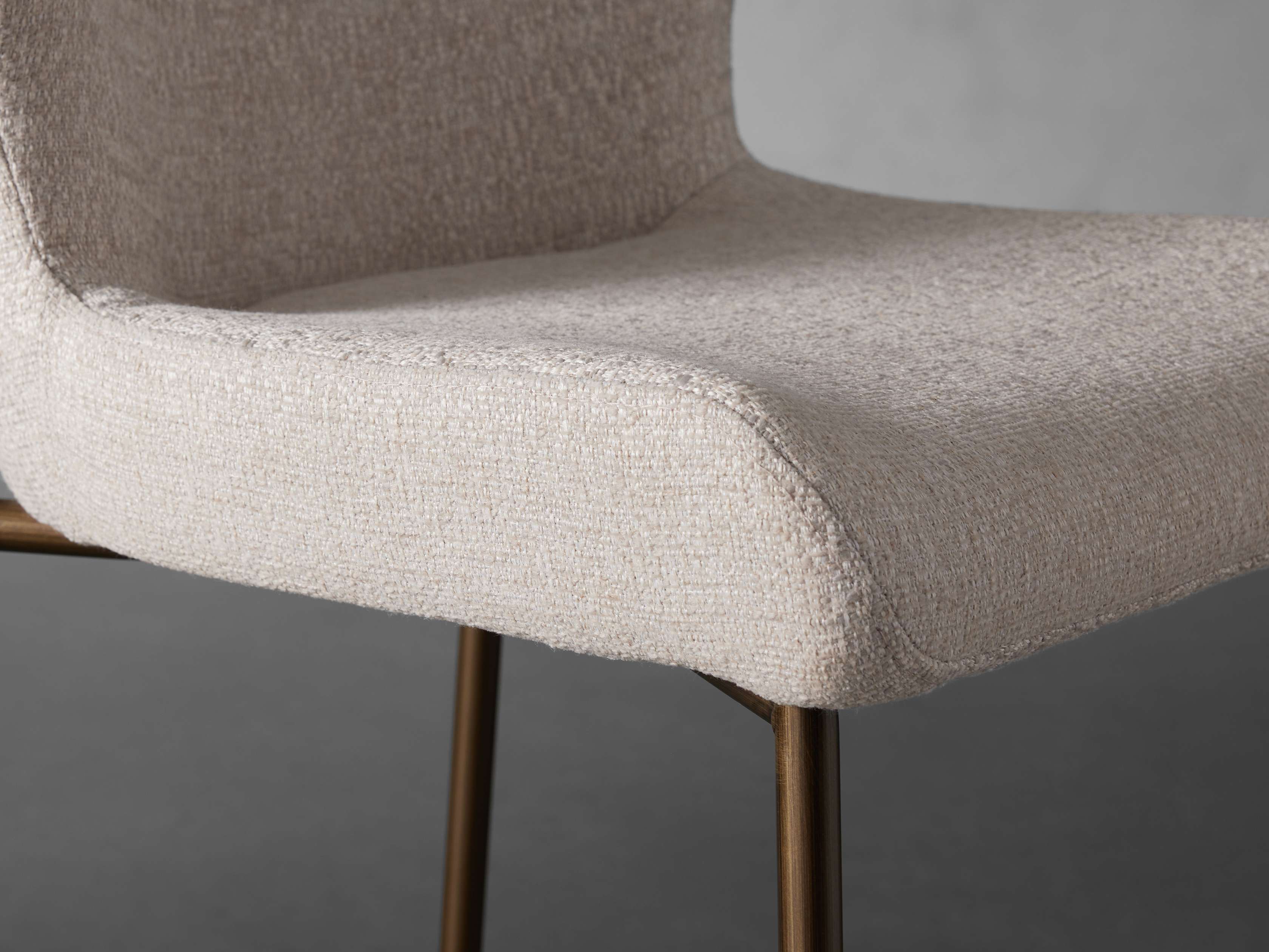 The sculpted silhouette of our Kirsten Dining Seating Collection embraces you with its elegant scoop seat and gently curved backrest. Generously upholstered in soft-yet-durable fabric, Kirsten’s minimalistic iron frame adds modern comfort to any kitchen or dining space.