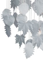 - Ceiling lamp with handmade white porcelain leaves that fall in cascade 0.60 meters on a fiber optic with subtle points of light.