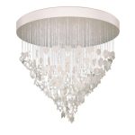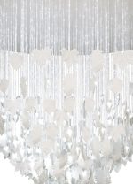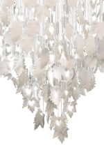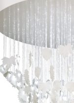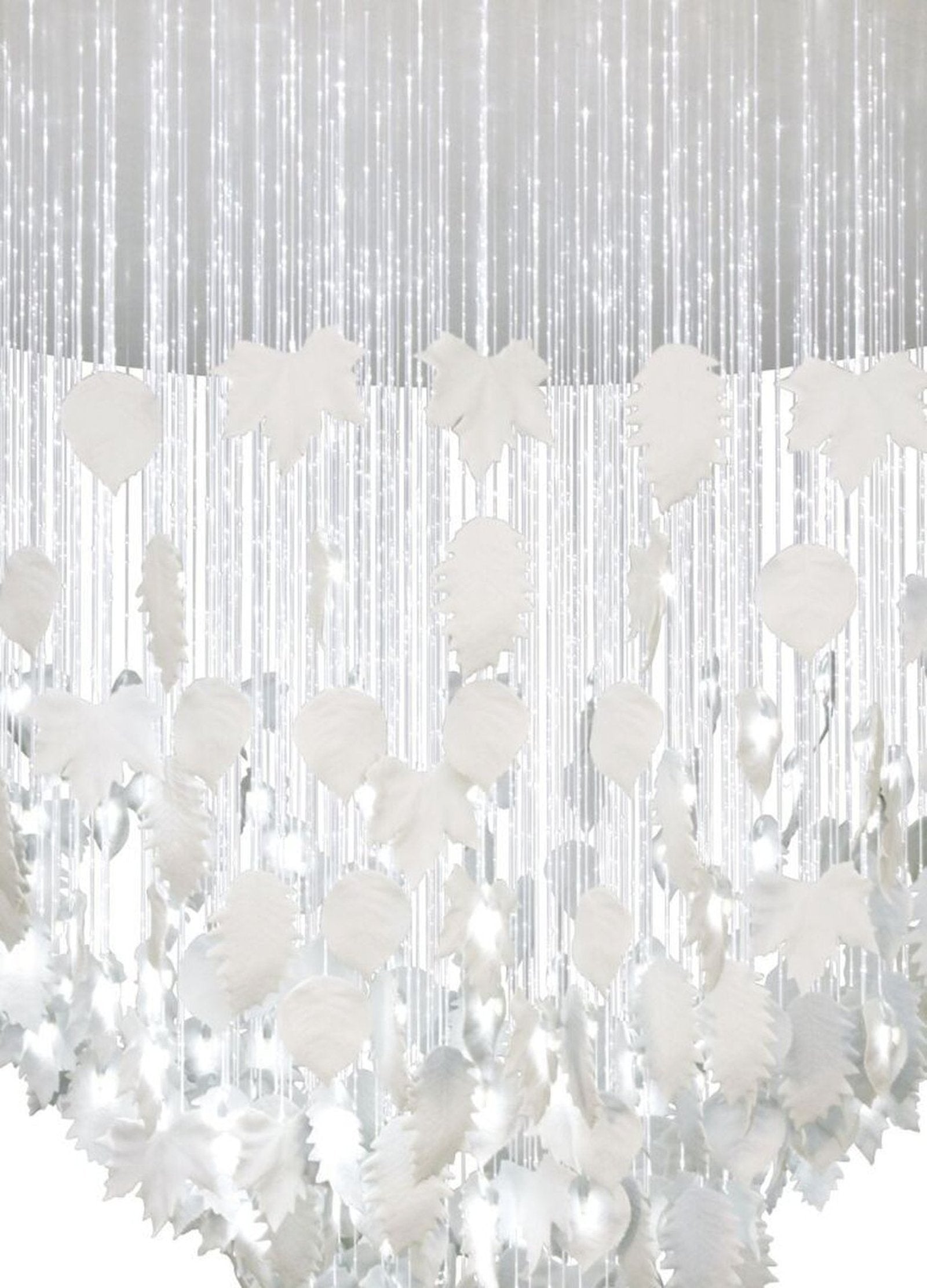 - Ceiling lamp with handmade white porcelain leaves cascading down 2 meters on an optical fiber with subtle points of light.