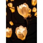 - The warm light that filters through the translucent porcelain of its petals generates an enveloping illumination.