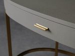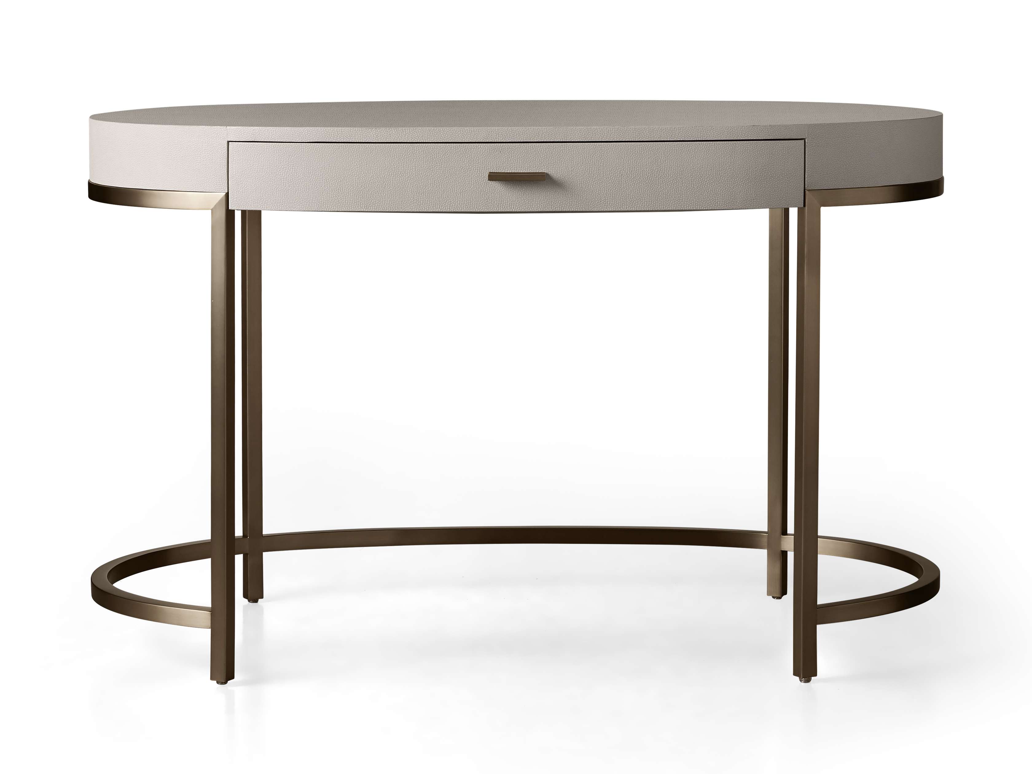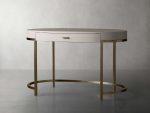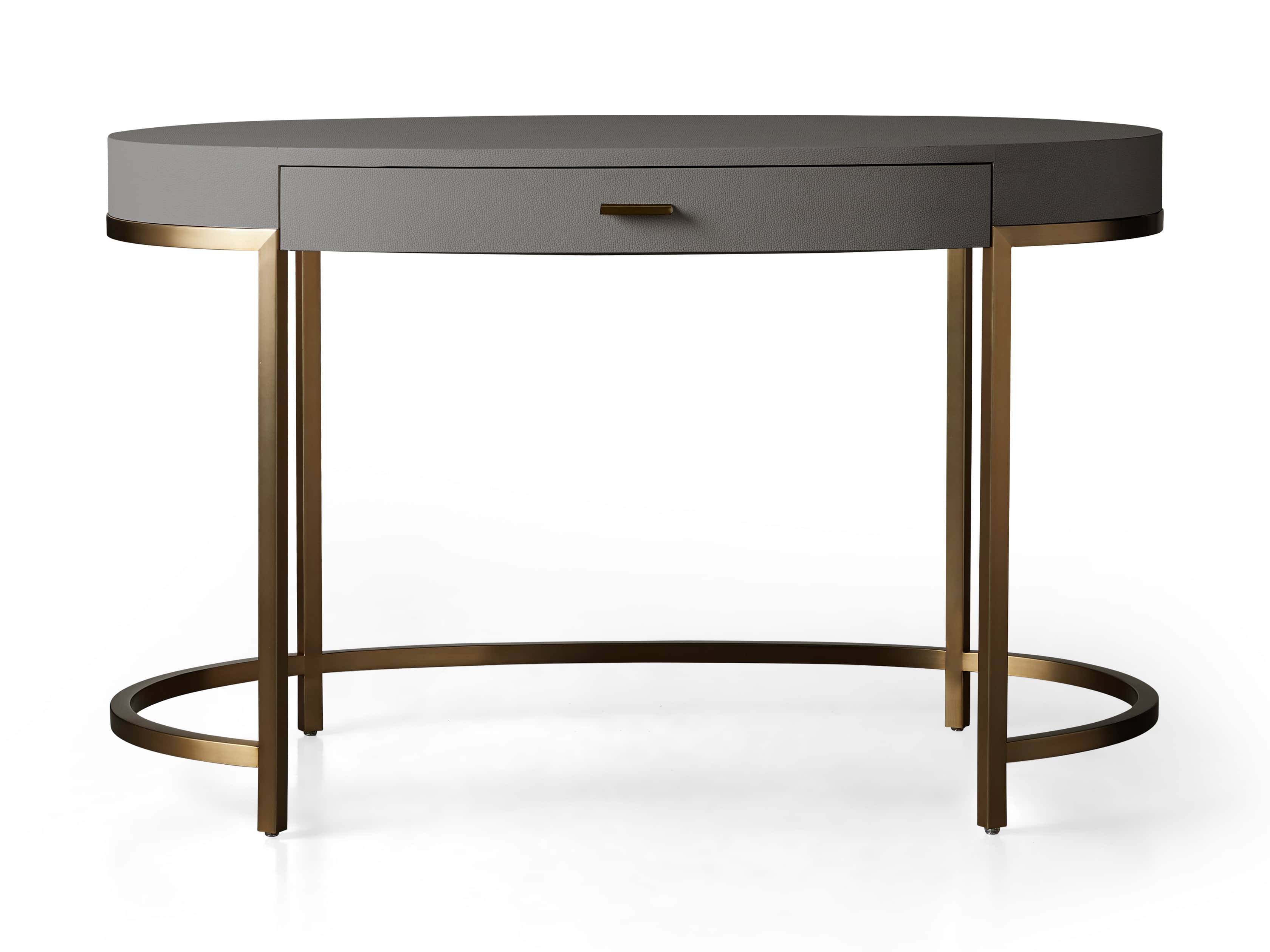 • Desk bases made from steel feature a warm brass finish.