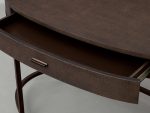• Desks finished in Dark Walnut feature craftsman-built frames made from solid parawood surfaced with walnut wood veneers.