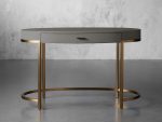 Featuring a sleek aesthetic, our Malone Collection is artisan-crafted from solid parawood or oak wood—depending on your preferred finish—and surfaced with walnut or elm wood veneers. Insets made from reconstituted leather embossed with a shagreen pattern are complemented by hand-applied finishes to give this collection a modern look with intriguing textural details. Channel-set designs, low-profile silhouettes, and warm brass or pewter accents will elevate your home office to a new level of refinement.