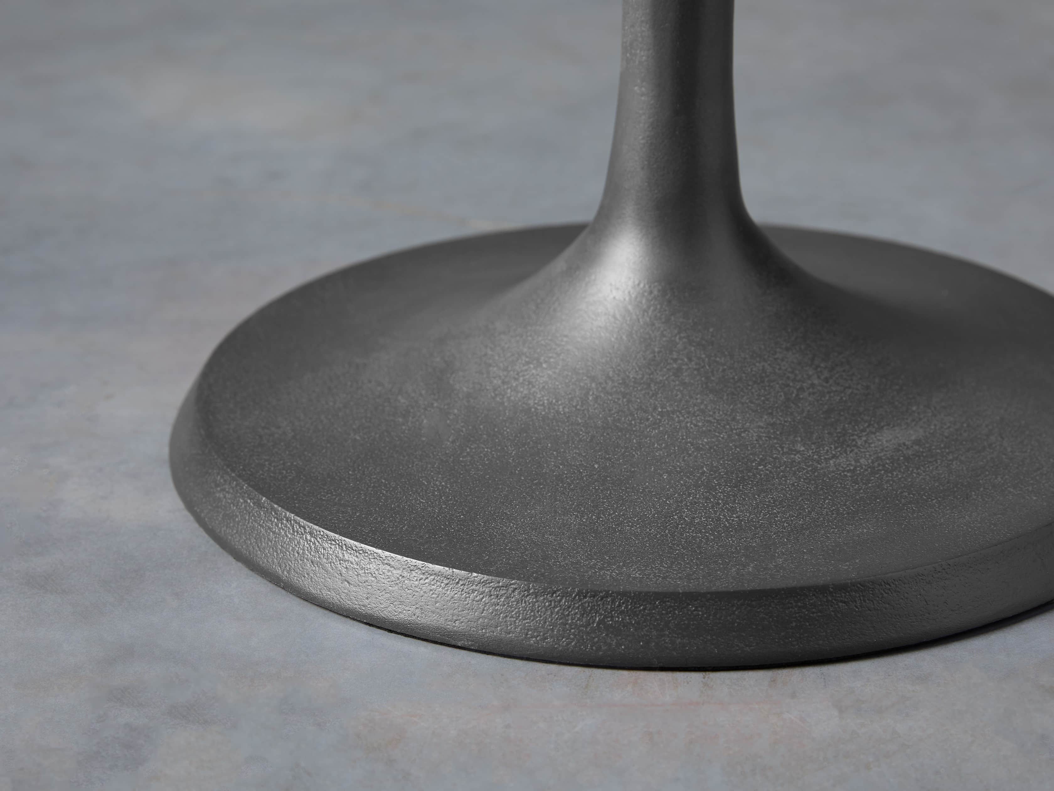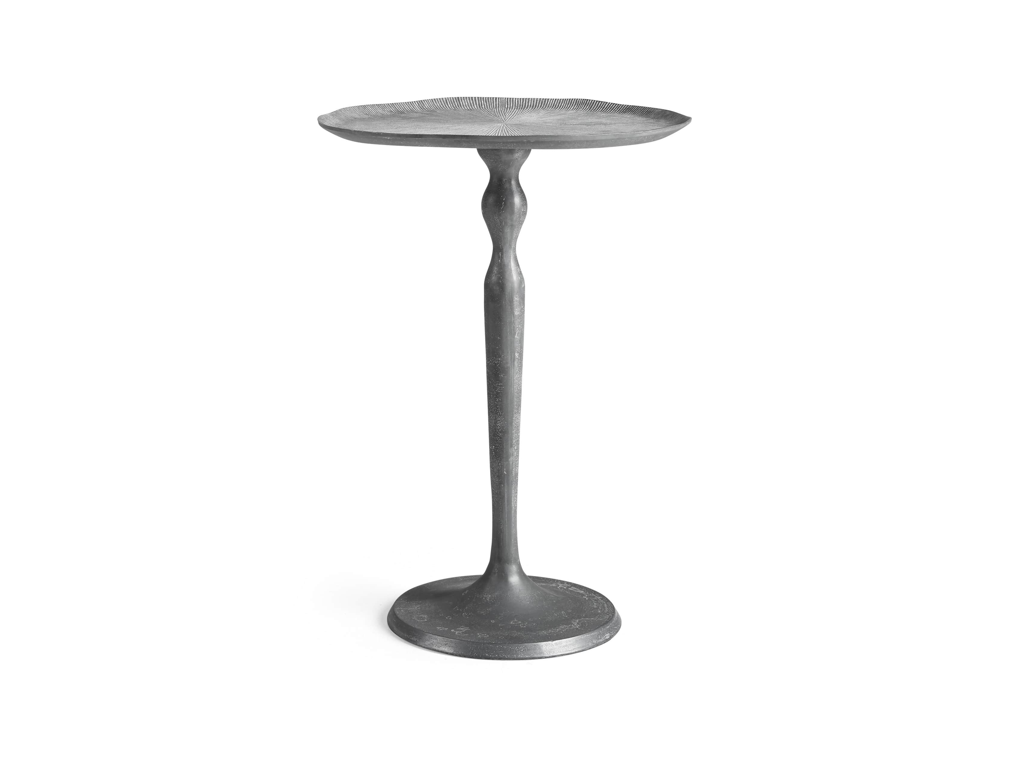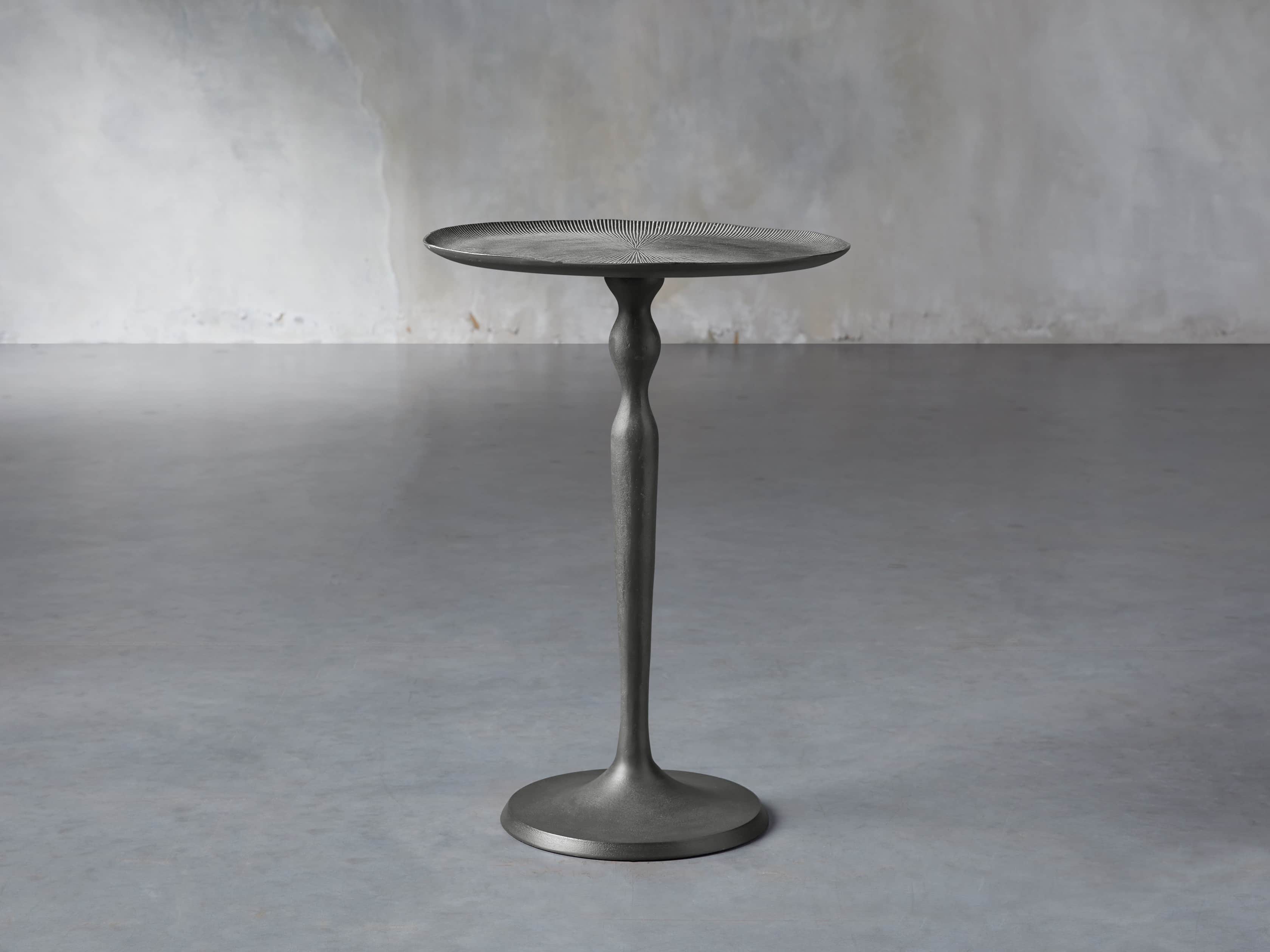 Masterfully crafted metals – A chic, flexible design that easily complements a wide variety of décor styles, our Manhattan side table is artfully crafted by Indian artisans. Cast from aluminum and plated in zinc, each table features a textured top that’s further accentuated by a white-wash finish. Table bases’ smoother surfaces result in darker finishes, complementing the lighter tops with contrasting tones.