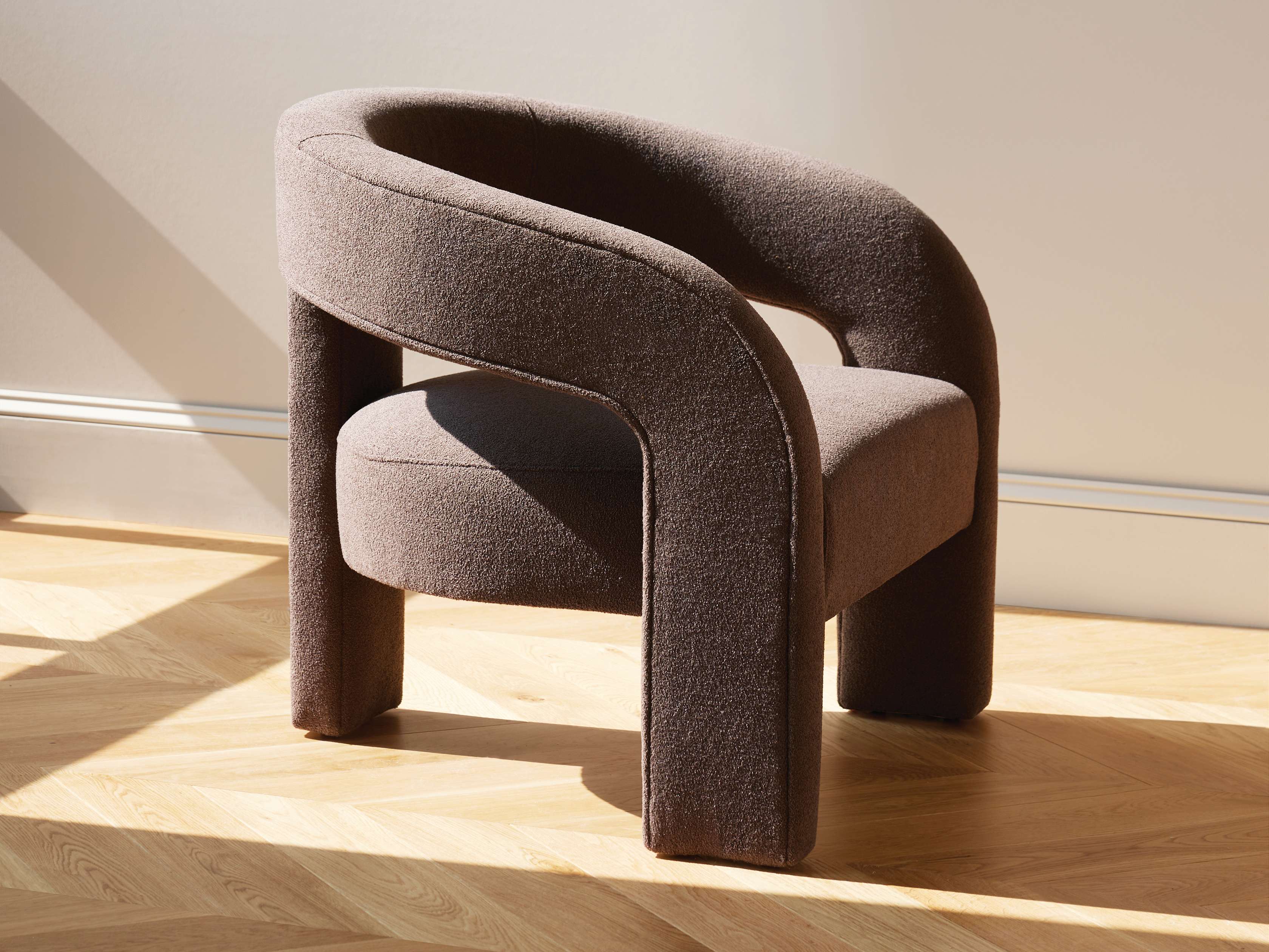 Create a dynamic statement in any living space with our Mara Lounge Chair, boasting a gently curved silhouette with your choice of closed-barrel style or side cutouts for an open and airy feel. Mara’s clean-lined design is fully wrapped in luxurious upholstery and an eye-catching floating seat complete its sculptural modern glamour.