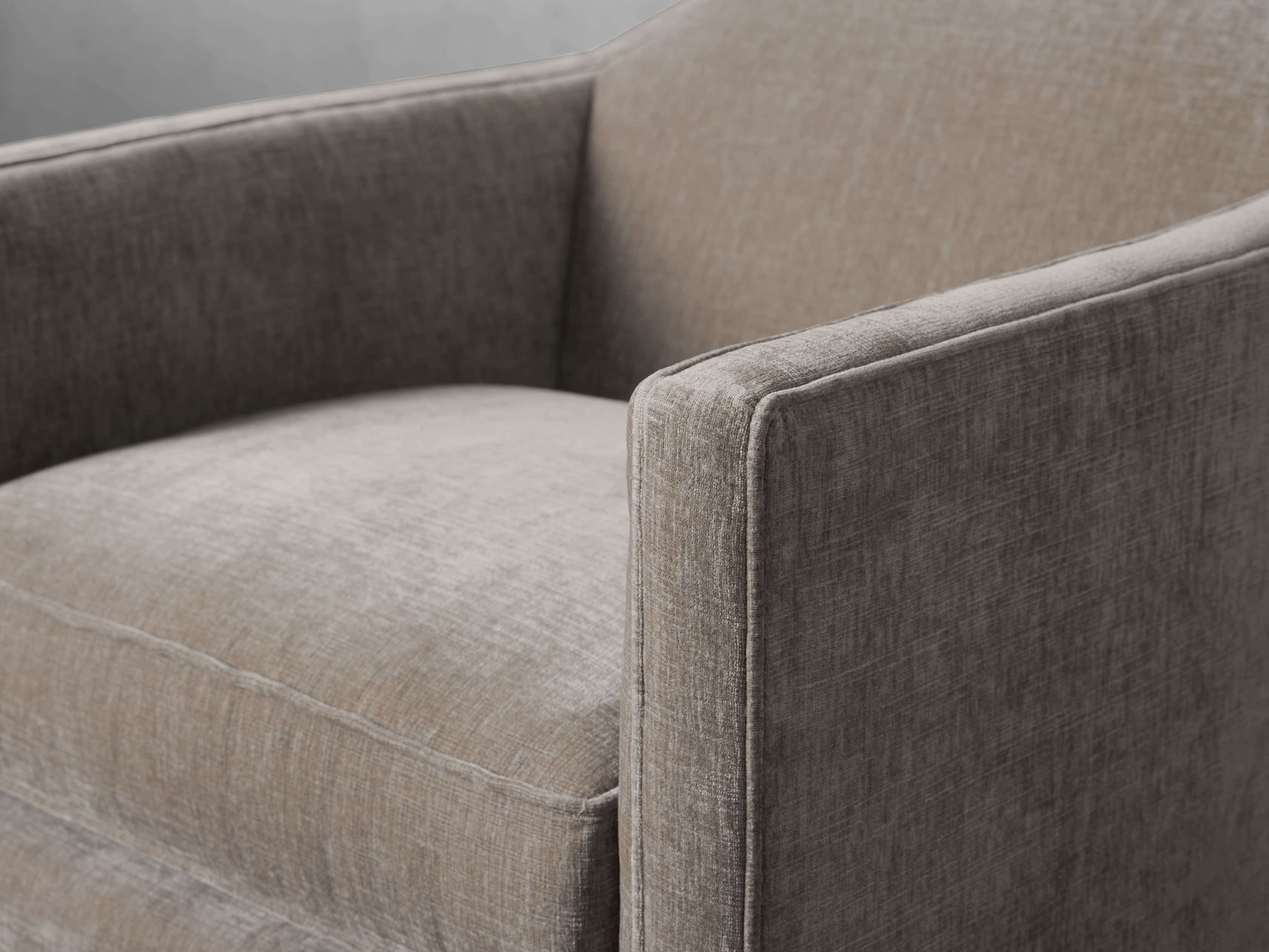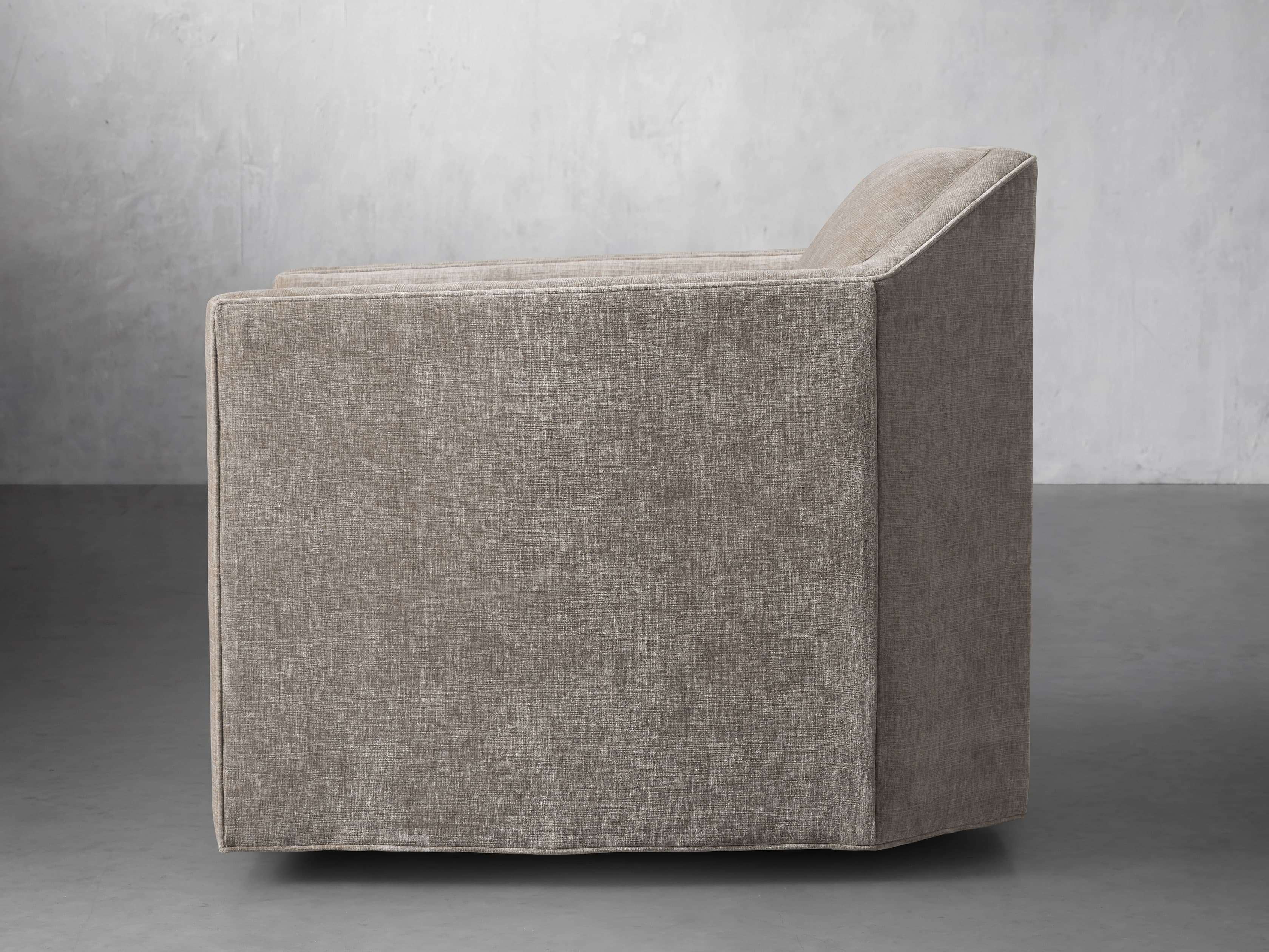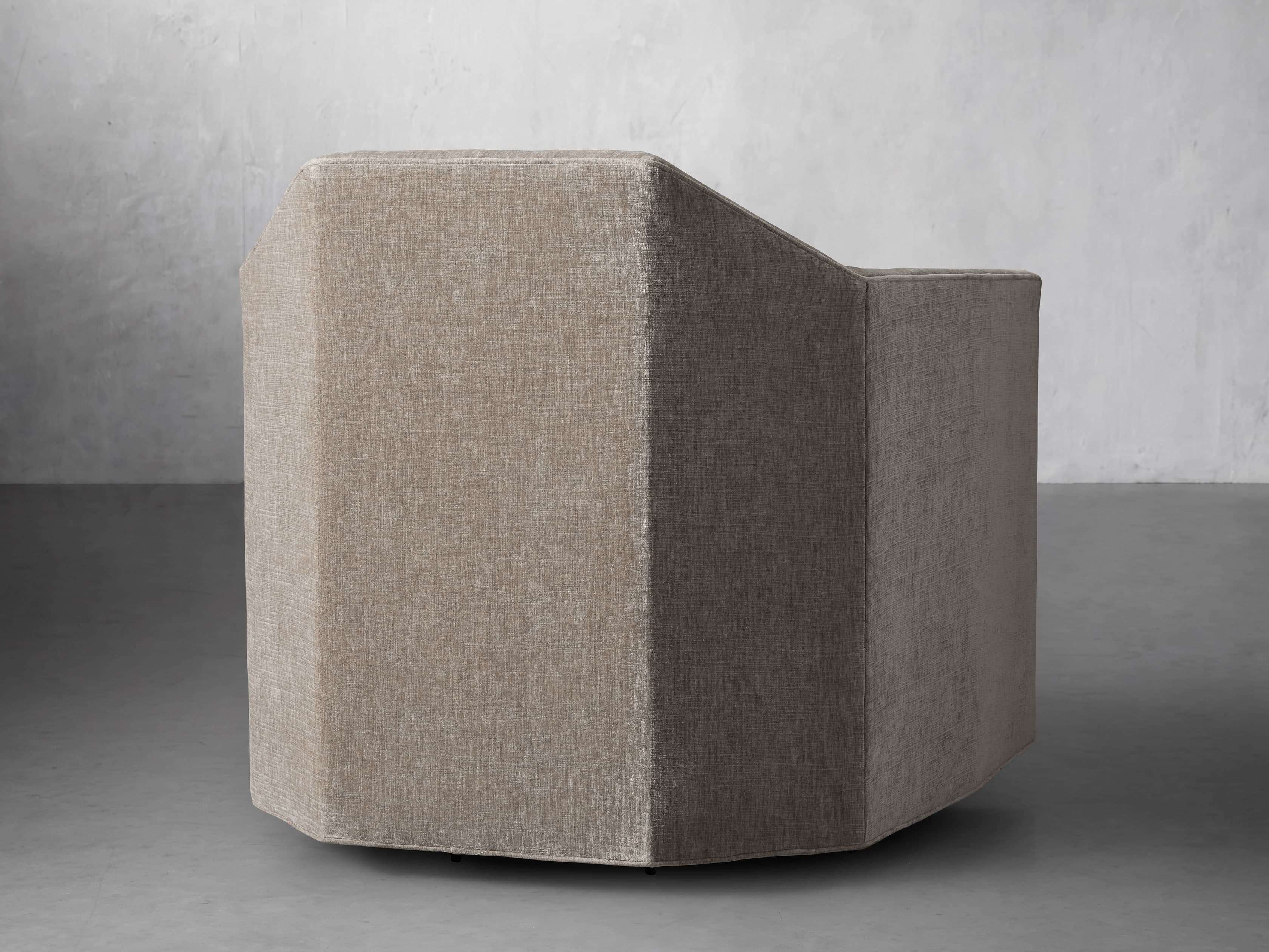 Sensationally slanted, our Marina Swivel Chair feels right at home when juxtaposed with linear silhouettes of other modern furnishings. Craftsman-built by artisans, this sofa boasts exaggerated angles while being comfortably upholstered in soft fabric. Featuring low backs and sloped arms, Marina elevates any living space.