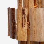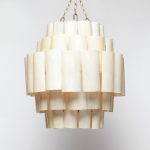 • Handmade chandeliers made of banana bark layers coated in resin.