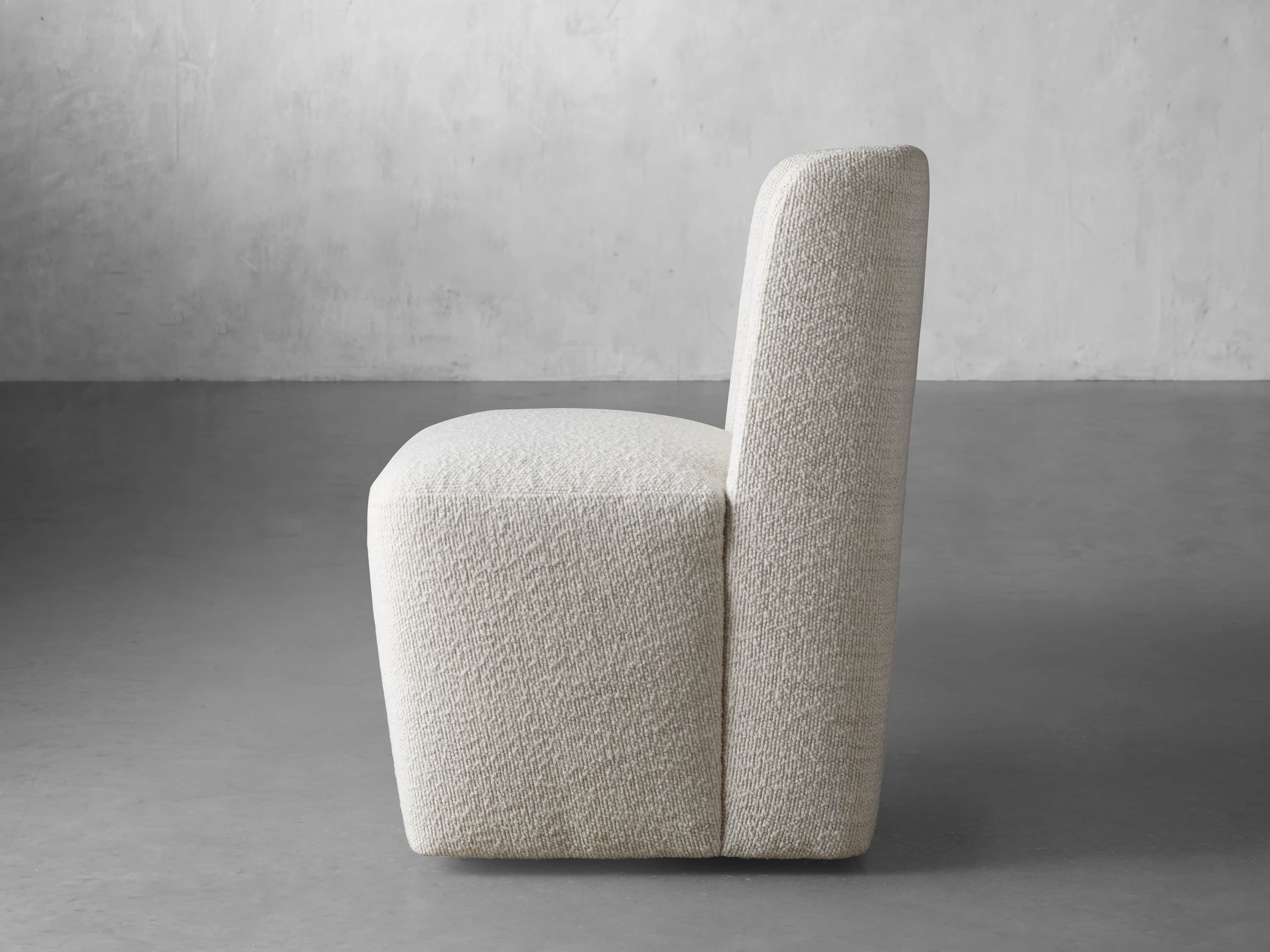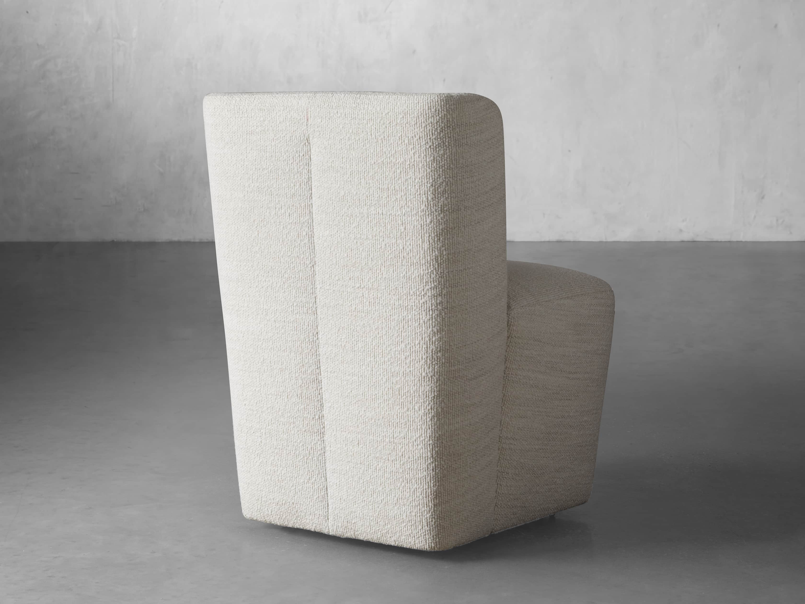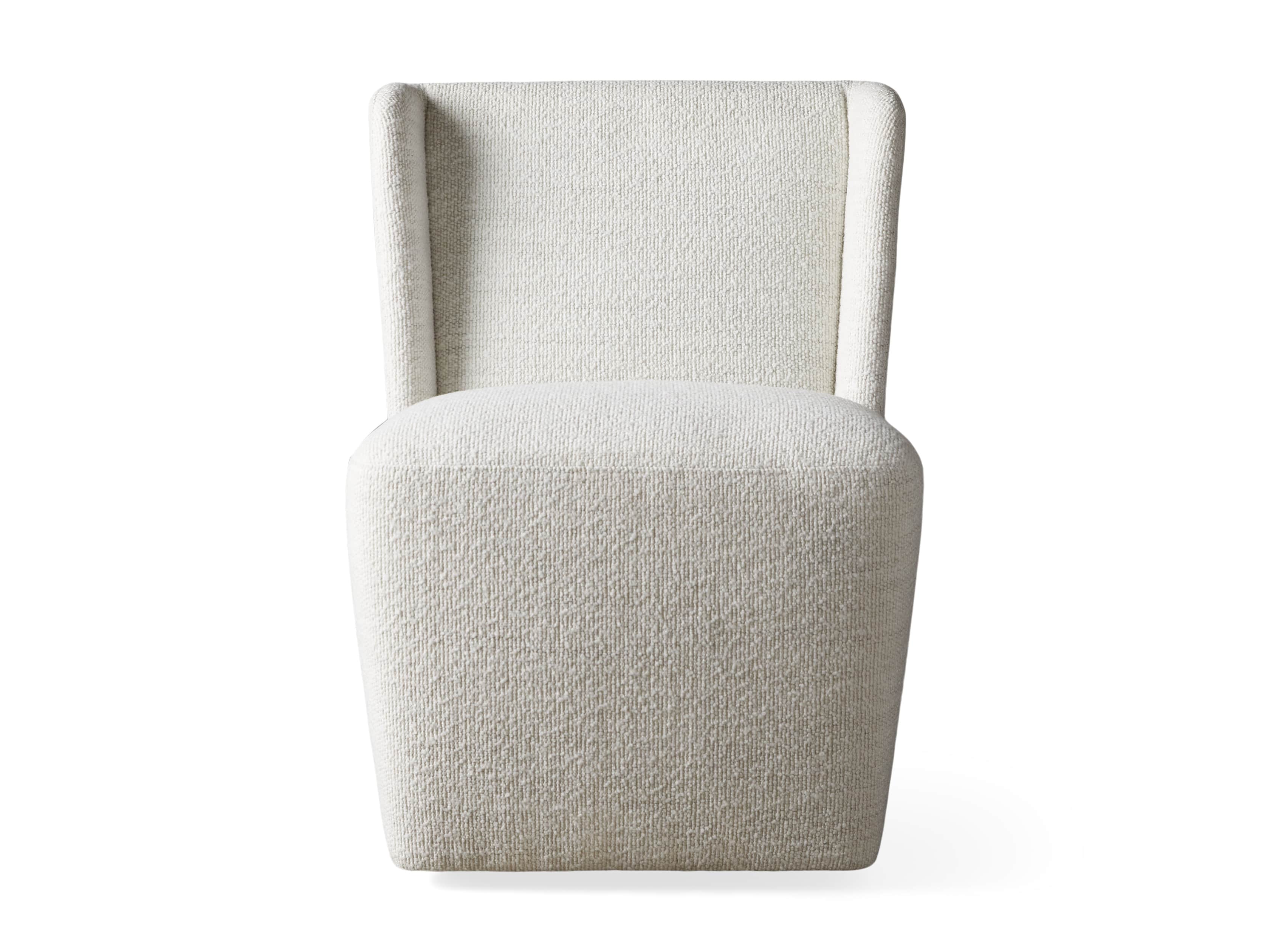 The shelter silhouette of our Mila Dining Chair is where modern aesthetics meet classic style. Featuring gentle, welcoming curves and caster wheels for easy arranging, Mila is upholstered in soft, textured performance fabric to withstand the spills and stains of everyday living, or supple faux leather for elevated style.