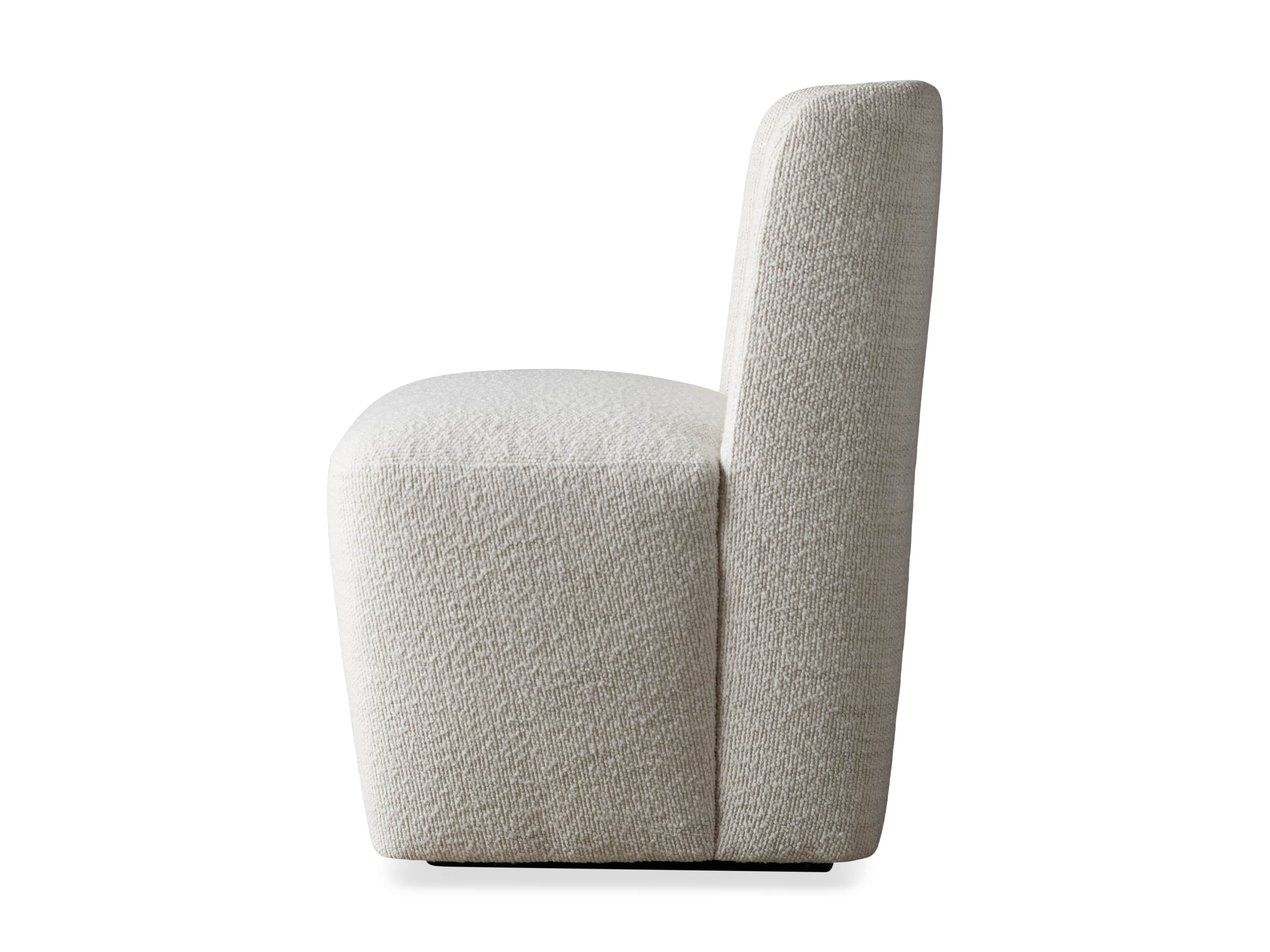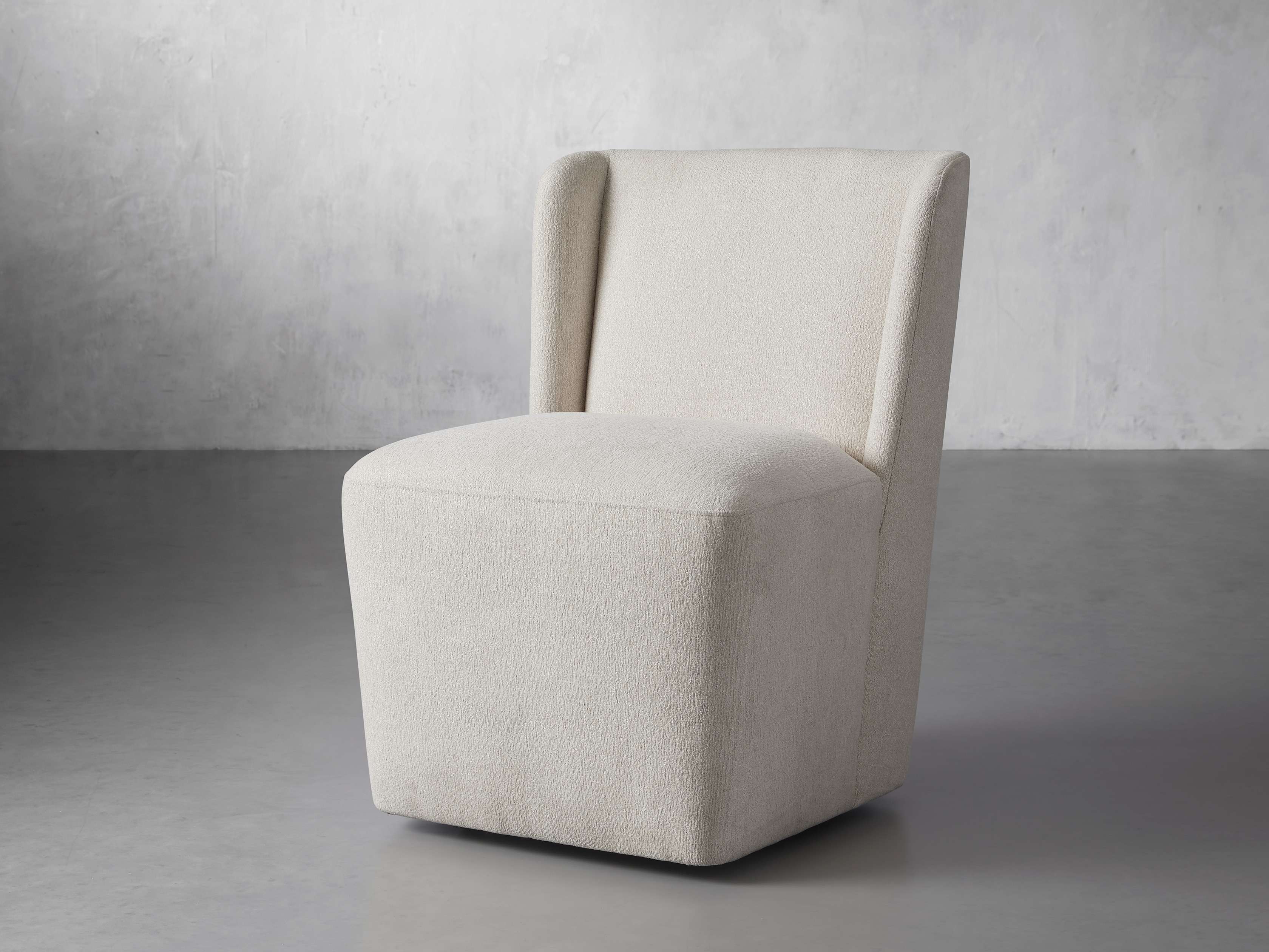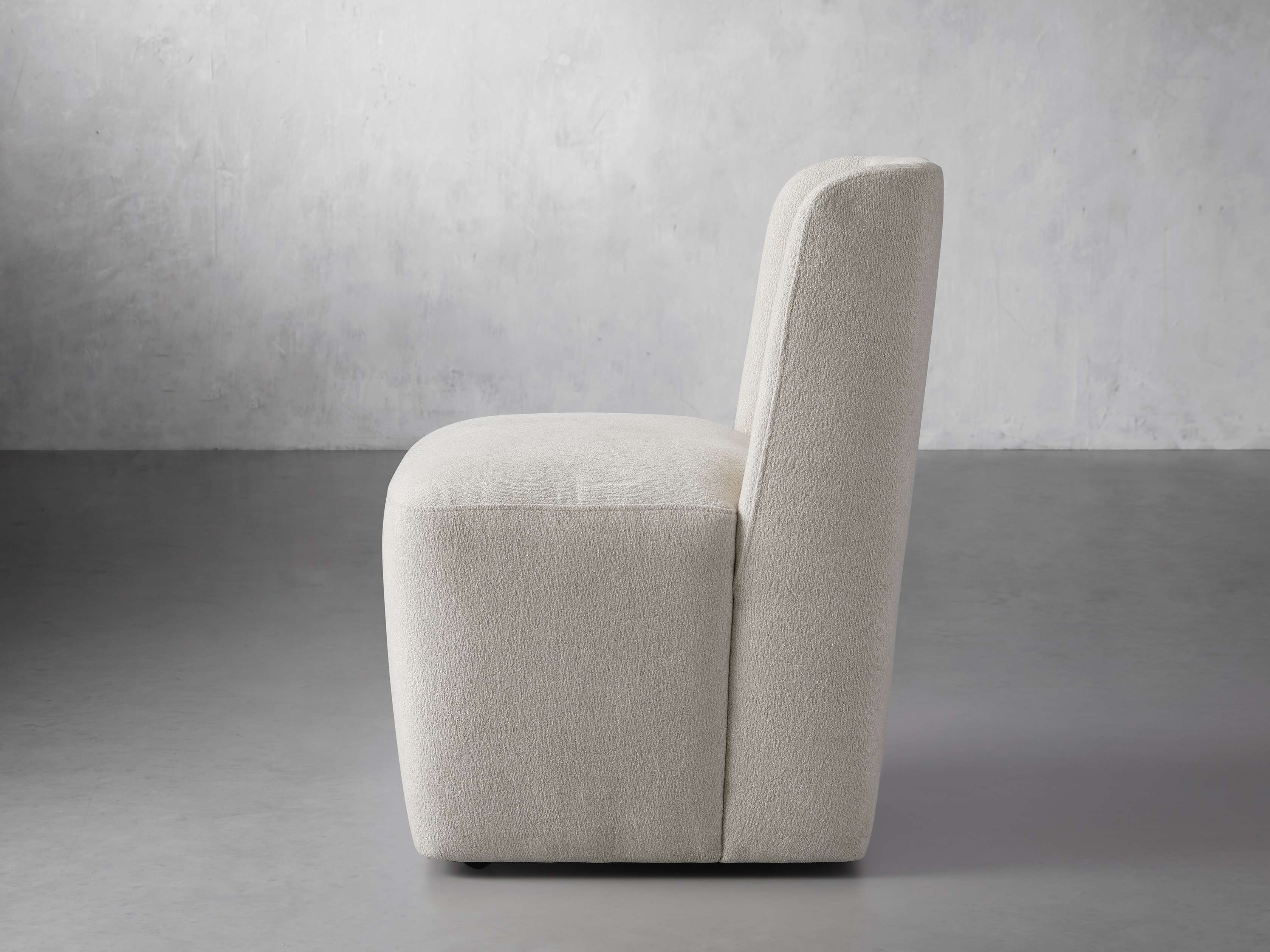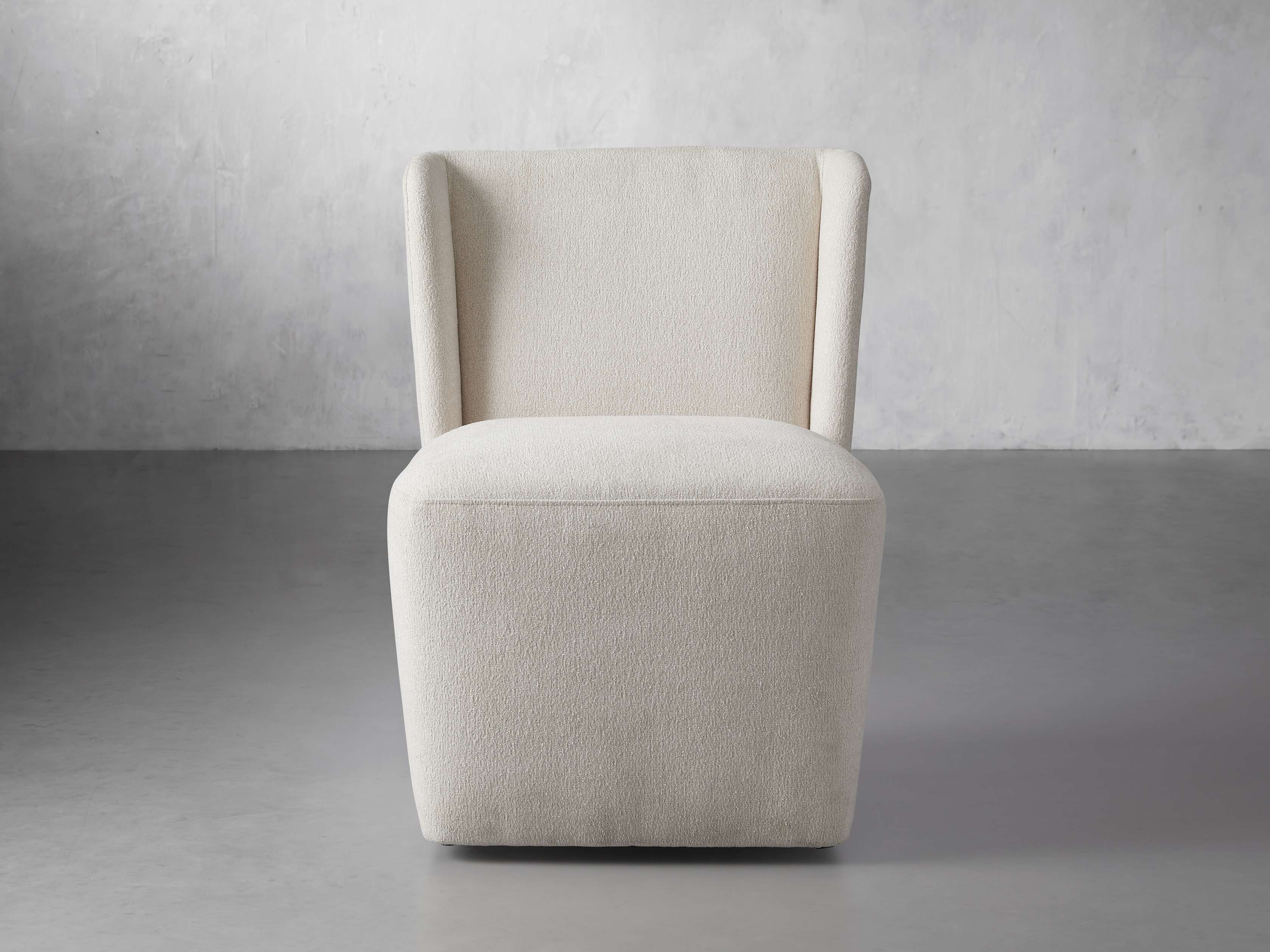 The shelter silhouette of our Mila Dining Chair is where modern aesthetics meet classic style. Featuring gentle, welcoming curves and caster wheels for easy arranging, Mila is upholstered in soft, textured performance fabric to withstand the spills and stains of everyday living, or supple faux leather for elevated style.