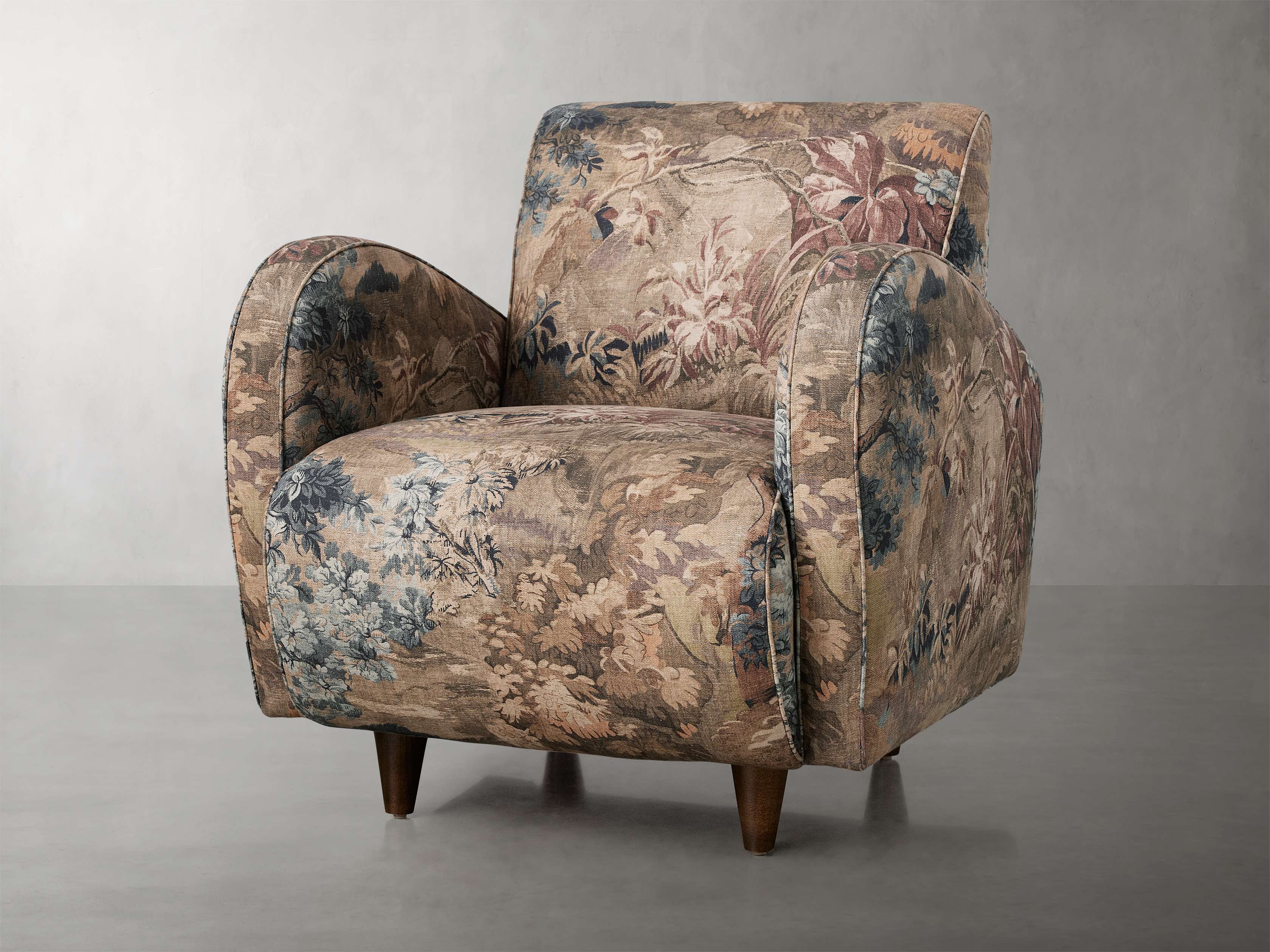 Our Myrtle Collection blends inspiration from art deco design with mid-century character—featuring statement-making upholstery over generously sized frames that cradle you in comfort atop chic tapered exposed wood legs. Myrtle’s gently curved armrests and supportive backrests are accented with welt details, adding a sophisticated tailored touch to the expertly crafted upholstery.