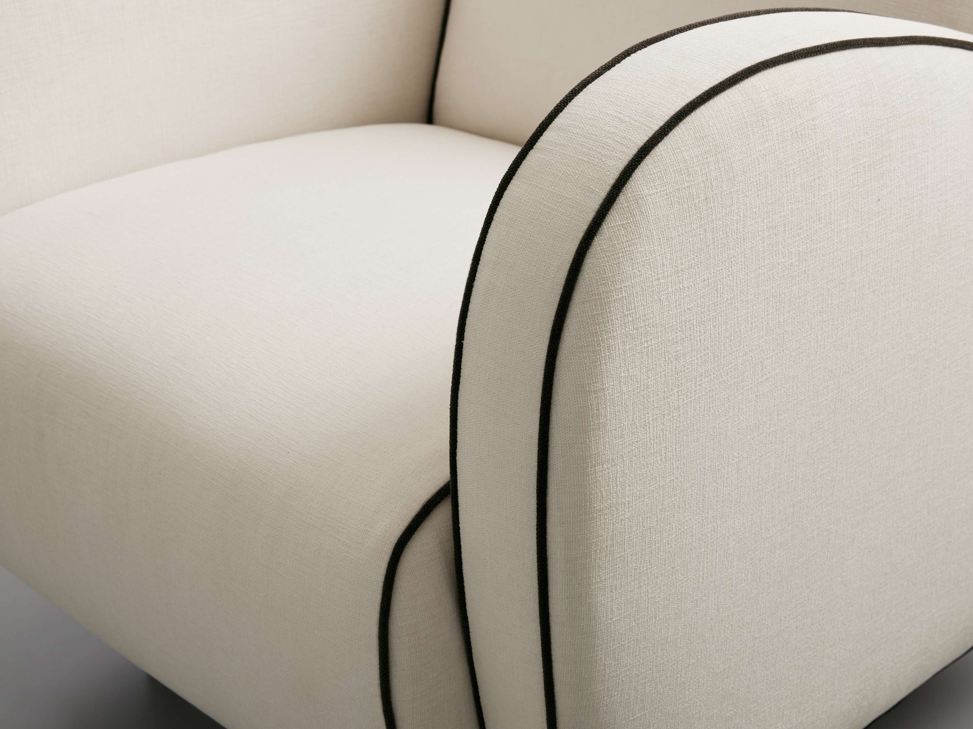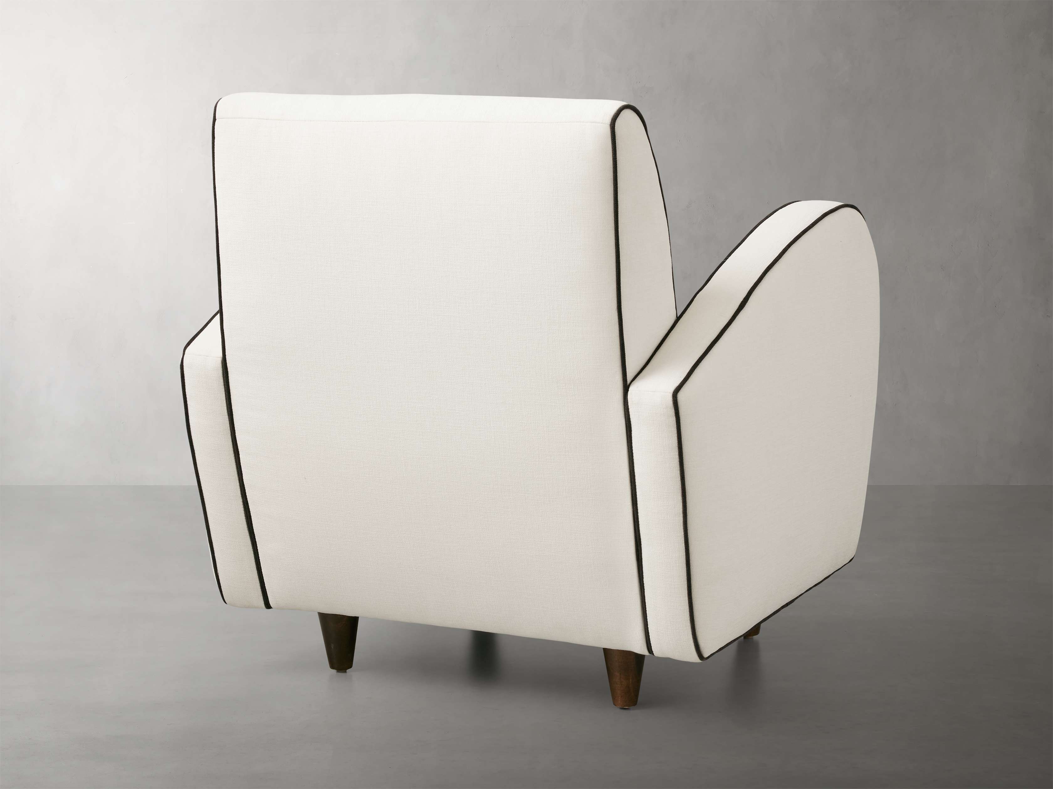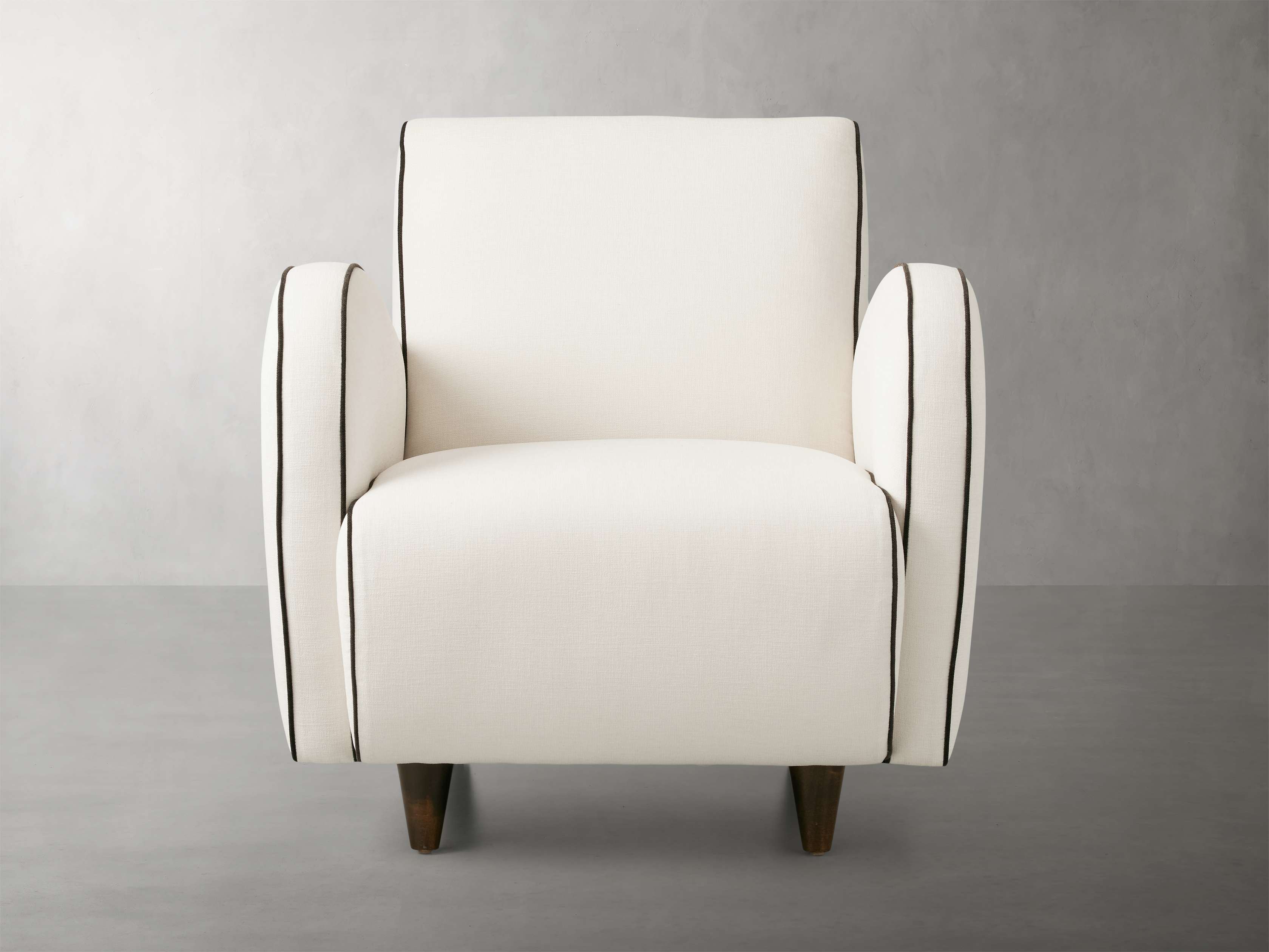 • Avery Cashmere fabric upholstery features contrasting Avery Mink welt detail.
