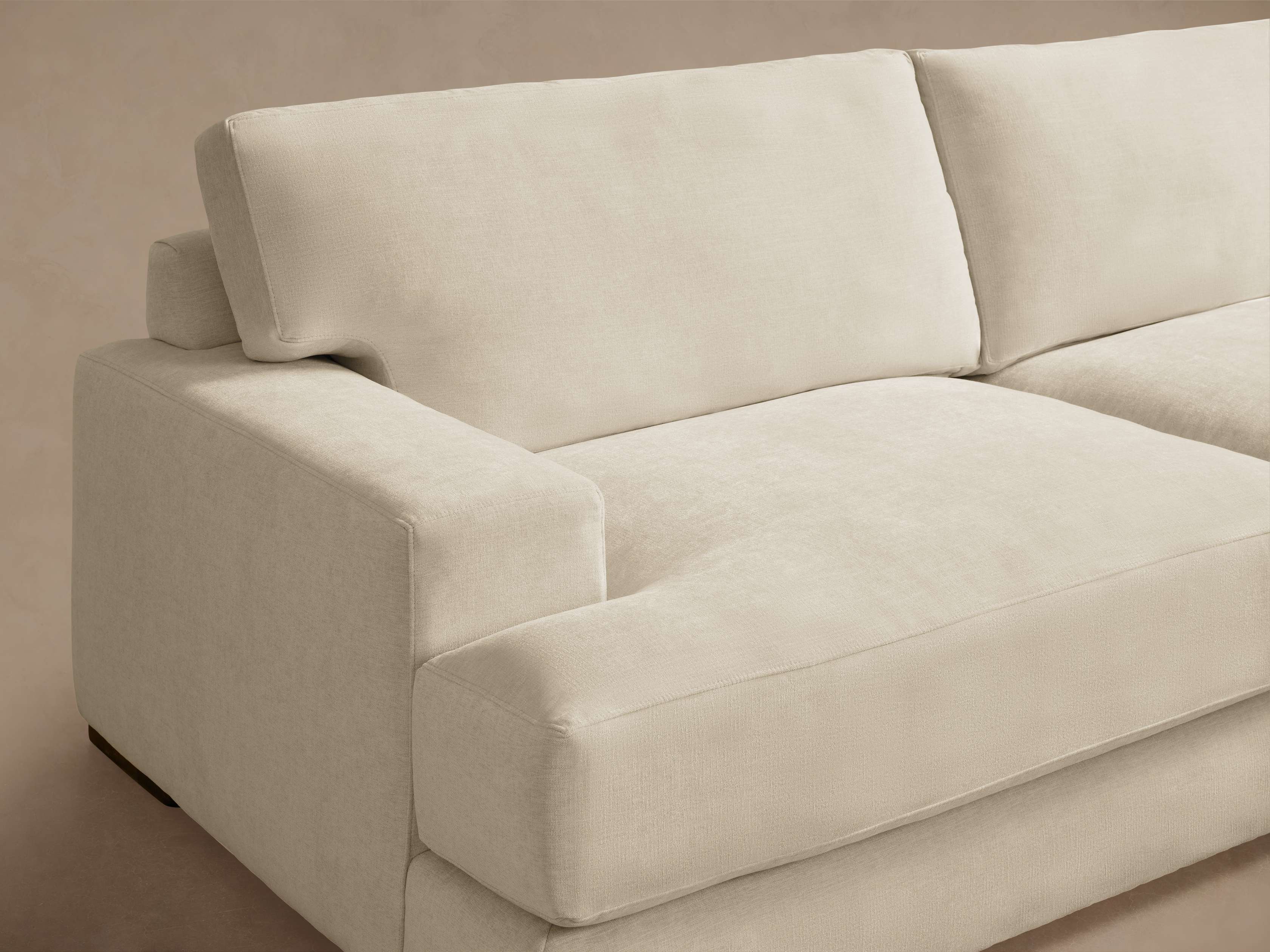 - Seat cushions contain dense foam made from partially plant-based material, padded with a blend of sterilized down and feathers.