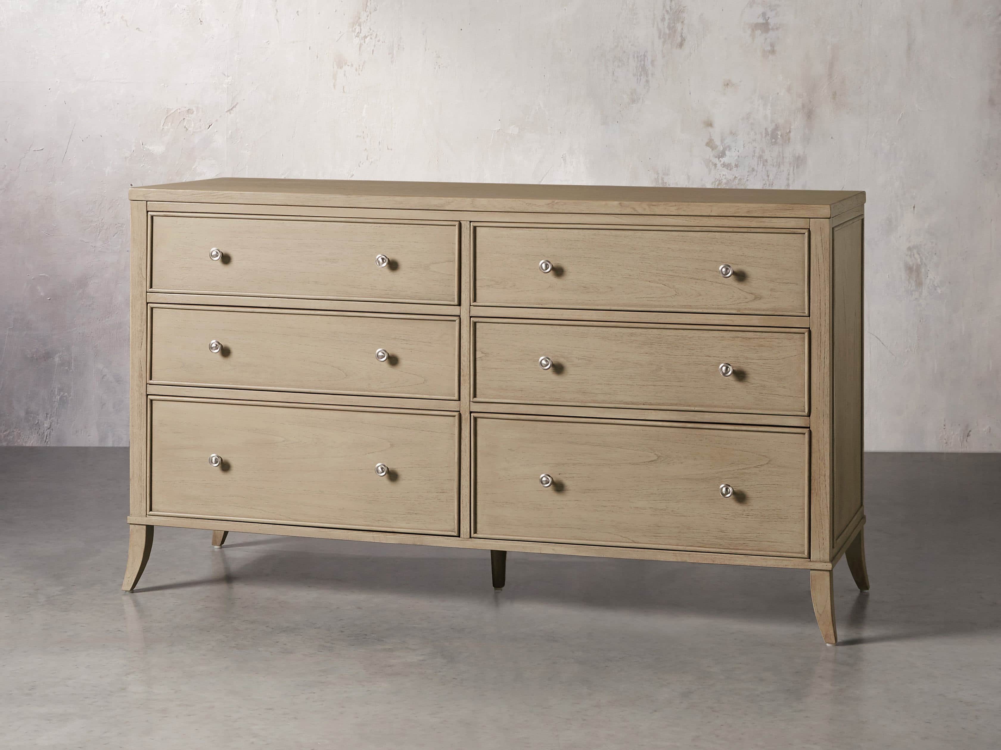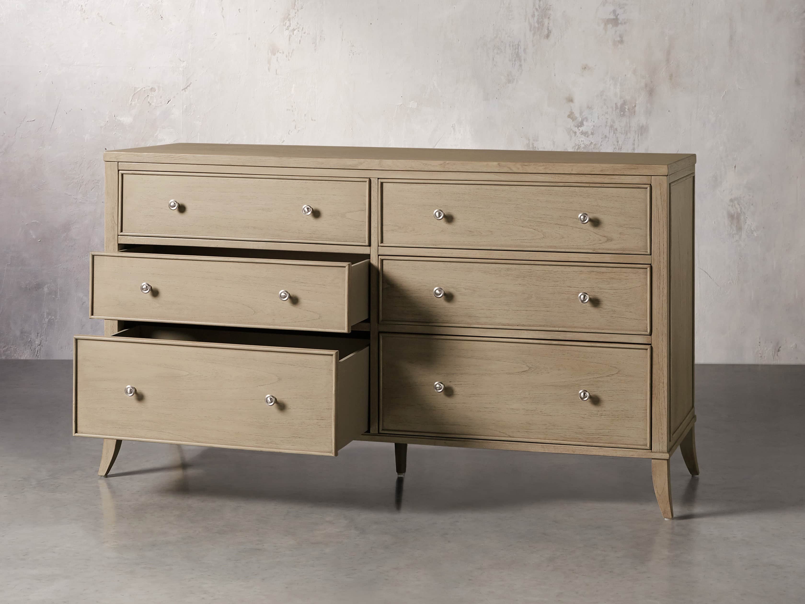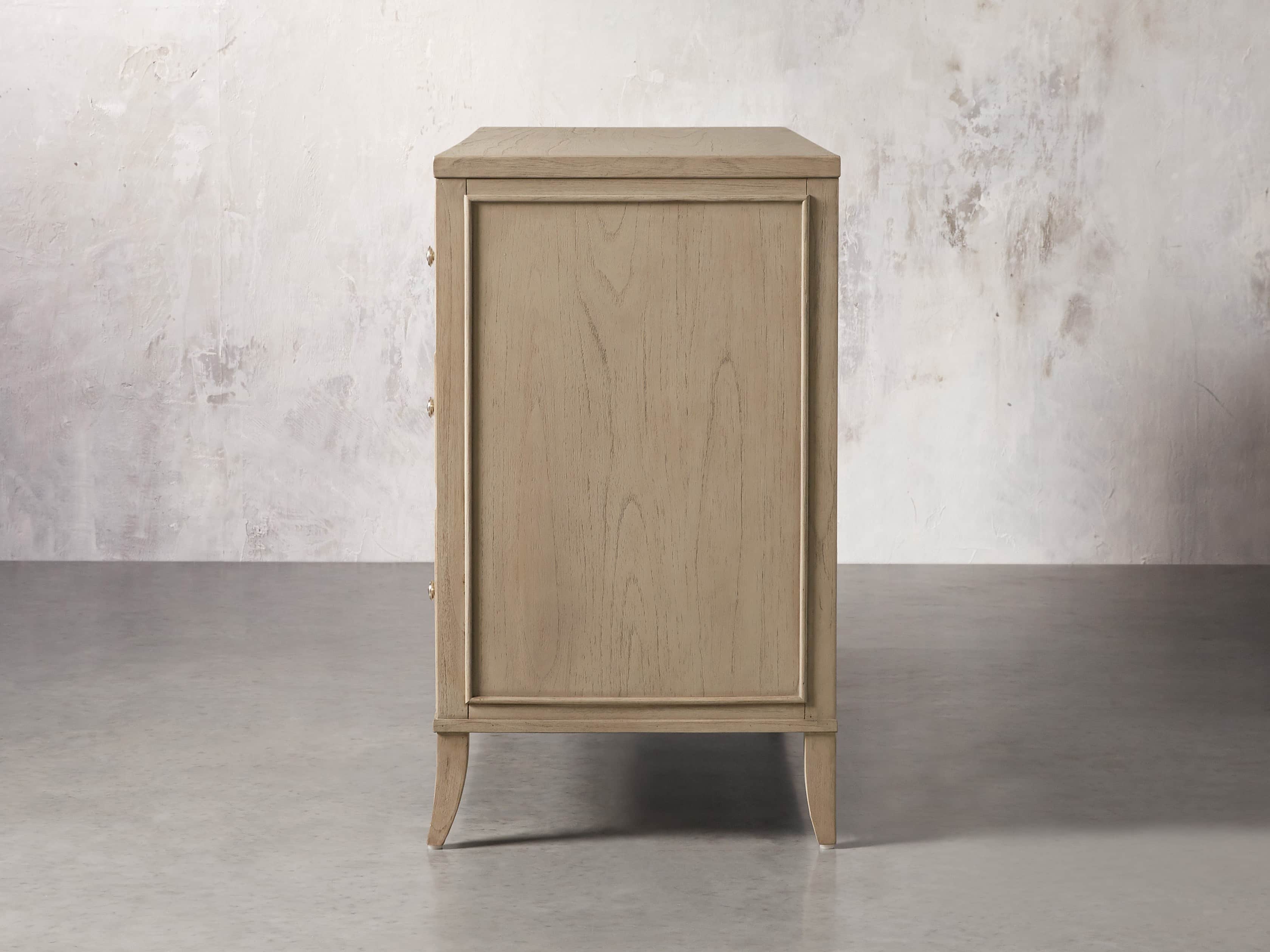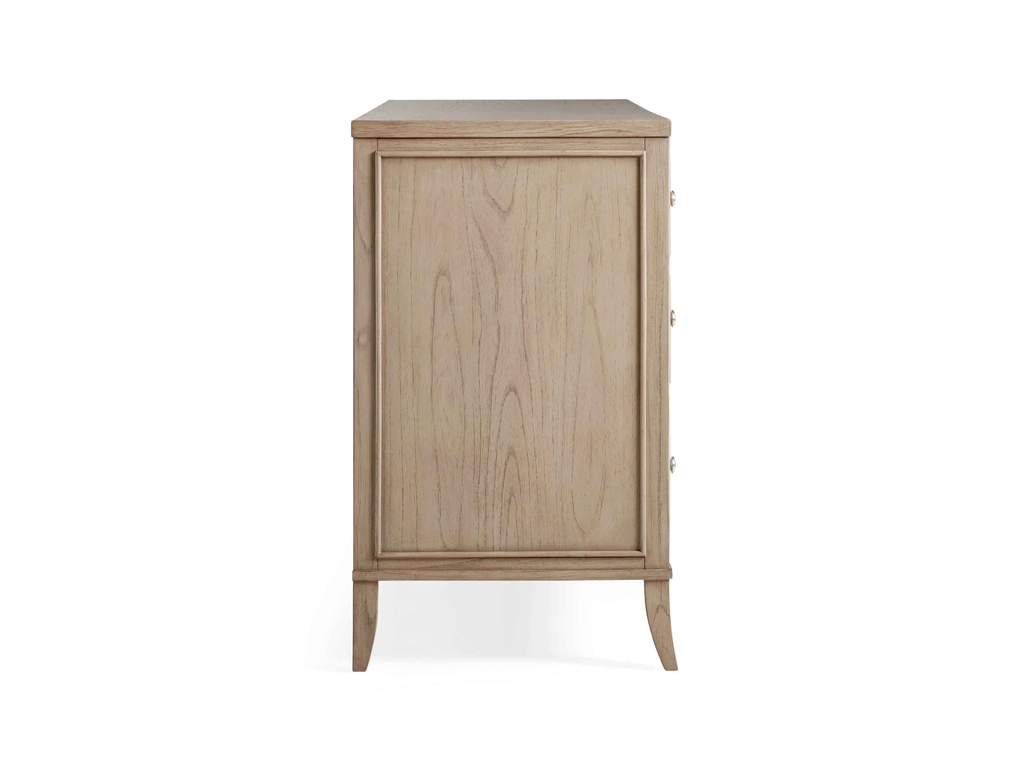 - Drawer fronts are decorated with hand-carved, curved molding, while drawer interiors are lined with beech wood veneers.