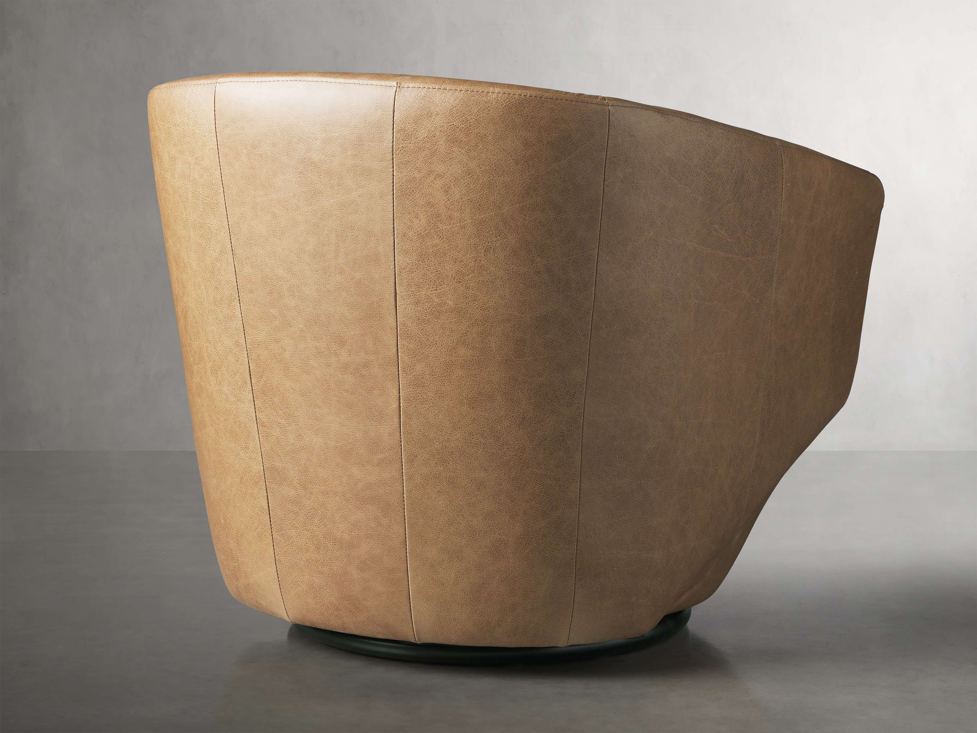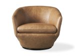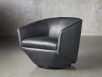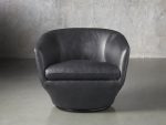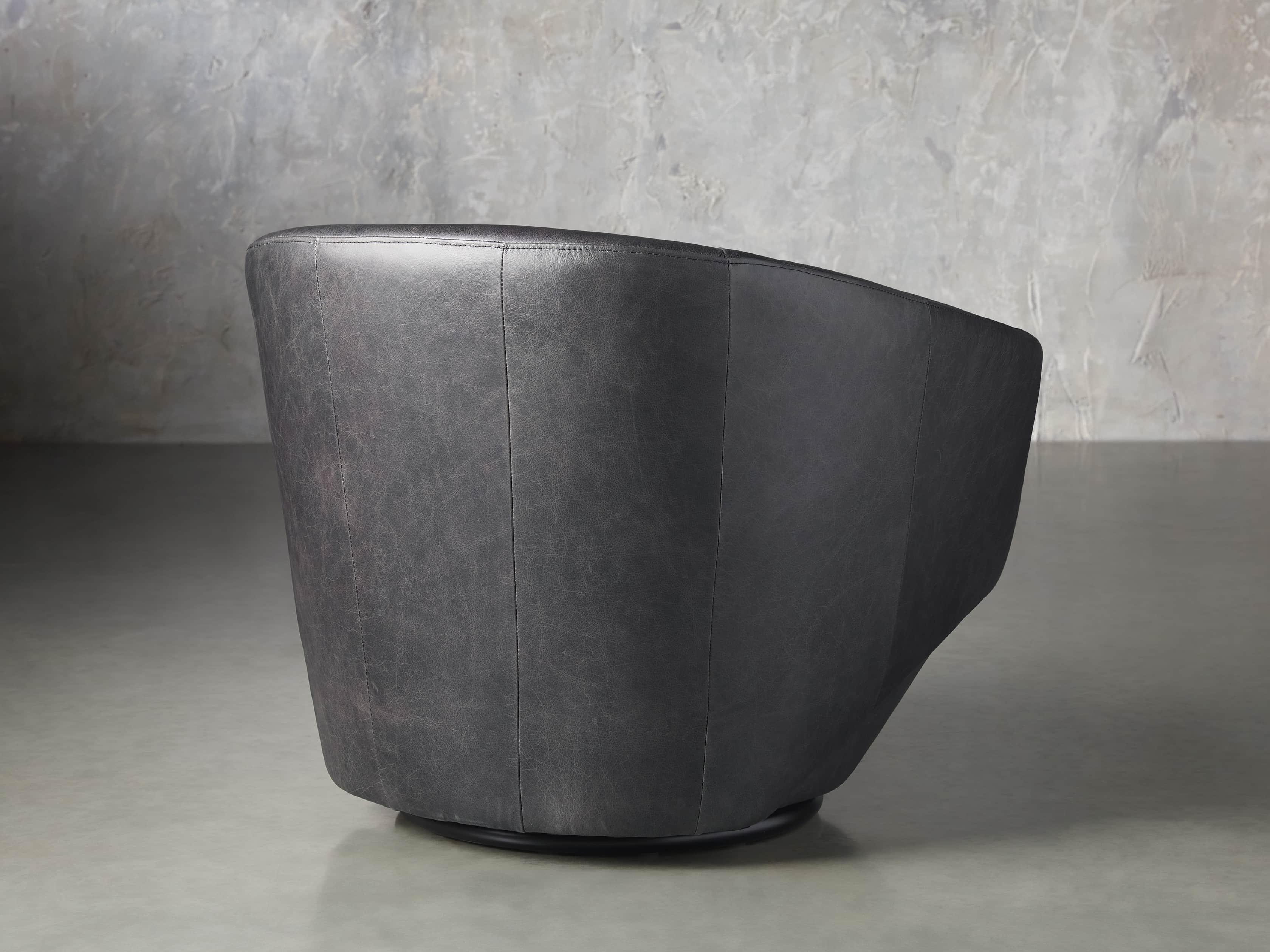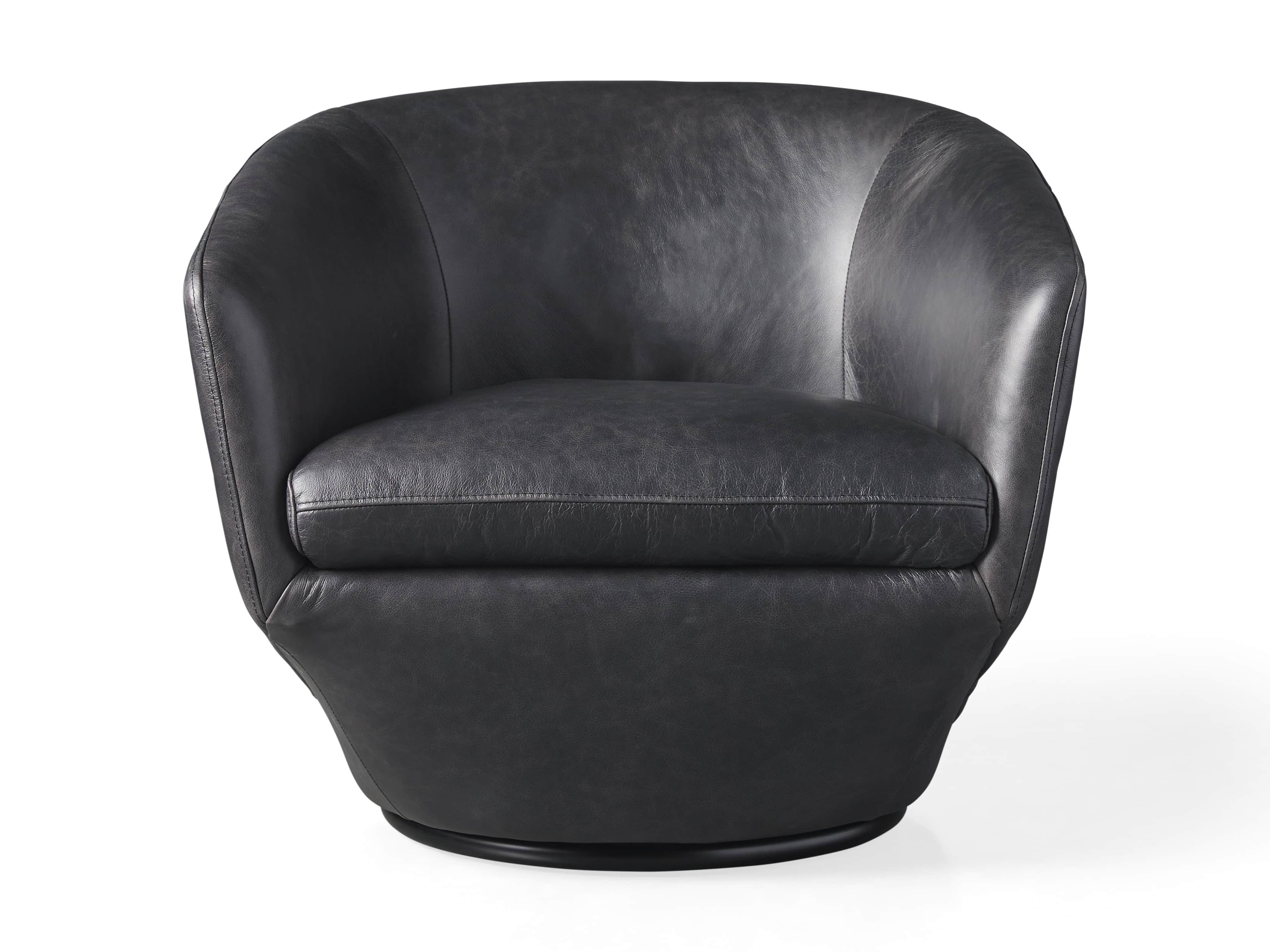 Sleek and uniquely shaped, our Pelton swivel chair is designed to accentuate your living room with contemporary, midcentury-inspired styling and incredible comfort. Generously padded upholstery is expertly covered in beautiful fabric or rich leather to easily complement any aesthetic.