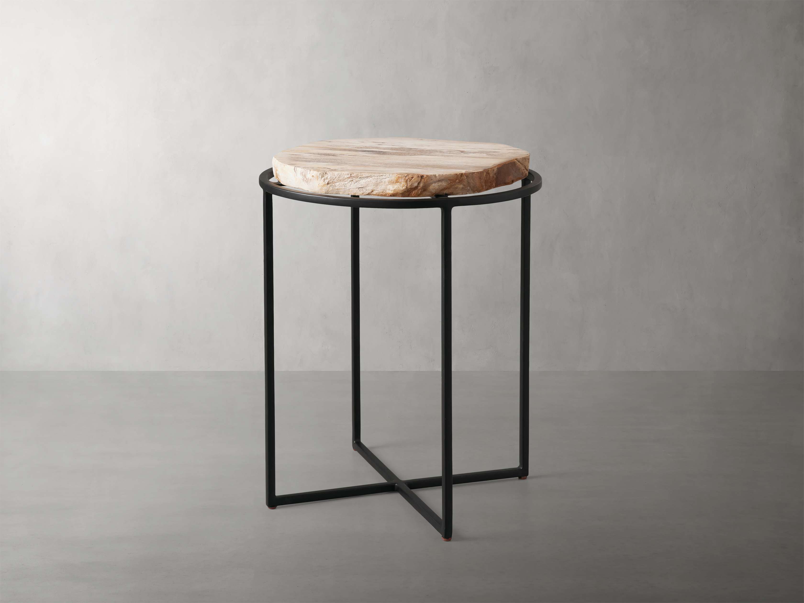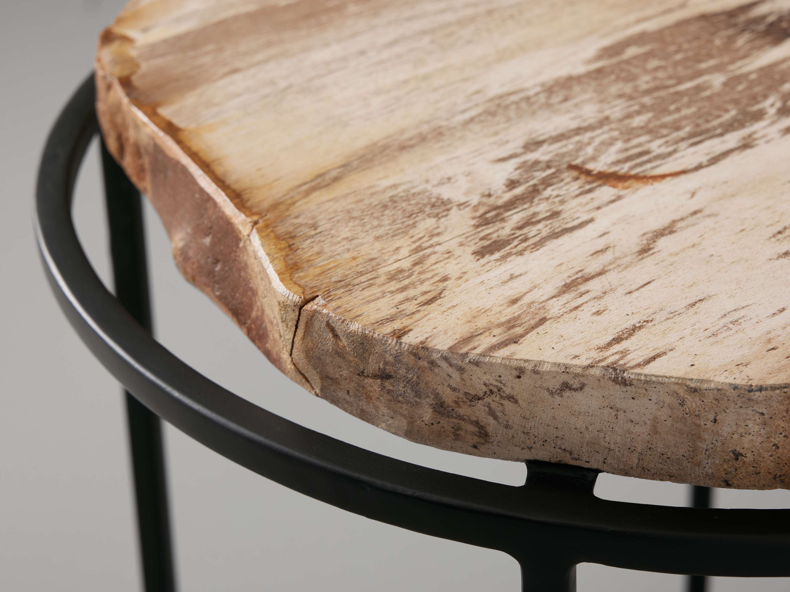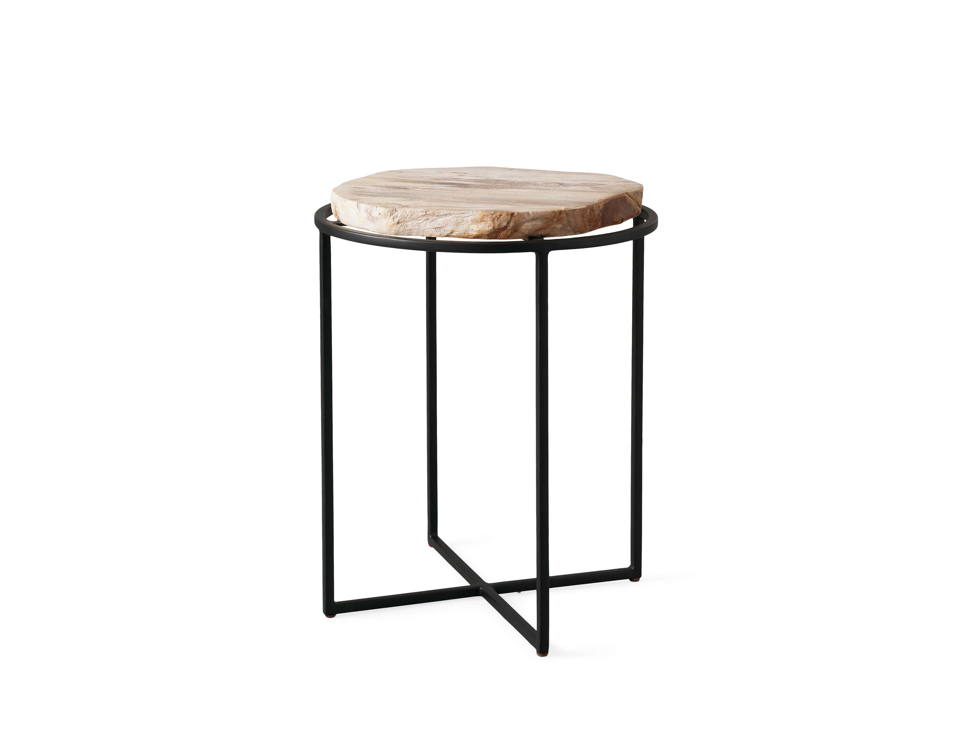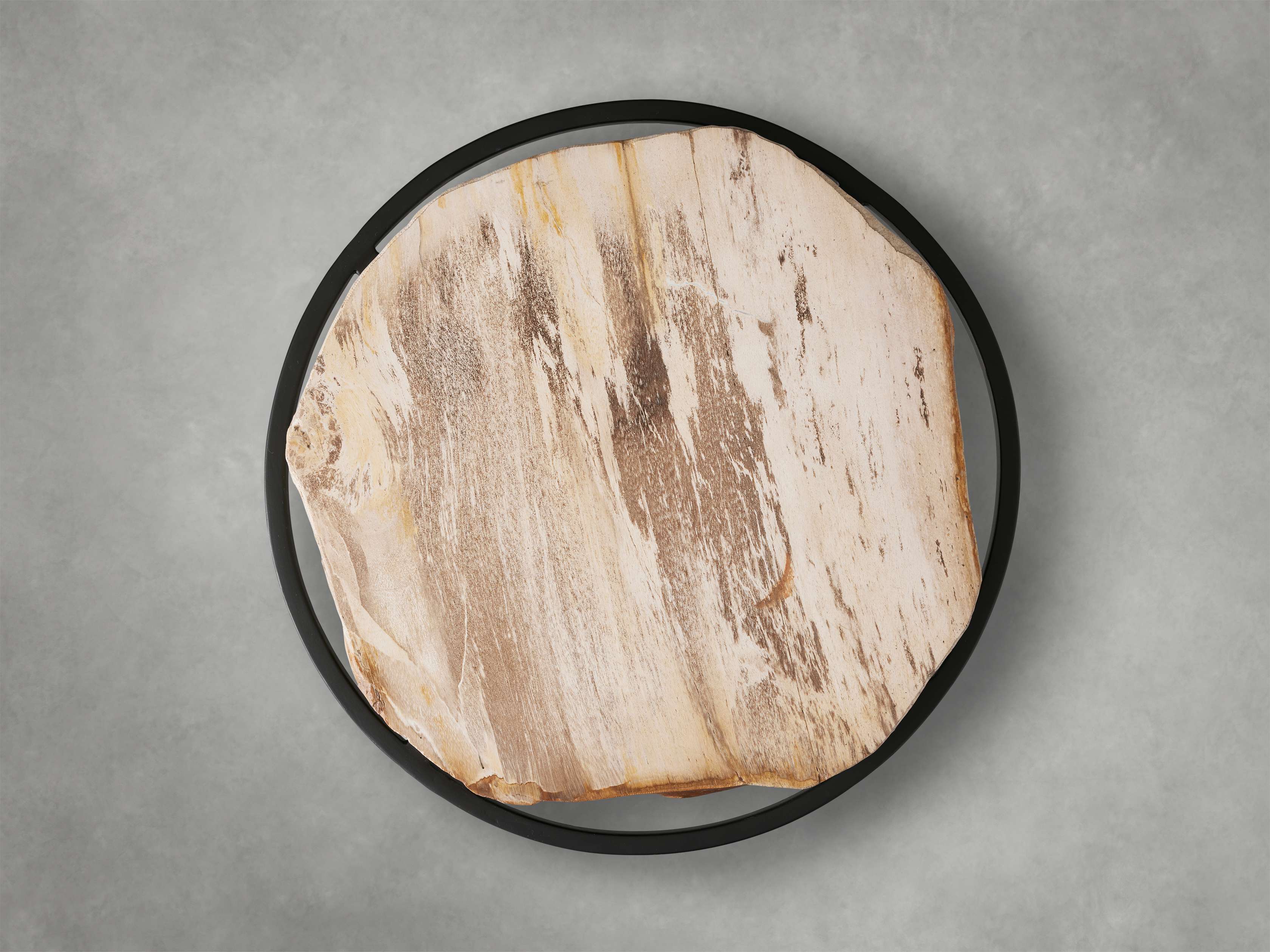 Hand selected for their unique color and texture, our Petrified Table Collection is crafted from slabs of petrified wood found scattered among the volcanic central region of the Philippines. Meticulously cut and polished by hand, each unique tabletop is paired with solid iron bases to accentuate the petrified wood’s distinct, natural variations in color, grain pattern, and texture.