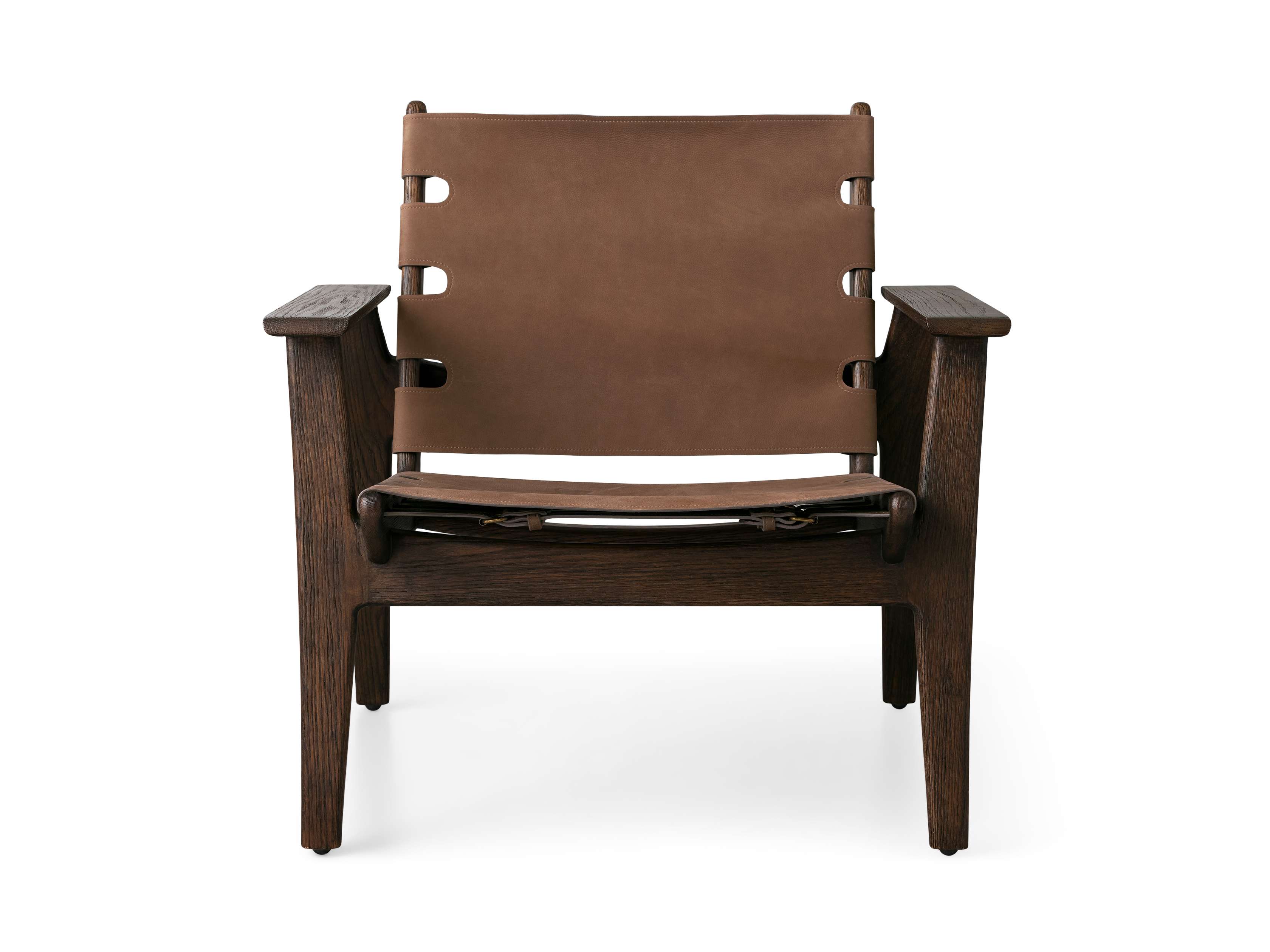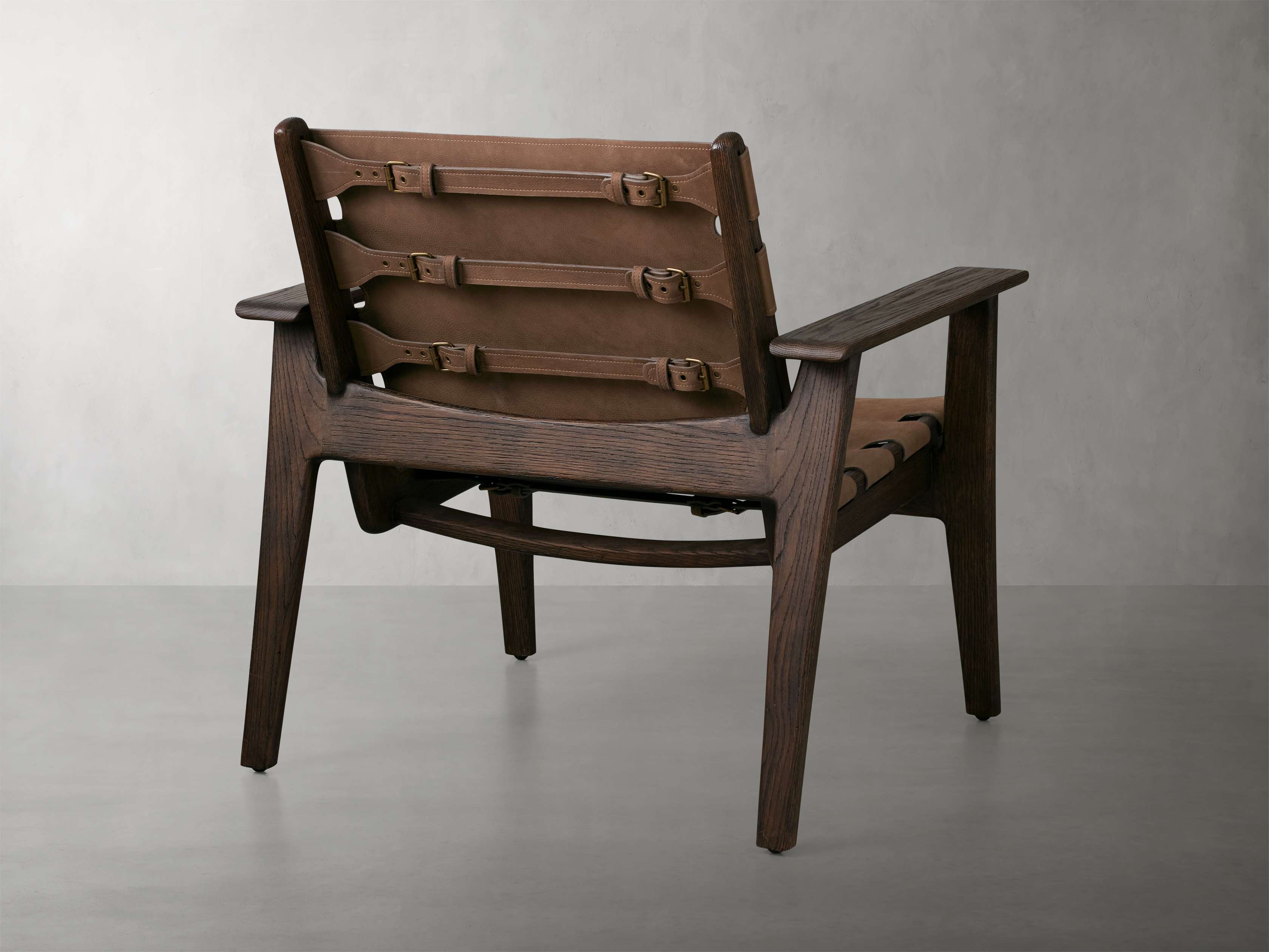 Inspired by antique sling chairs, our Reggie Chair is a midcentury dream for any living space with a bold, mixed-material style and rich mocha hues. Featuring a hand-finished solid red oak wood frame and sturdy nubuck leather fastened with antique brass buckles, Reggie invites you to sit back and relax.