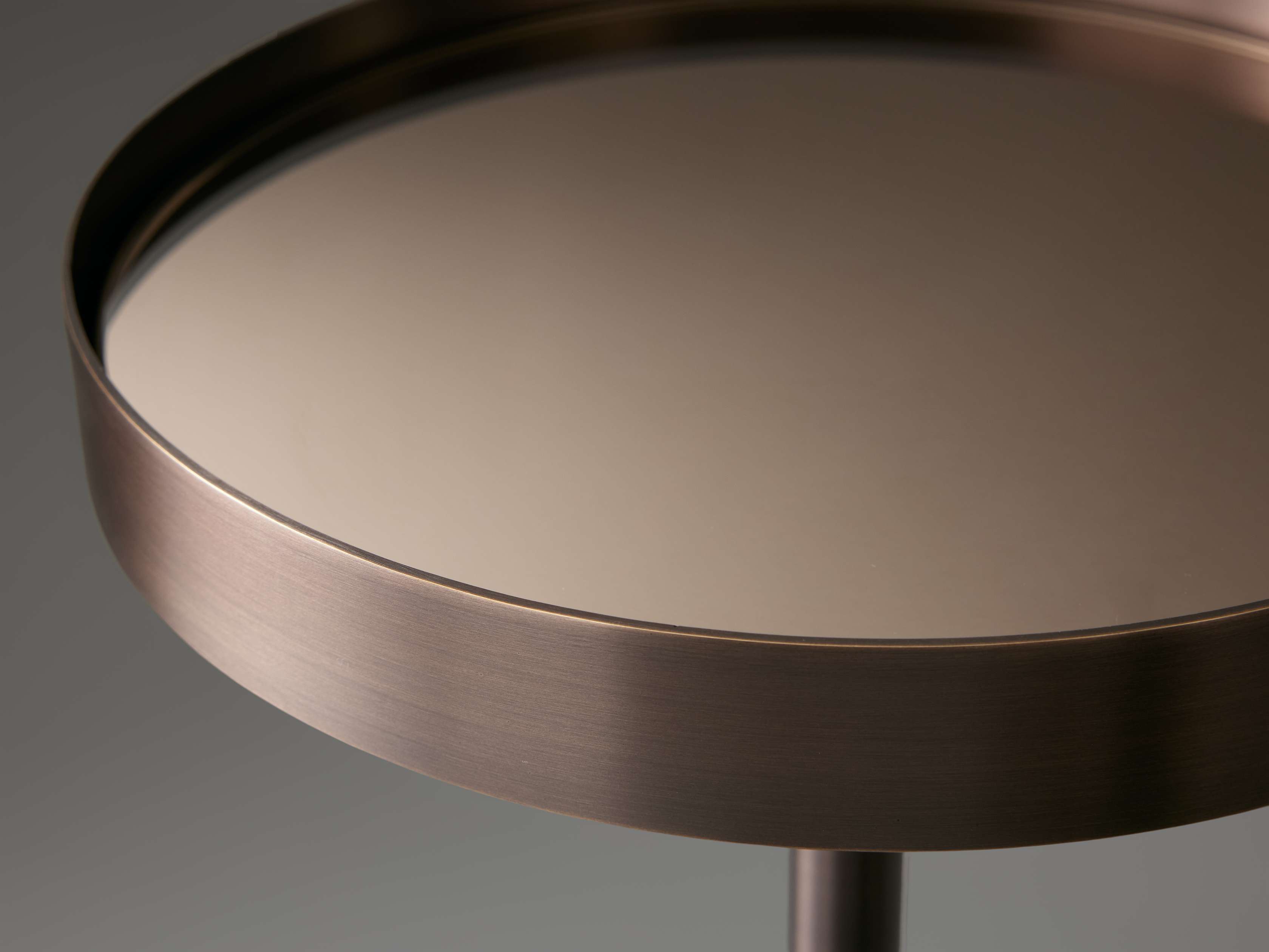 - Brass and Bronze tables include a champagne mirrored tabletop tray.